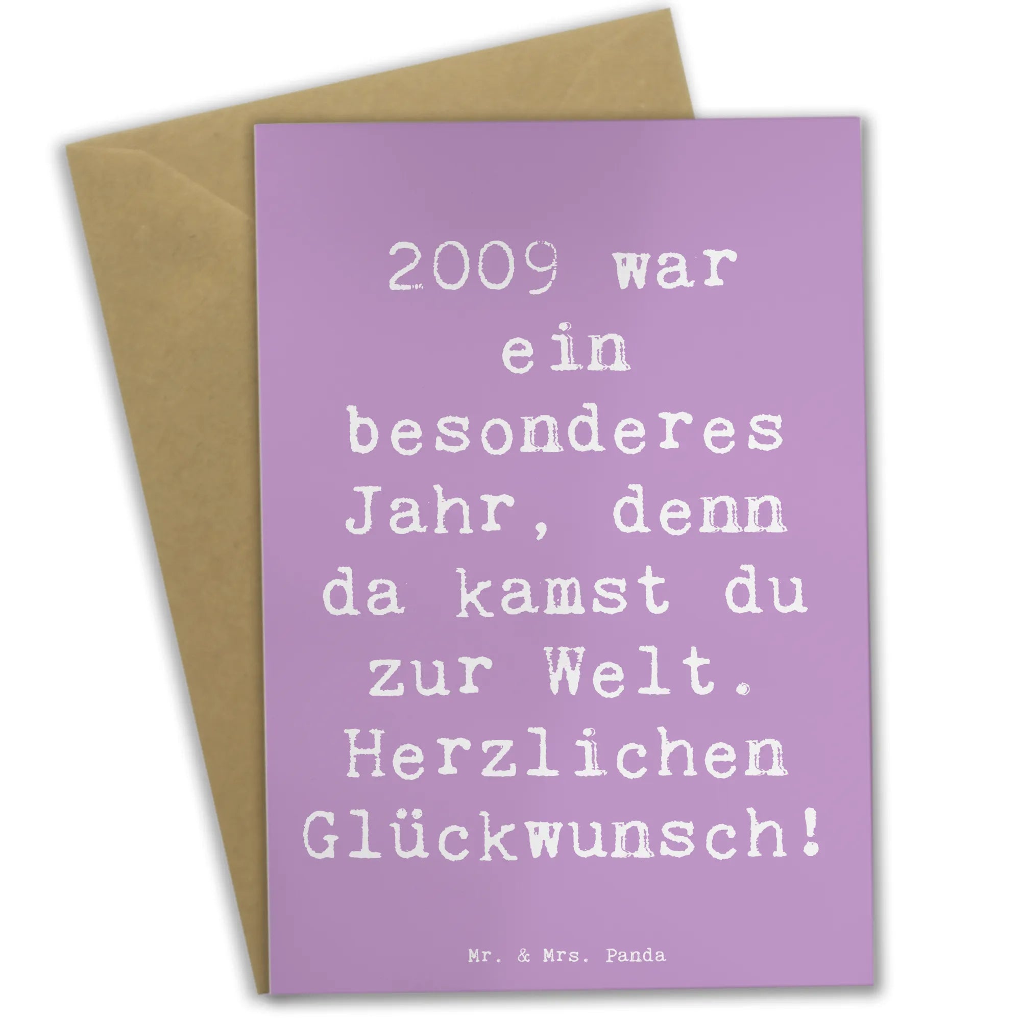 2009 war ein besonderes Jahr, denn da kamst du zur Welt. Herzlichen Glückwunsch! Diese herzliche Grußkarte aus der Geburtstagskollektion „Geburtsjahr“ von Mr. & Mrs. Panda ist das perfekte Geschenk für alle, die 2009 geboren wurden. 🎉
