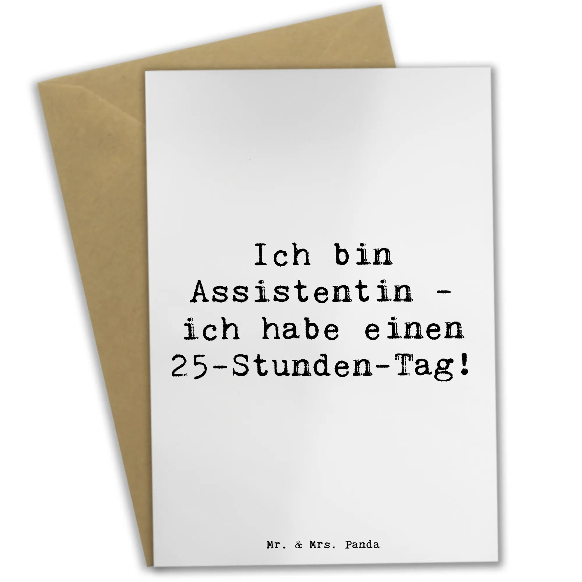 Eine Grußkarte für jede Assistentin, die an Ergebnissen orientiert und voller Lebensfreude ist! Diese liebevoll gestaltete Karte aus der Berufe Kollektion von Mr. & Mrs. Panda bringt den spritzigen Slogan 'Ich bin Assistentin - ich habe einen 25-Stunden-Tag!' mit einem charmanten Motiv perfekt zur Geltung.