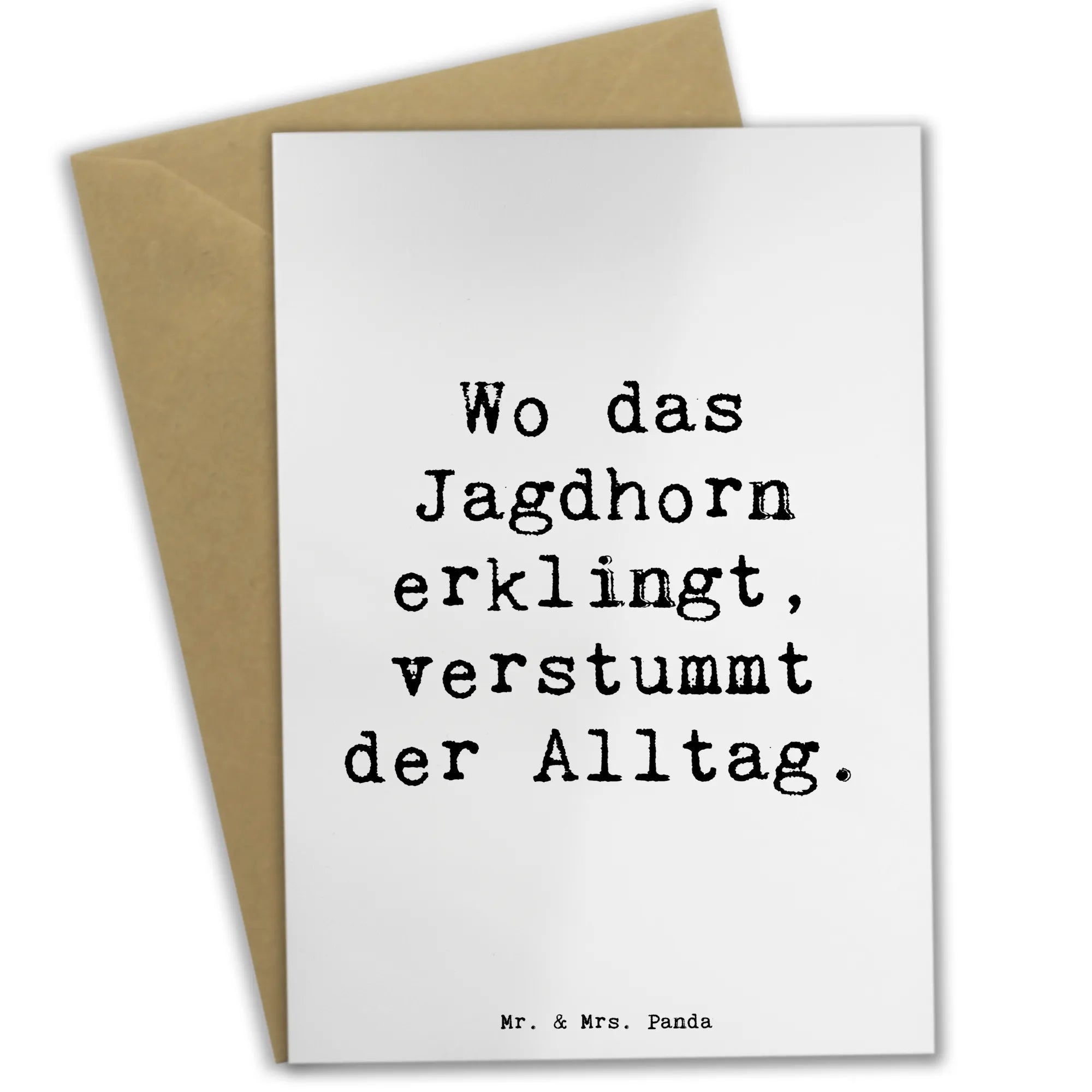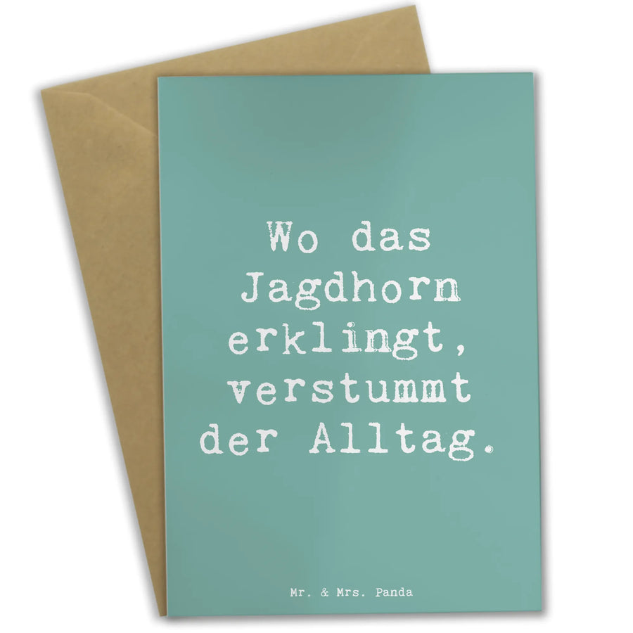Die wunderschöne Grußkarte mit dem Motiv Jagdhorn aus der Sammlung "Musizieren & Instrumente" von Mr. & Mrs. Panda ist das perfekte Geschenk für alle Musikliebhaber und Fans traditioneller Blasinstrumente. Diese einzigartige Karte fängt die Magie des Jagdhorns ein, einem Klassiker der Jägerhandwerkskunst, und bringt mit dem Spruch "Wo das Jagdhorn erklingt, verstummt der Alltag." eine besondere Botschaft der Entspannung und Inspiration mit sich.