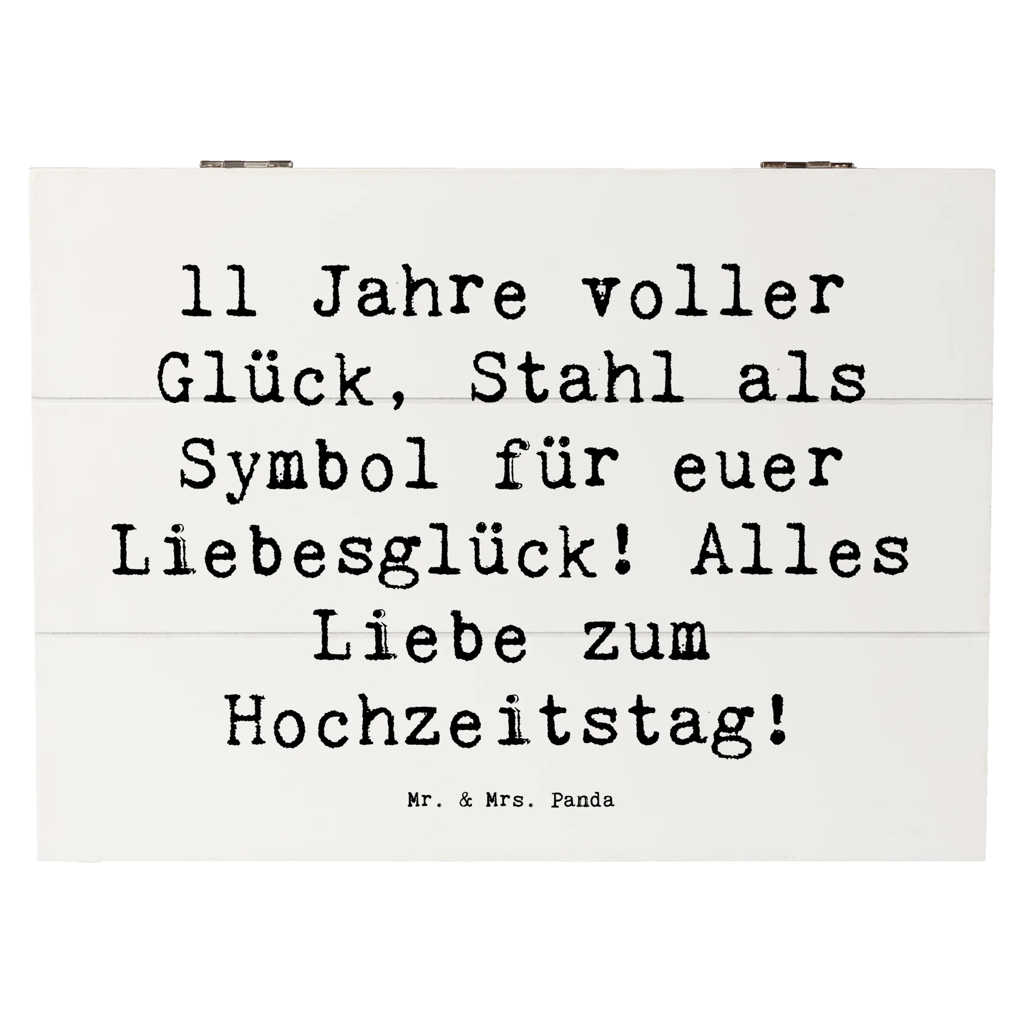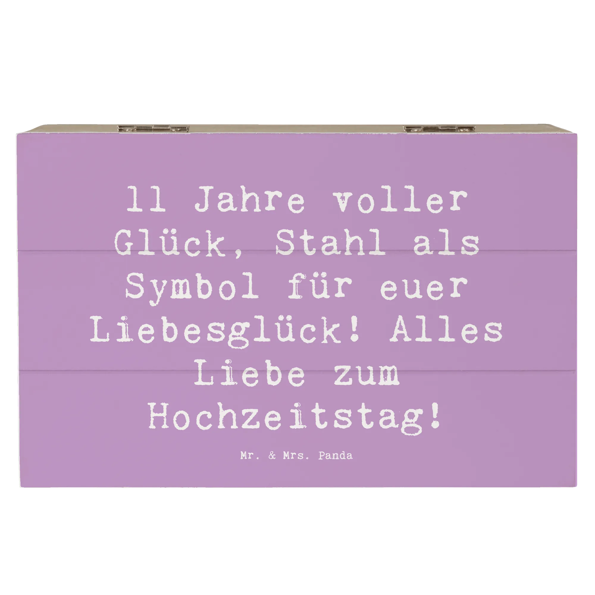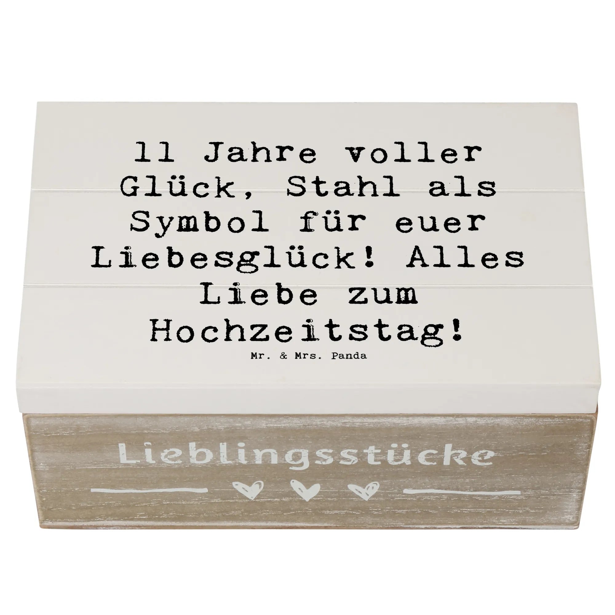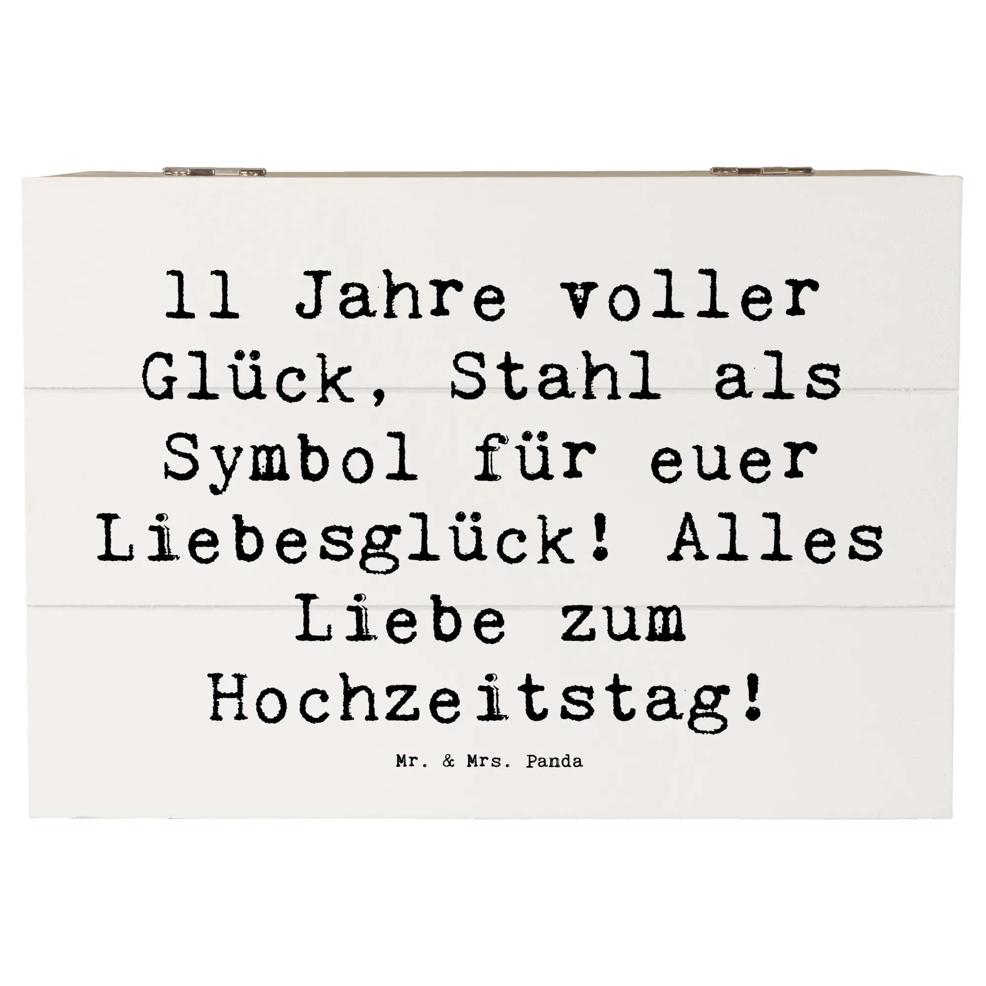 Entdecke die zauberhafte Holzkiste von Mr. & Mrs. Panda, die speziell für den 11. Hochzeitstag, auch bekannt als Stahlhochzeit, entworfen wurde. Dieses wunderschöne Stück ist nicht nur eine Erinnerungskiste, sondern auch ein echter Schatz für all eure besonderen Momente! Mit dem liebevollen Spruch "11 Jahre voller Glück, Stahl als Symbol für euer Liebesglück! Alles Liebe zum Hochzeitstag!" wird sie zum perfekten Hochzeitsgeschenk, das von Herzen kommt.