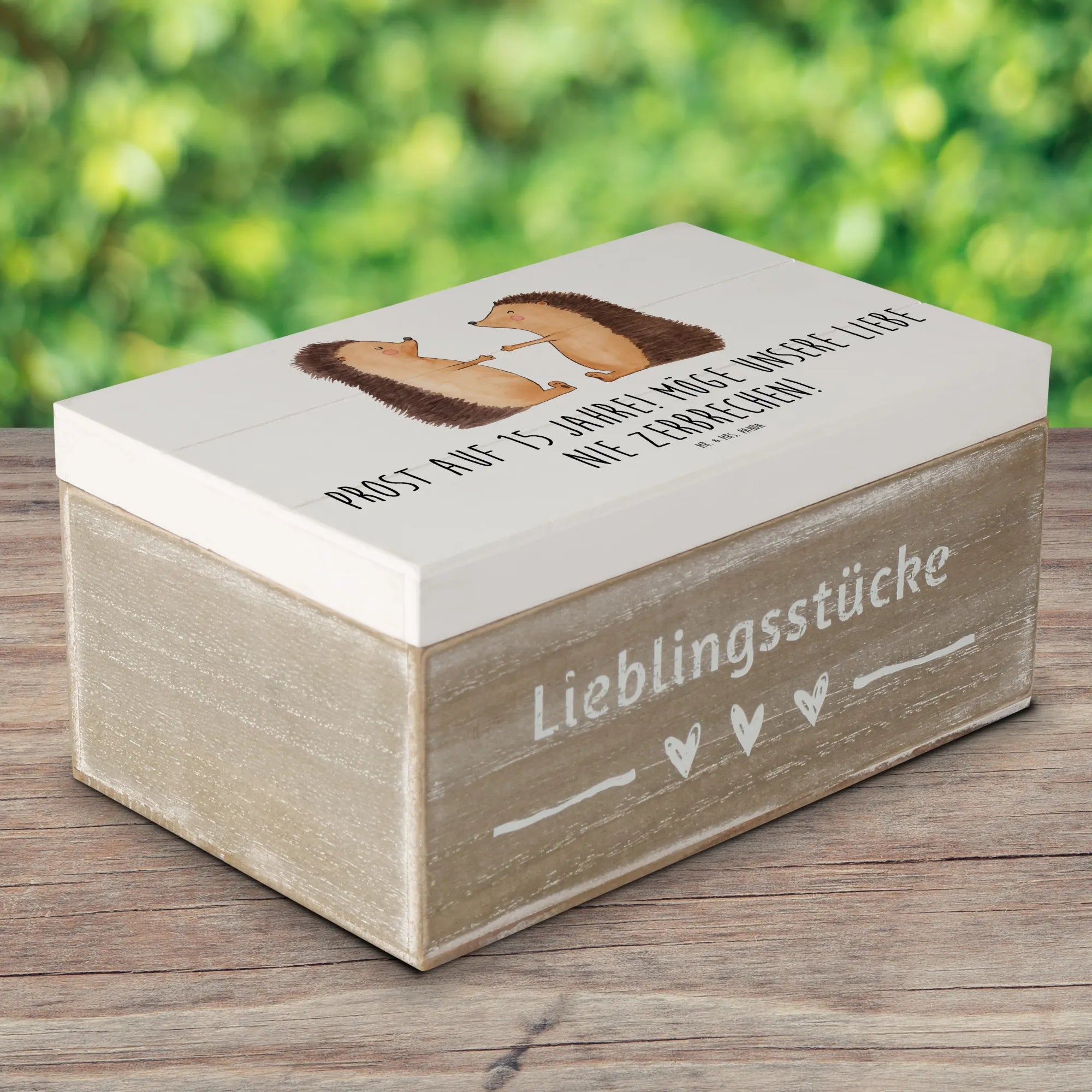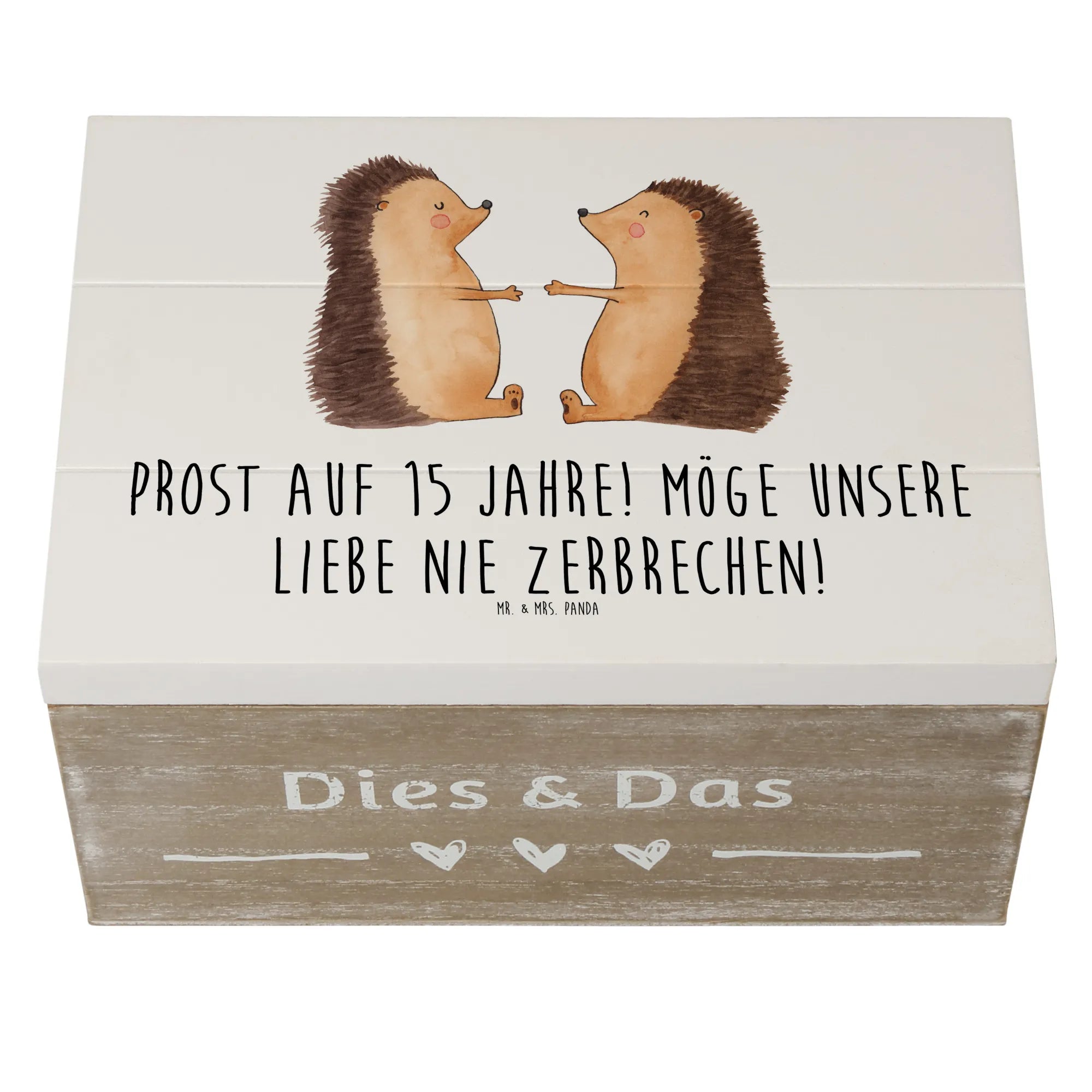 Entdecke die zauberhafte Holzkiste '15. Hochzeitstag Gläserne Hochzeit' von Mr. & Mrs. Panda – das perfekte Geschenk für das Brautpaar, das seinen besonderen Tag feiert! Diese wunderschöne Holzkiste ist nicht nur ein echter Hingucker, sondern auch ein idealer Aufbewahrungsort für all die kostbaren Erinnerungen, die über 15 Jahre Ehe gesammelt wurden.