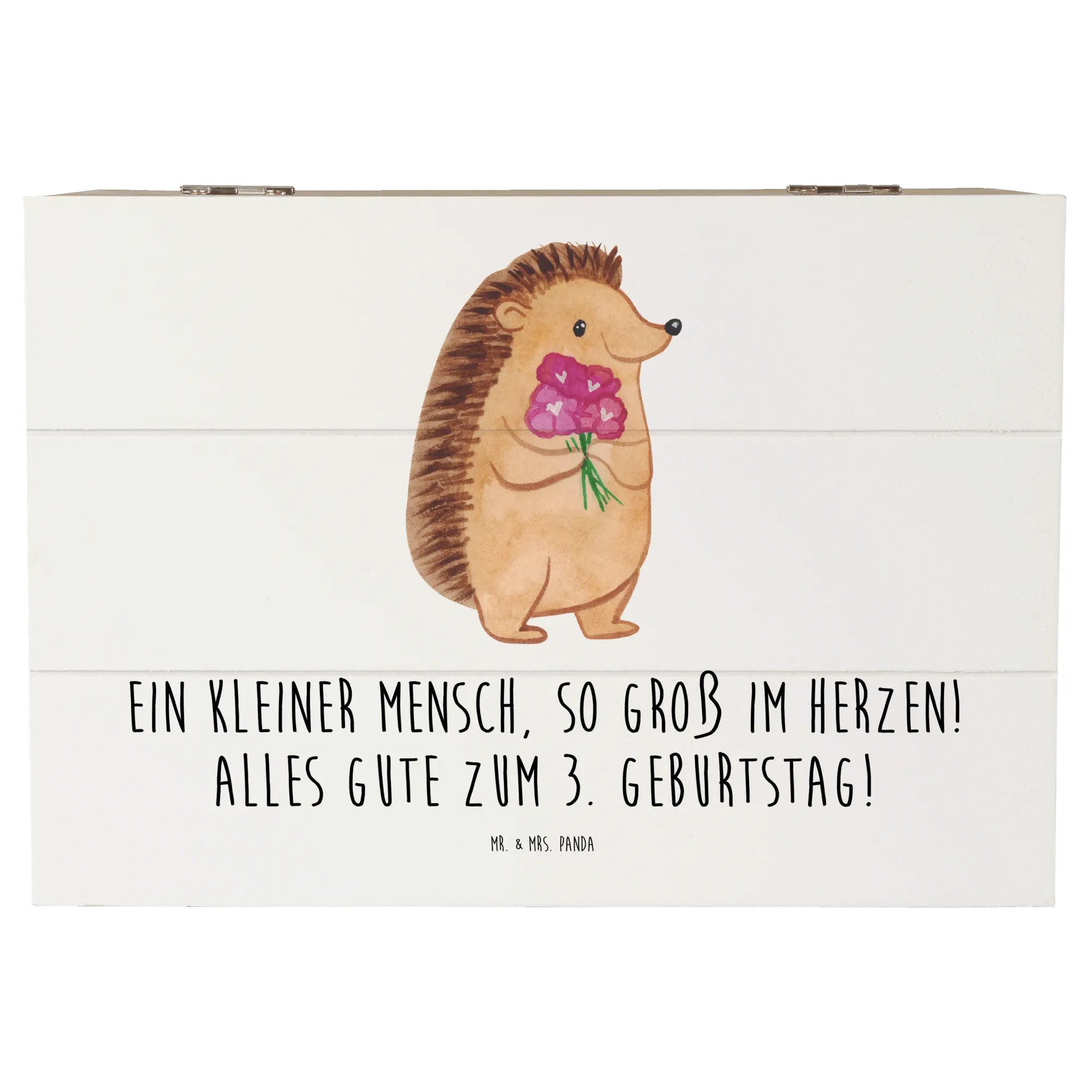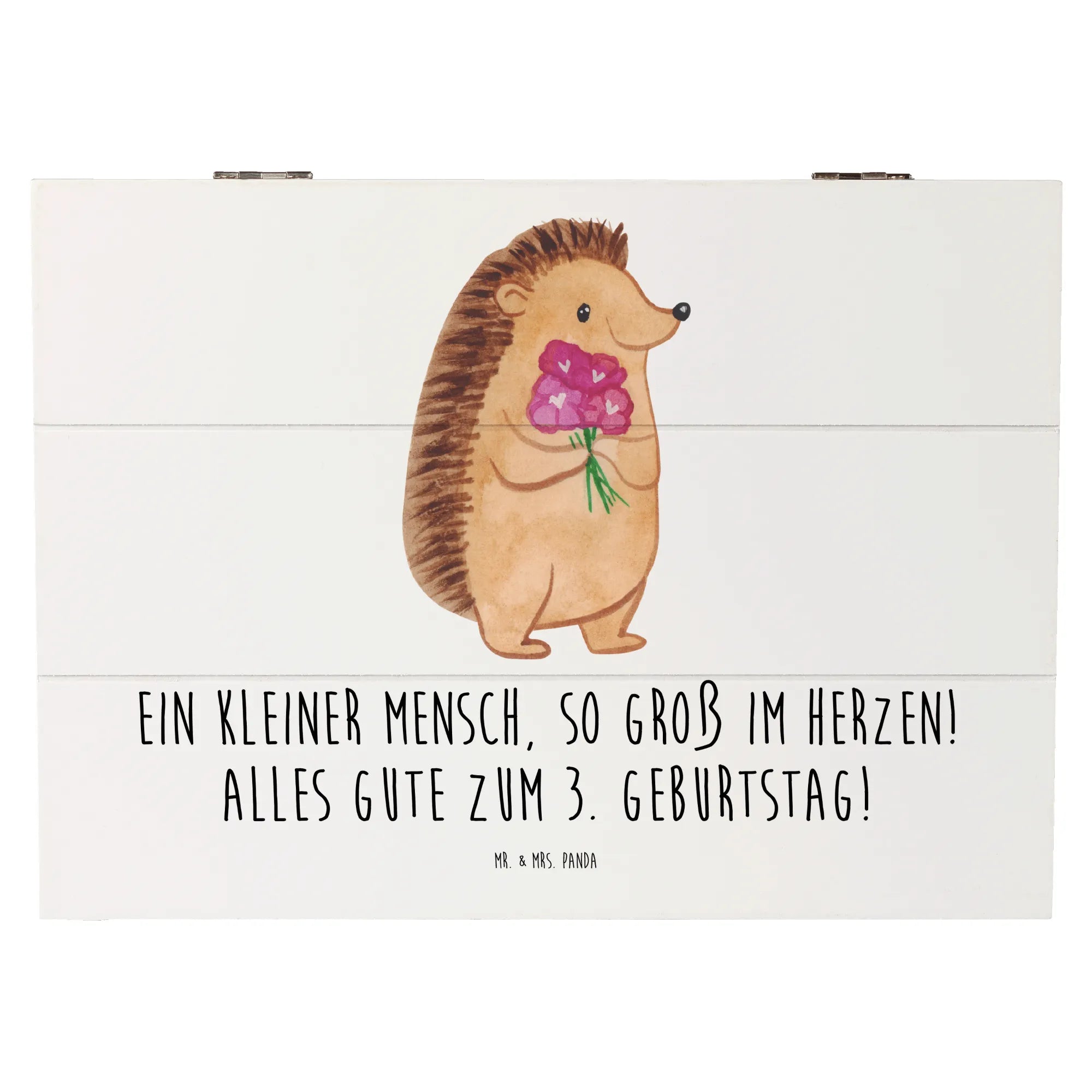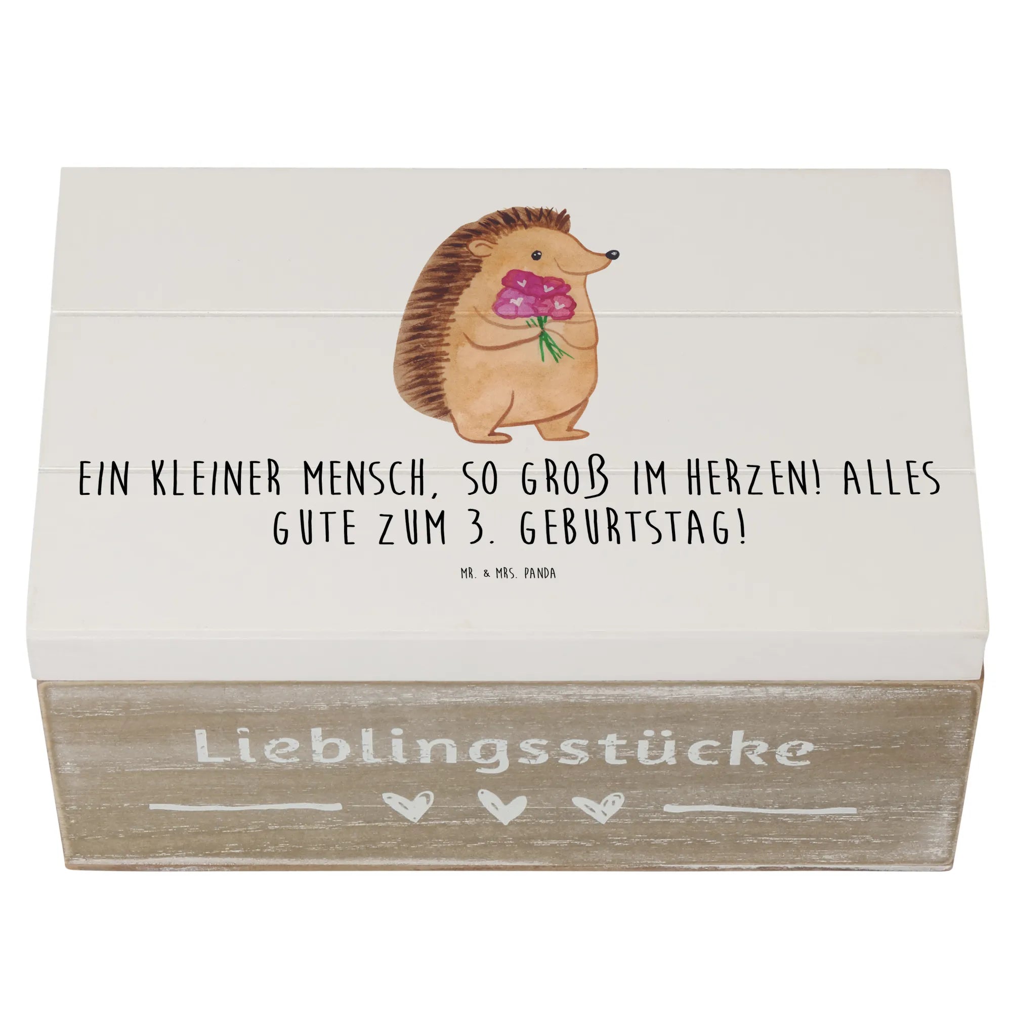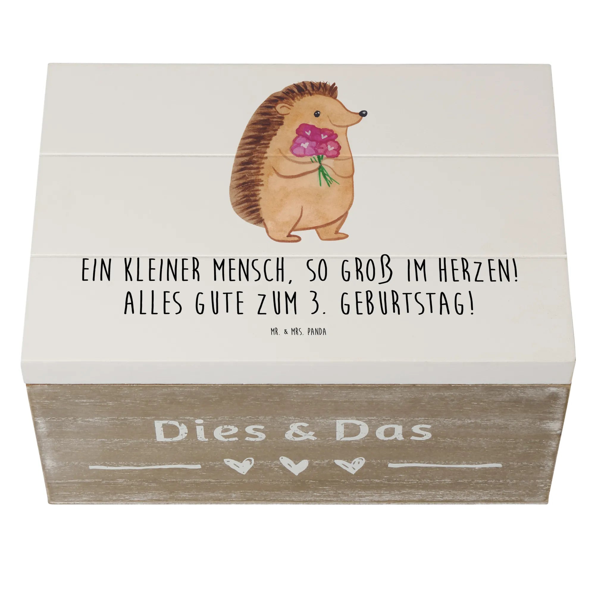 Die wunderschöne Holzkiste von Mr. & Mrs. Panda ist das perfekte Geschenk zum 3. Geburtstag! Bedruckt mit dem herzigen Spruch "Ein kleiner Mensch, so groß im Herzen! Alles Gute zum 3. Geburtstag!" ist diese Erinnerungskiste nicht nur ein Blickfang, sondern auch eine tolle Möglichkeit, all die kleinen Schätze aus der Kindheit zu bewahren.