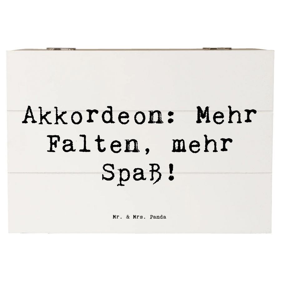 Die wunderschöne Holzkiste von Mr. & Mrs. Panda, bedruckt mit dem spritzigen Motiv 'Akkordeon: Mehr Falten, mehr Spaß!', ist das perfekte Geschenk für alle Musikliebhaber! Ob zur Kommunion, Konfirmation oder als Erinnerungskiste für die wertvollen Schätze aus der Kindheit – diese Kiste bietet Platz für all deine Erinnerungen.