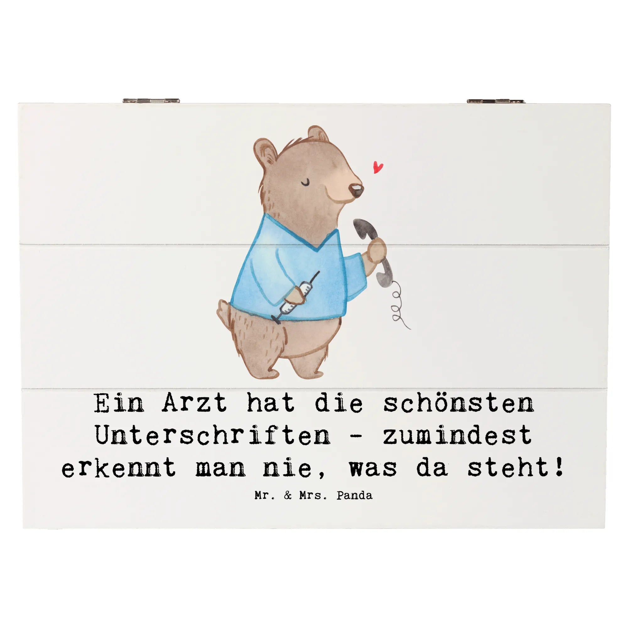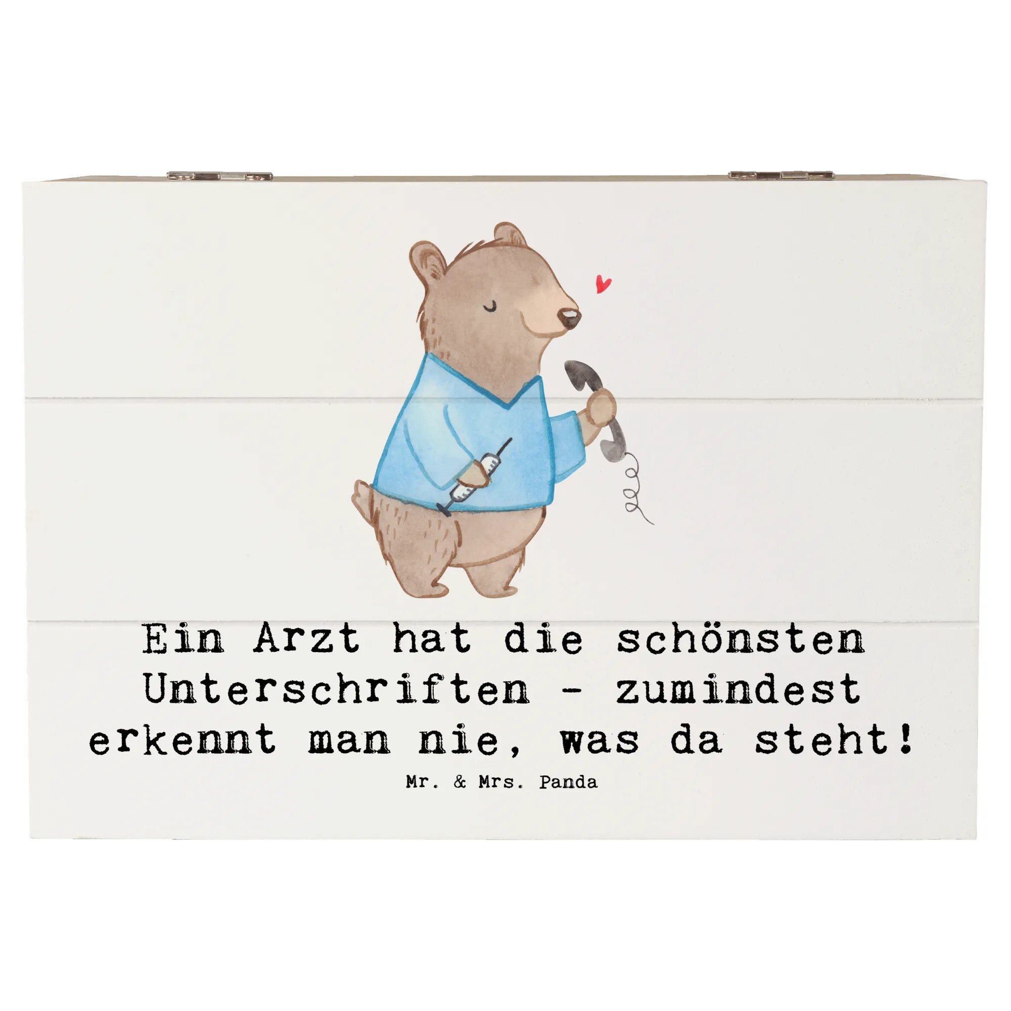 Entdecke die bezaubernde Holzkiste von Mr. & Mrs. Panda, die perfekt für alle Ärzte ist! Mit ihrem liebevoll gestalteten Motiv und dem witzigen Spruch "Ein Arzt hat die schönsten Unterschriften - zumindest erkennt man nie, was da steht!" ist diese Kiste nicht nur ein praktisches Aufbewahrungselement, sondern auch ein tolles Geschenk für jeden Arzt oder Mediziner.