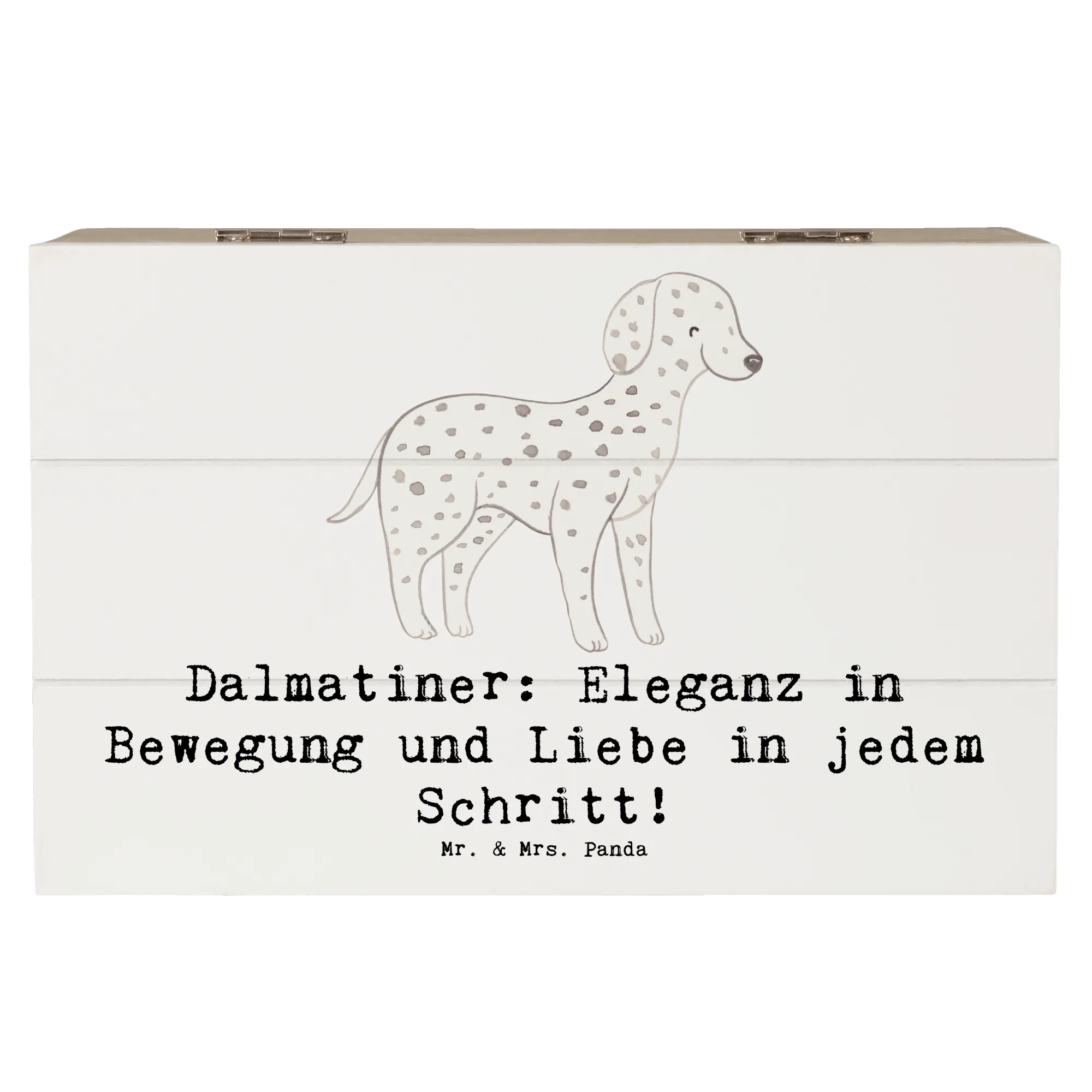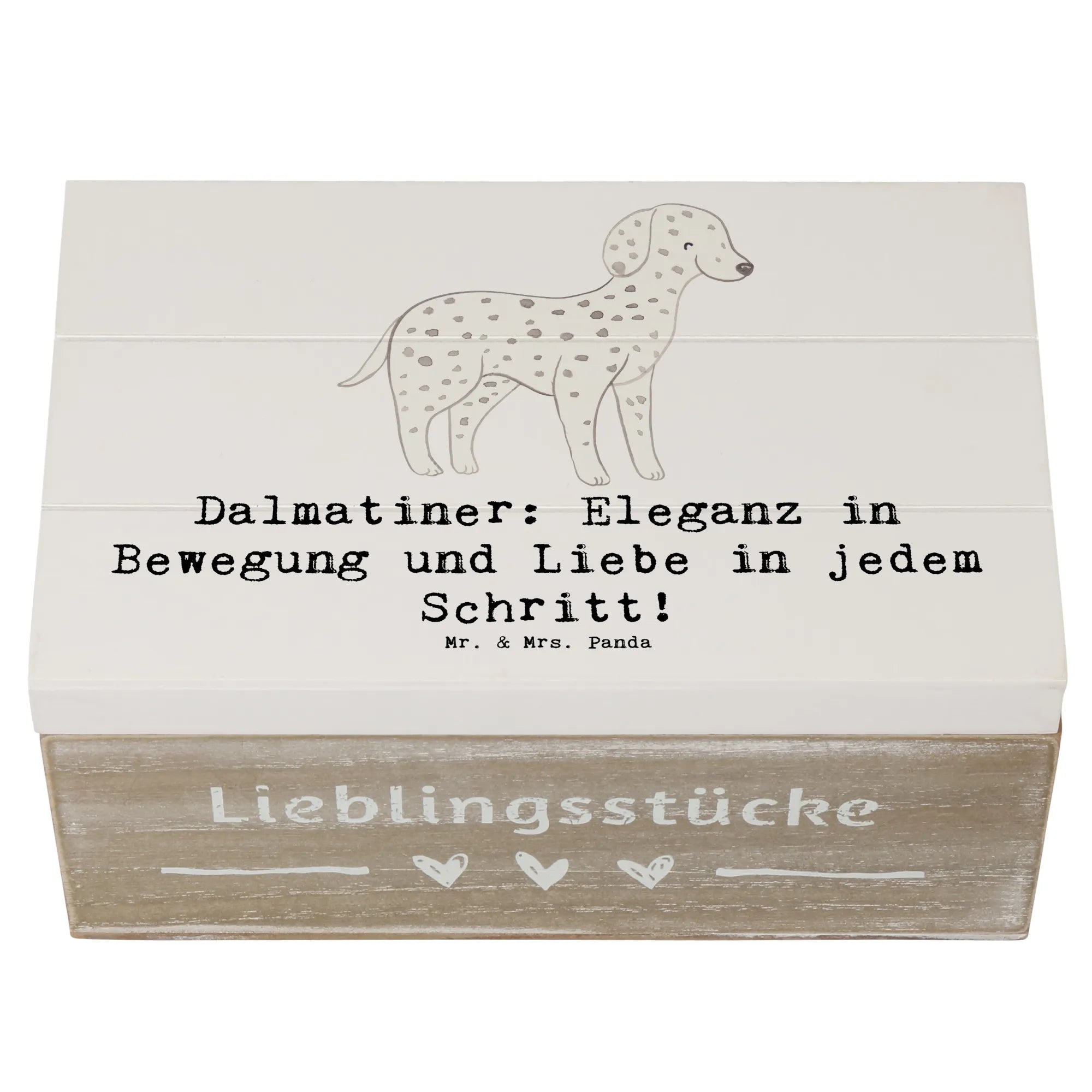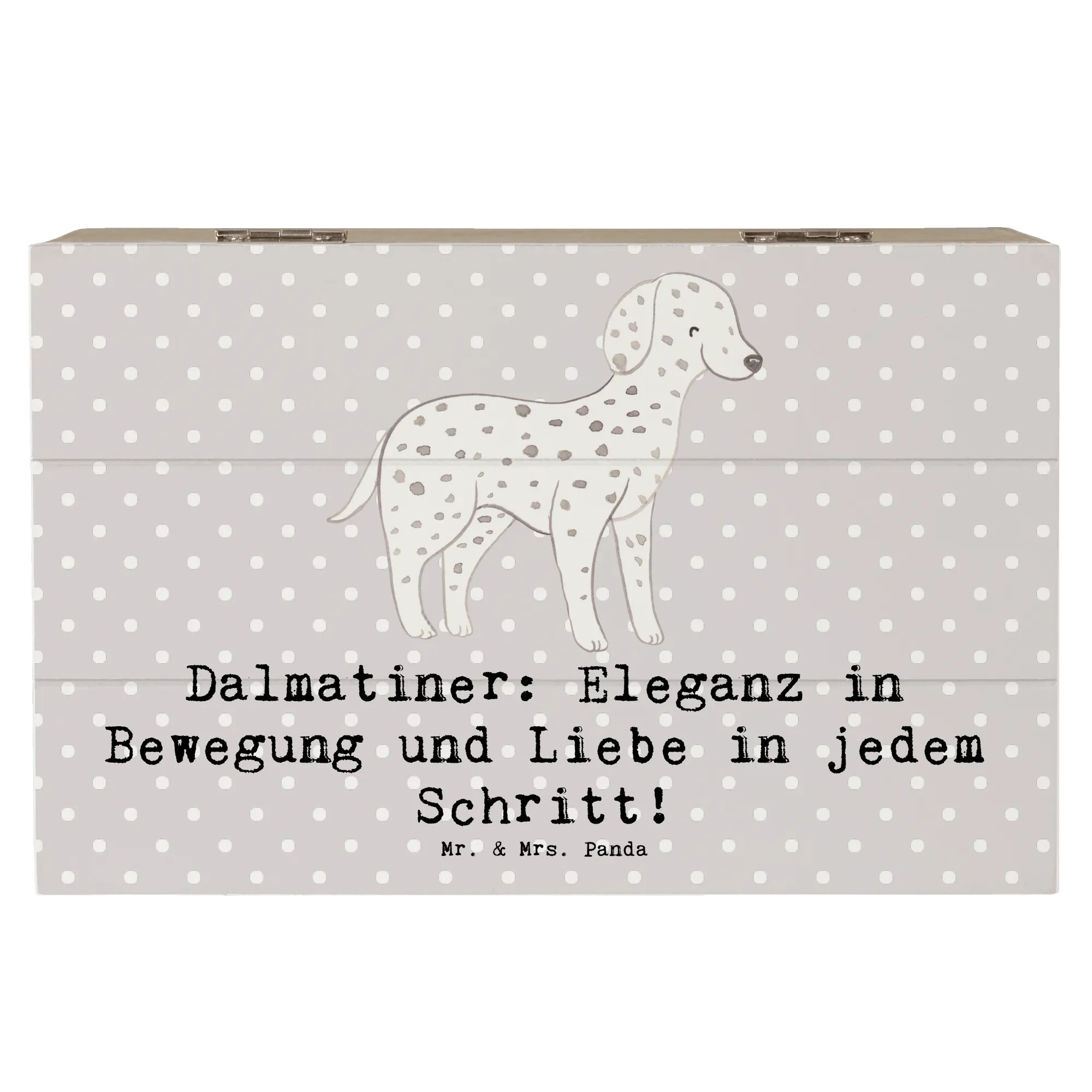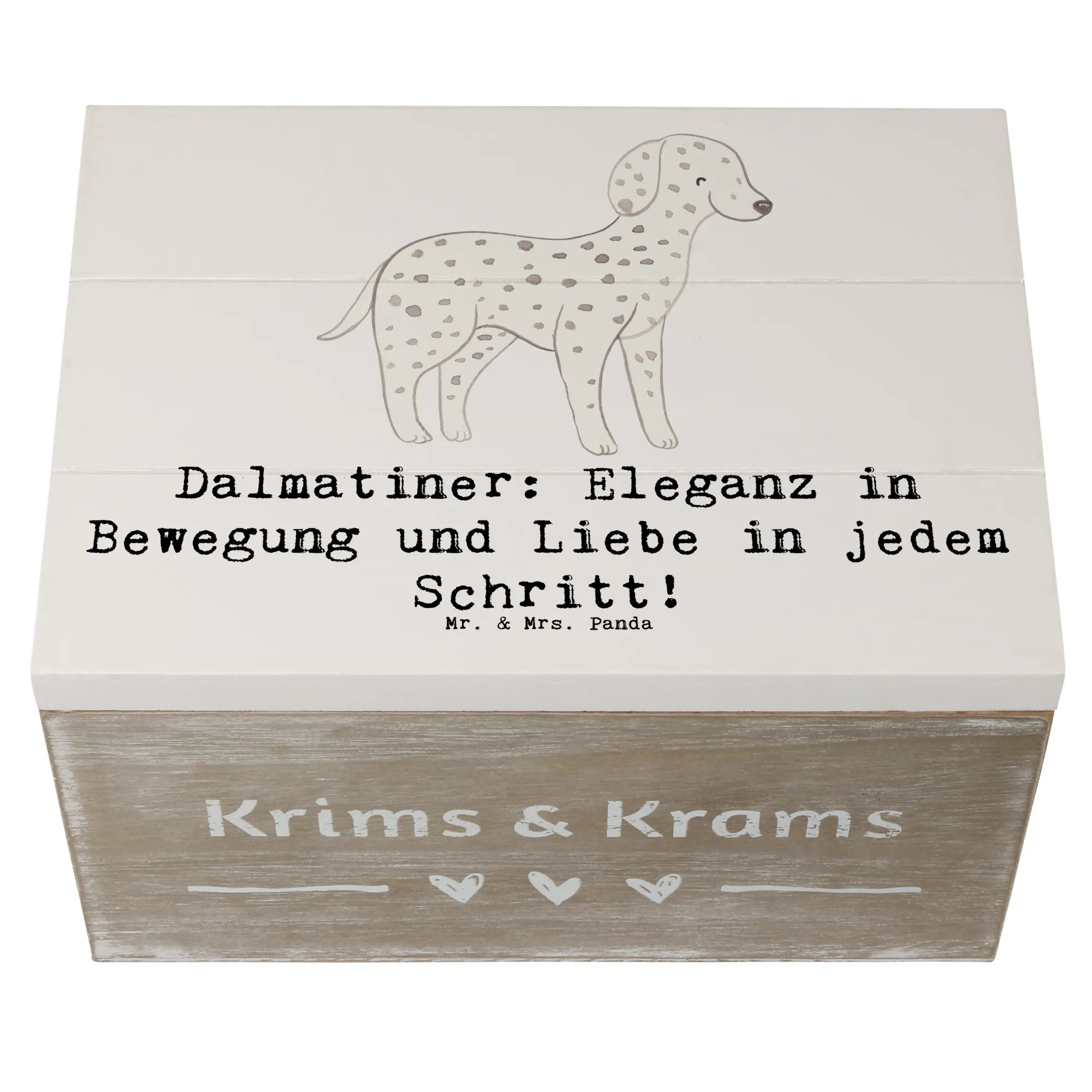 Die wunderschöne Holzkiste im Dalmatiner-Design von Mr. & Mrs. Panda ist ein ganz besonderes Geschenk, das Herzen höher schlagen lässt. Mit ihrem liebevollen Motiv 'Dalmatiner: Eleganz in Bewegung und Liebe in jedem Schritt!' bringt sie Freude in jeden Raum und ist der perfekte Aufbewahrungsort für all deine wundervollen Schätze.