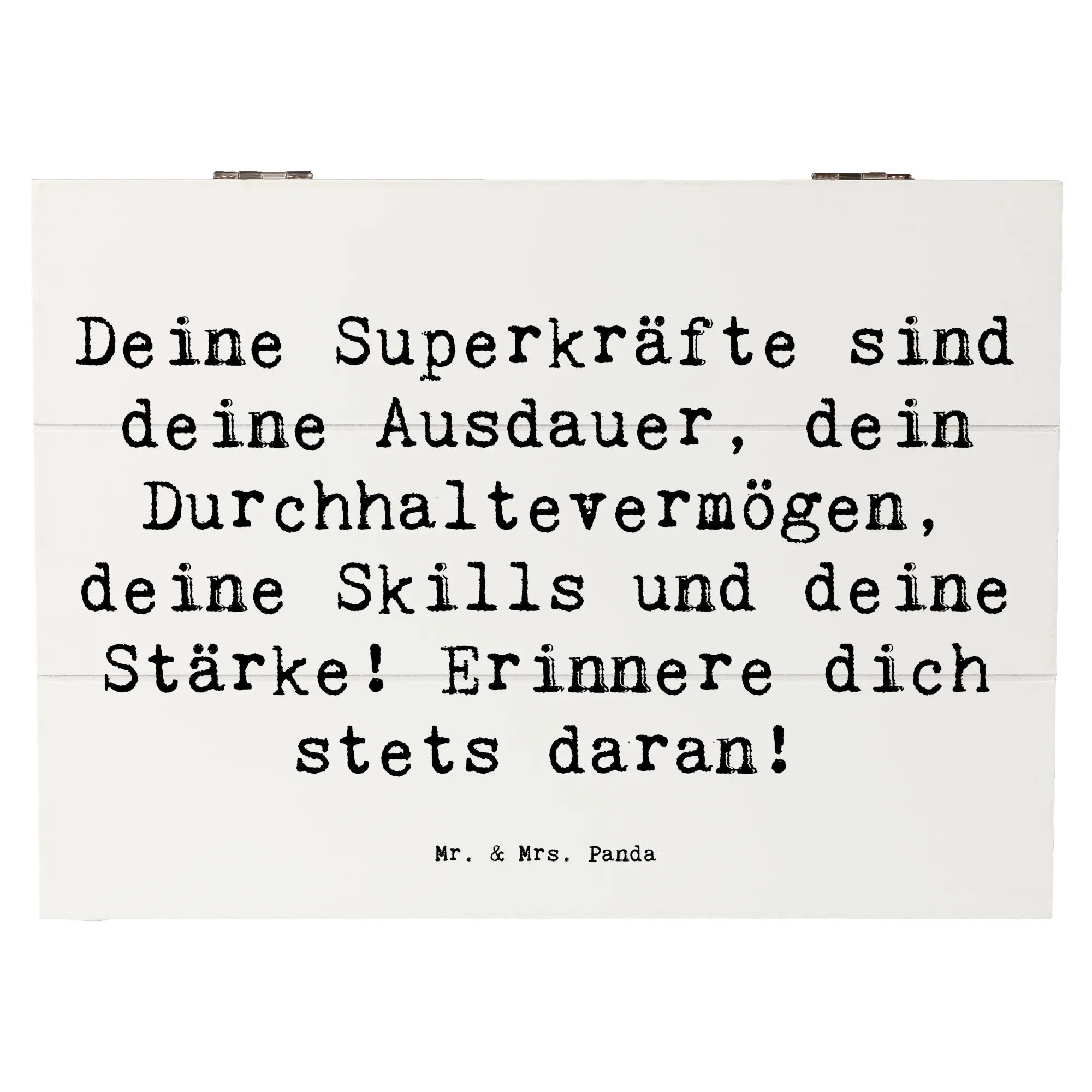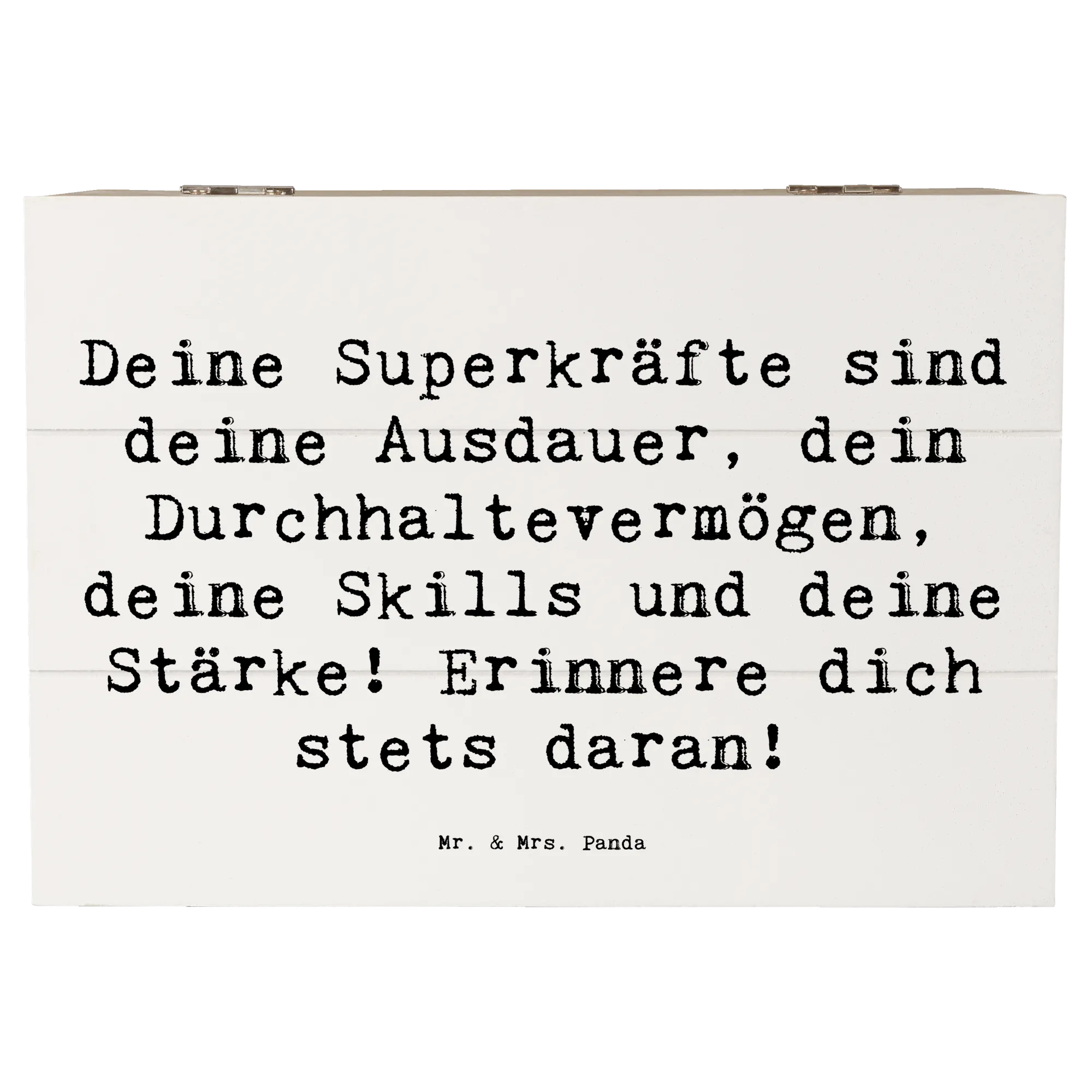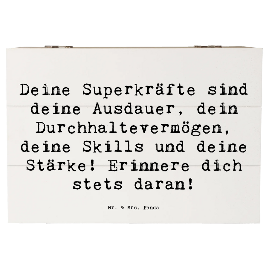 Diese bezaubernde Kiste ist nicht nur ein echter Blickfang, sondern auch das perfekte Geschenk für sportbegeisterte Menschen in Deinem Leben! Die wertvolle Botschaft "Deine Superkräfte sind deine Ausdauer, dein Durchhaltevermögen, deine Skills und deine Stärke! Erinnere dich stets daran!" erinnert jeden daran, was wirklich zählt, wenn es um sportliche Wettkämpfe geht.