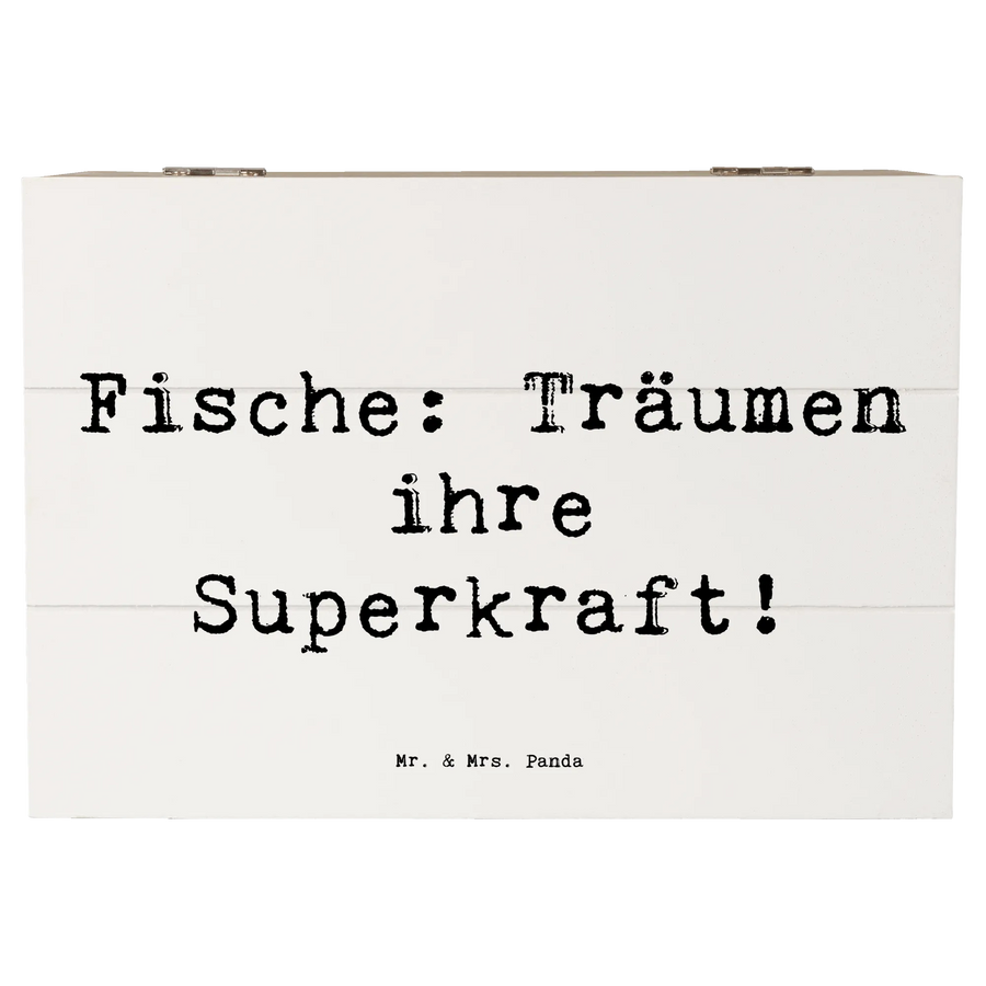 Die Holzkiste Fische von Mr. & Mrs. Panda ist das perfekte Geschenk für Sternzeichen-Liebhaber! Mit ihrem bezaubernden Design und dem liebevollen Spruch "Fische: Träumen ihre Superkraft!" ist sie nicht nur ein praktischer Aufbewahrungsort für all deine wertvollen Erinnerungen, sondern auch ein echter Hingucker in jedem Raum.