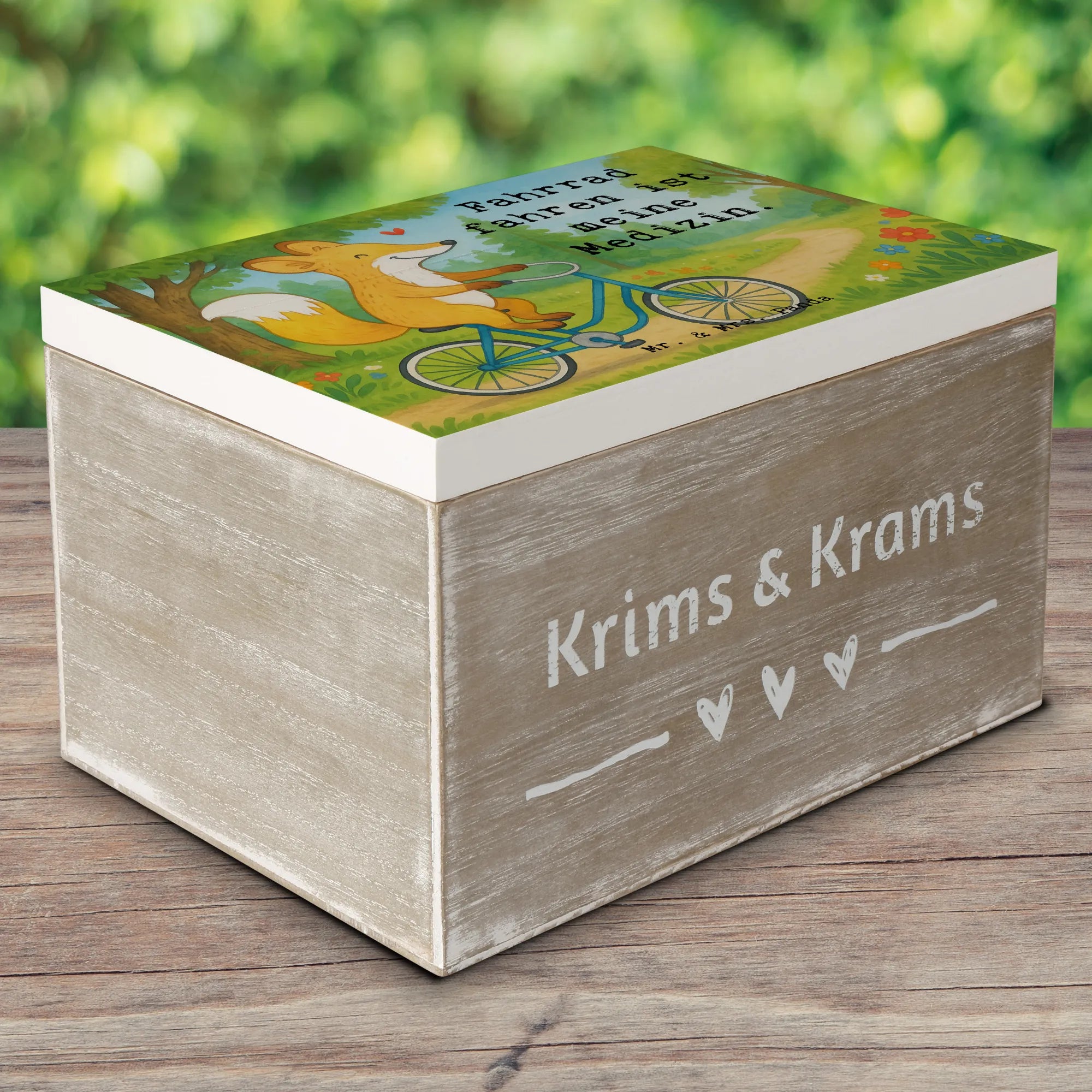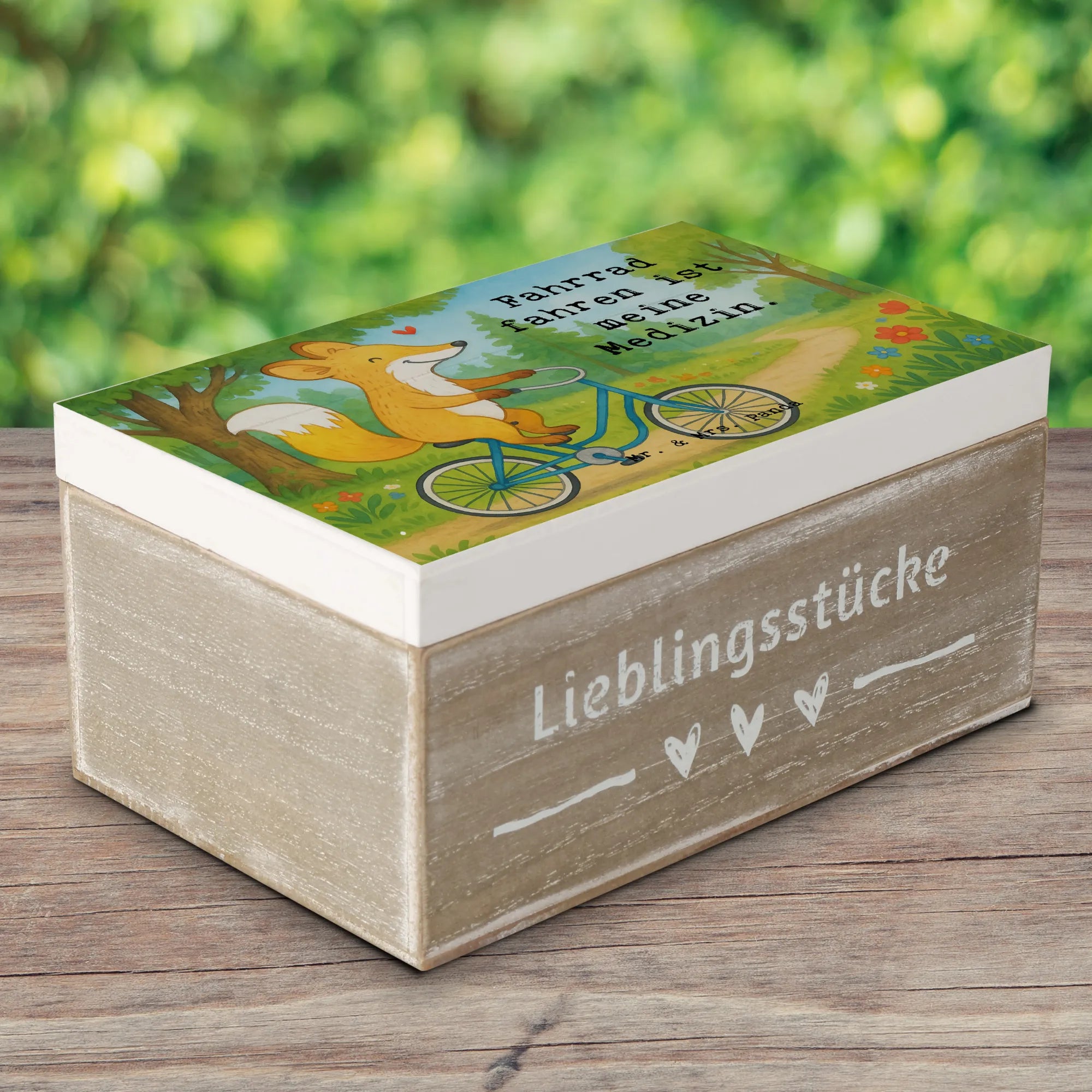 Holzkiste Fuchs Fahrrad fahren Design - 22 x 15 cm - mit Spruch