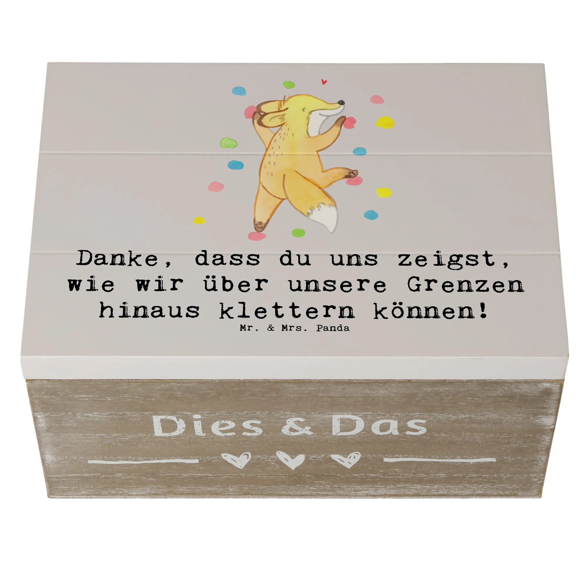 Lass deiner Kreativität freien Lauf und fülle die Kiste mit tollen Erinnerungen oder einem persönlichen Geschenk – so wird dein Dankeschön an die Trainerin unvergesslich! Ob zur Überreichung beim Abschied, zum Geburtstag oder einfach für zwischendurch – die Holzkiste "Klettern Trainerin" von Mr. & Mrs. Panda ist die perfekte Wahl.
