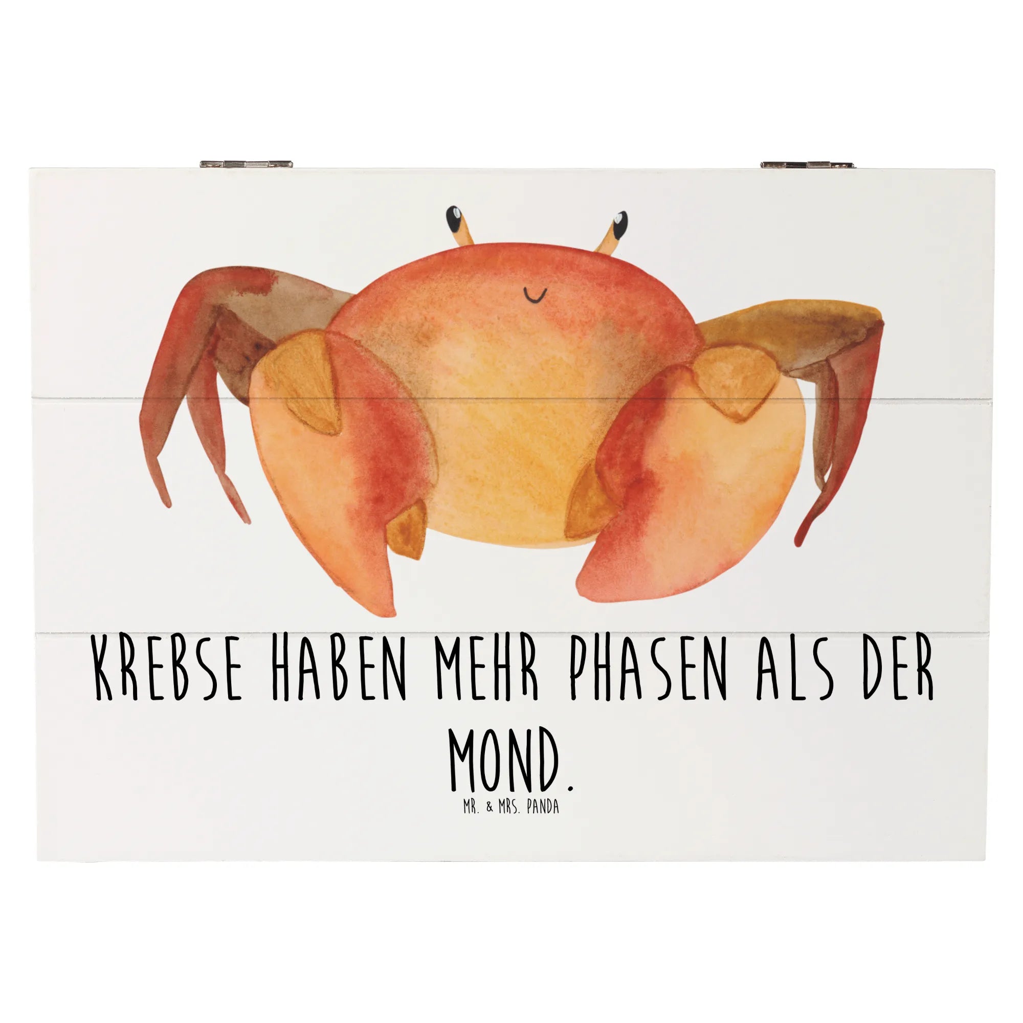 Die wunderschöne Holzkiste von Mr. & Mrs. Panda ist das perfekte Geschenk für alle Krebs-Geborenen und Sternzeichen-Liebhaber. Mit dem liebevollen Motiv des Krebses, das den Spruch 'Krebse haben mehr Phasen als der Mond' in einem verspielten Design vereint, ist diese Kiste nicht nur optisch ein Hingucker, sondern auch funktional.