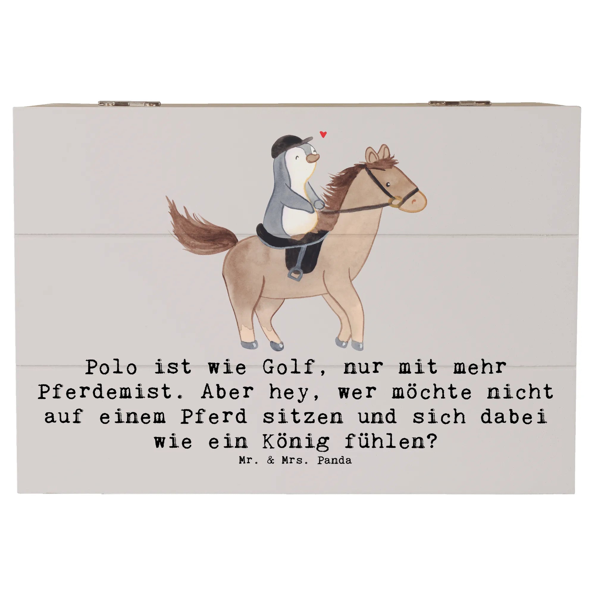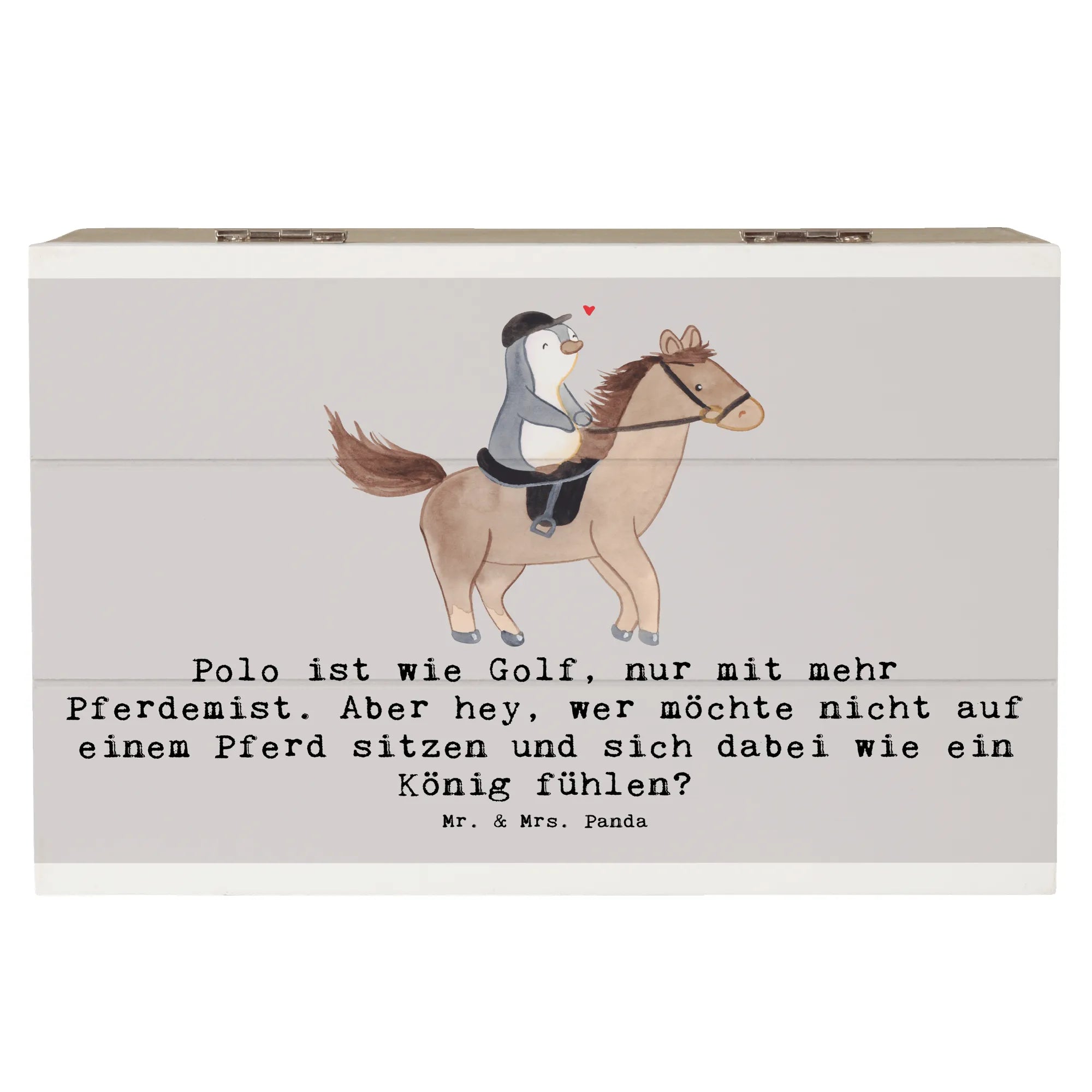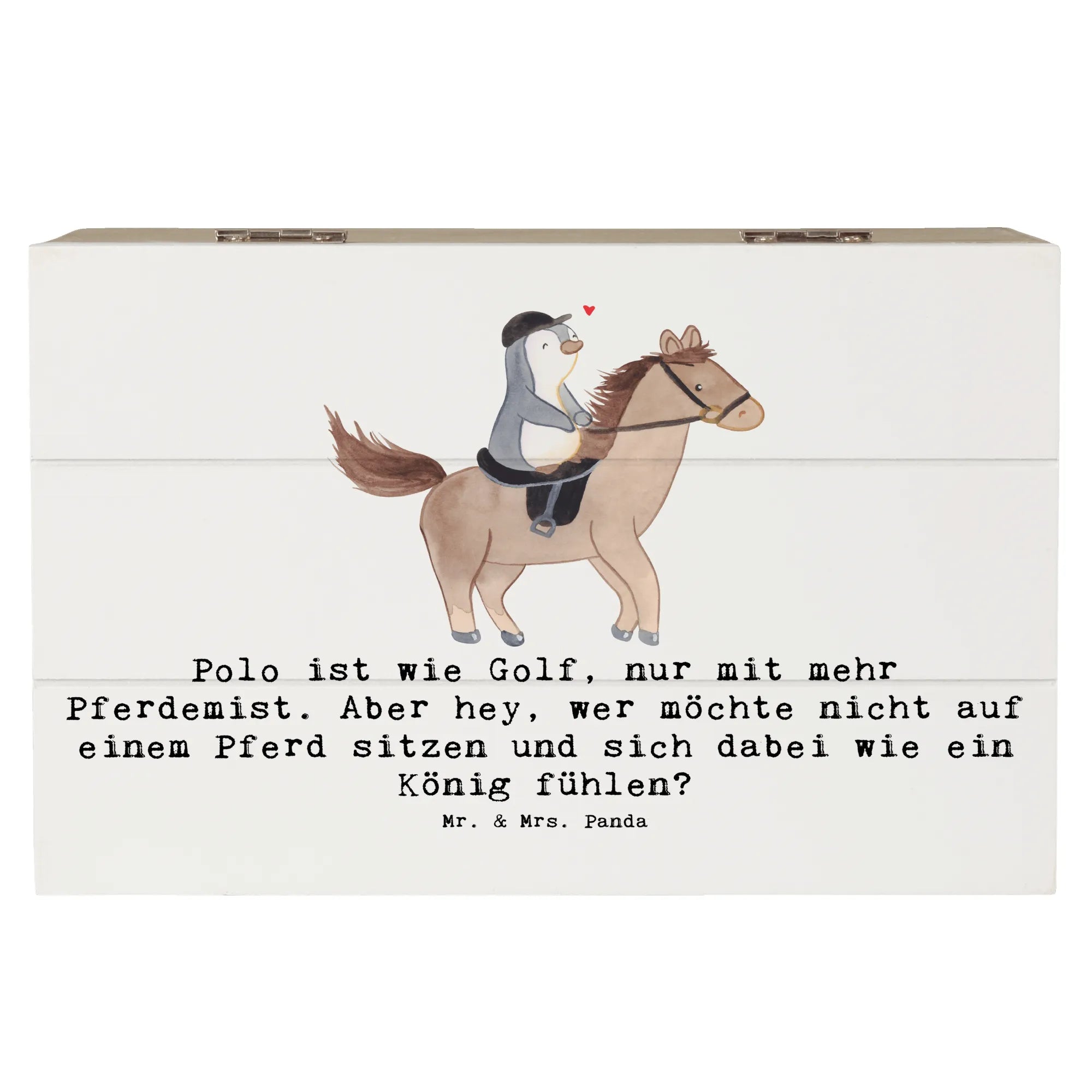 Die wunderschöne Holzkiste von Mr. & Mrs. Panda ist das perfekte Präsent für alle Polo-Enthusiasten und Sportliebhaber! Mit einem charmanten Spruch "Polo ist wie Golf, nur mit mehr Pferdemist. Aber hey, wer möchte nicht auf einem Pferd sitzen und sich dabei wie ein König fühlen?" eignet sich diese Kiste nicht nur als dekoratives Element, sondern auch als praktische Aufbewahrungslösung für all deine Erinnerungen.