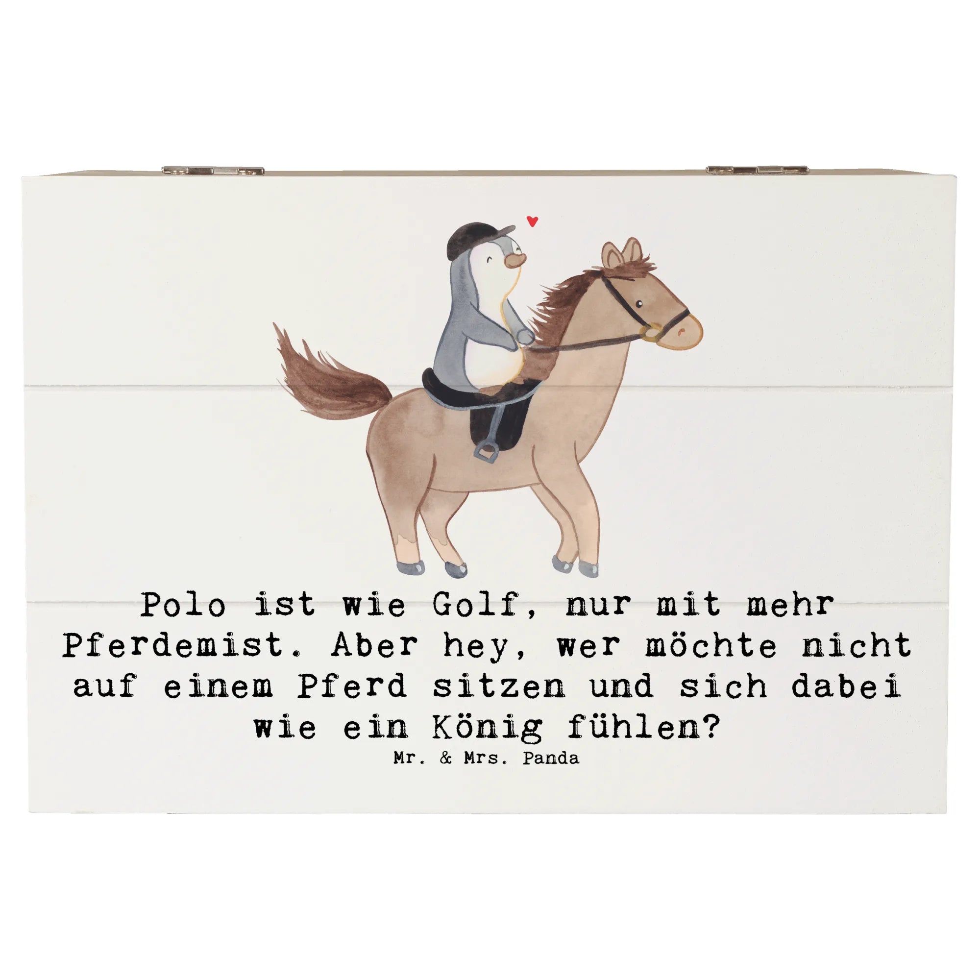 Entdecke die perfekte Holzkiste von Mr. & Mrs. Panda, eine liebevolle Erinnerungsbox, die nicht nur praktisch, sondern auch ein echter Hingucker ist! Diese wunderschöne Kiste ist bedruckt mit einem humorvollen Motto: 'Polo ist wie Golf, nur mit mehr Pferdemist. Aber hey, wer möchte nicht auf einem Pferd sitzen und sich dabei wie ein König fühlen?'. Ideal für alle Sportbegeisterten und Freunde des Polosports. Egal, ob du sie für eigene Erinnerungen nutzt oder als Geschenkbox für besondere Anlässe wie Kommunion, Konfirmation oder Geburtstage verwendest, diese Schatzkiste wird mit Sicherheit Herzen höher schlagen lassen!