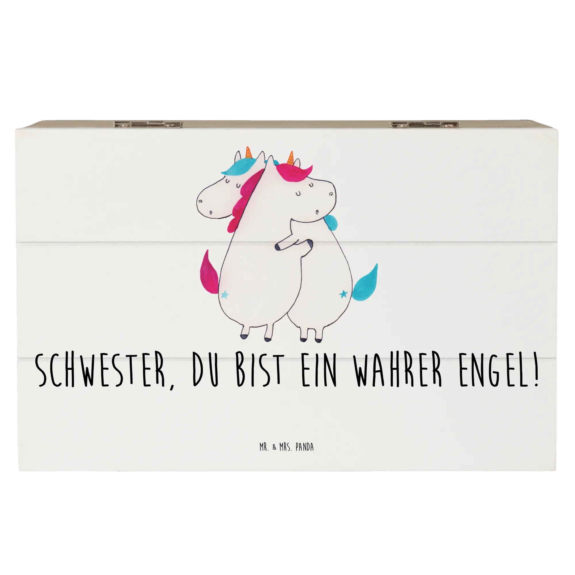 Die wunderschöne Holzkiste von Mr. & Mrs. Panda ist das perfekte Geschenk für deine Schwester! Mit dem liebevollen Slogan 'Schwester, du bist ein wahrer Engel!' zauberst du ihr ganz sicher ein Lächeln ins Gesicht.