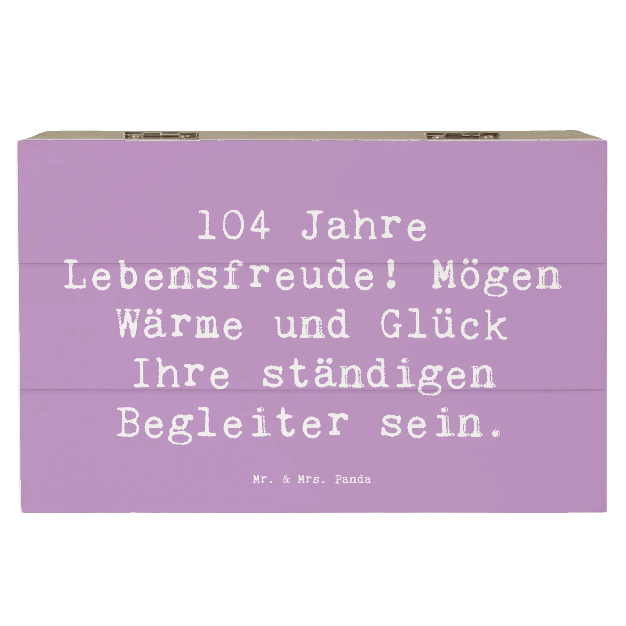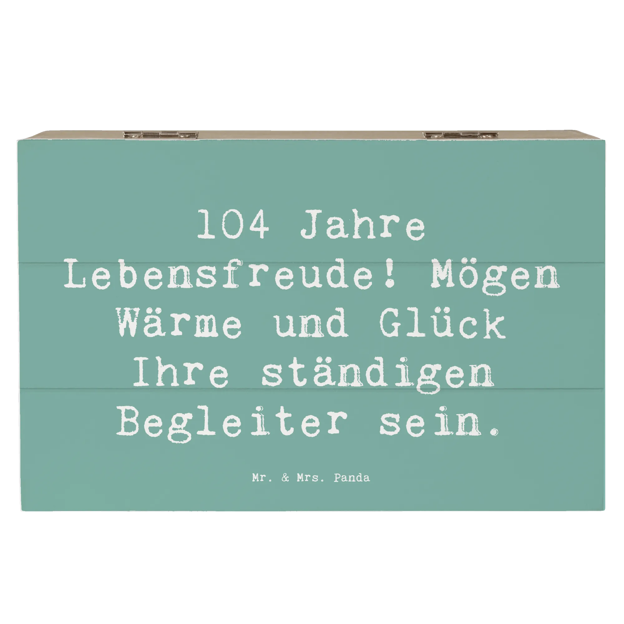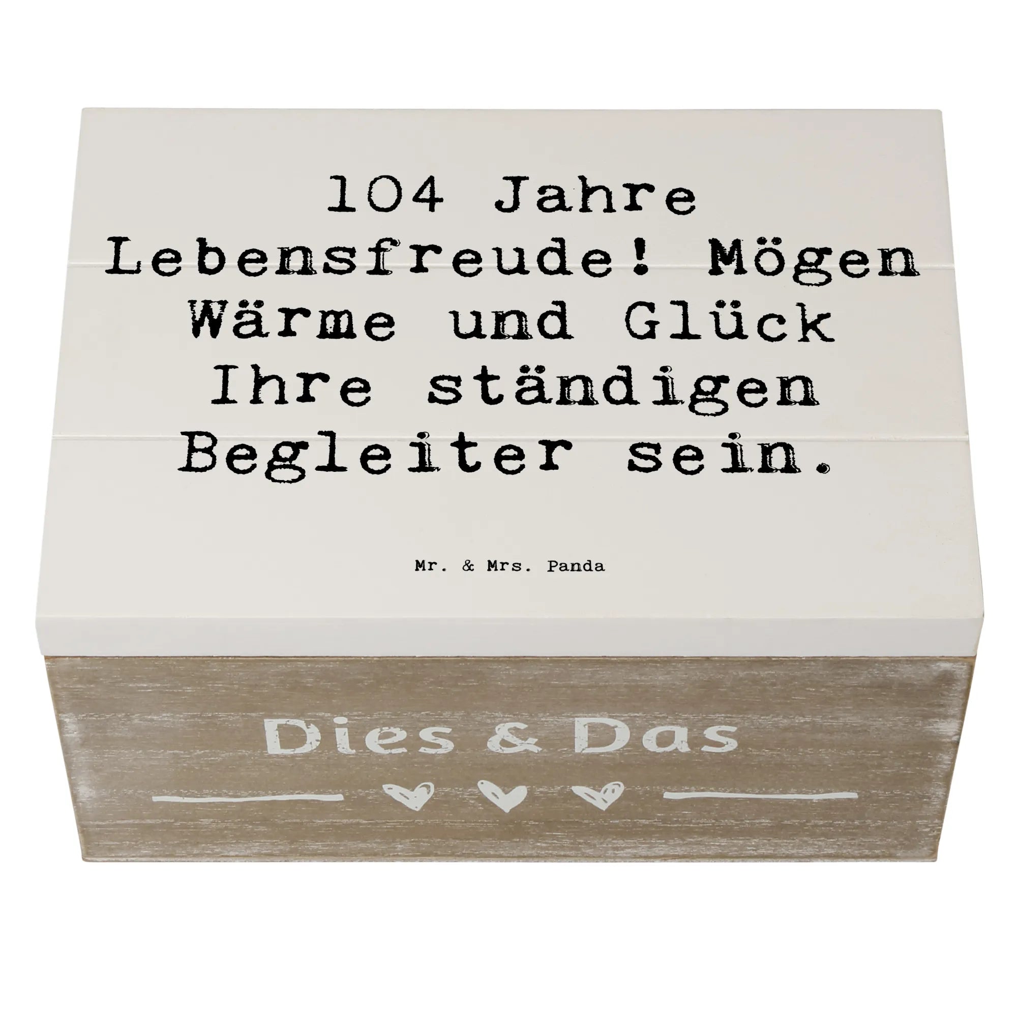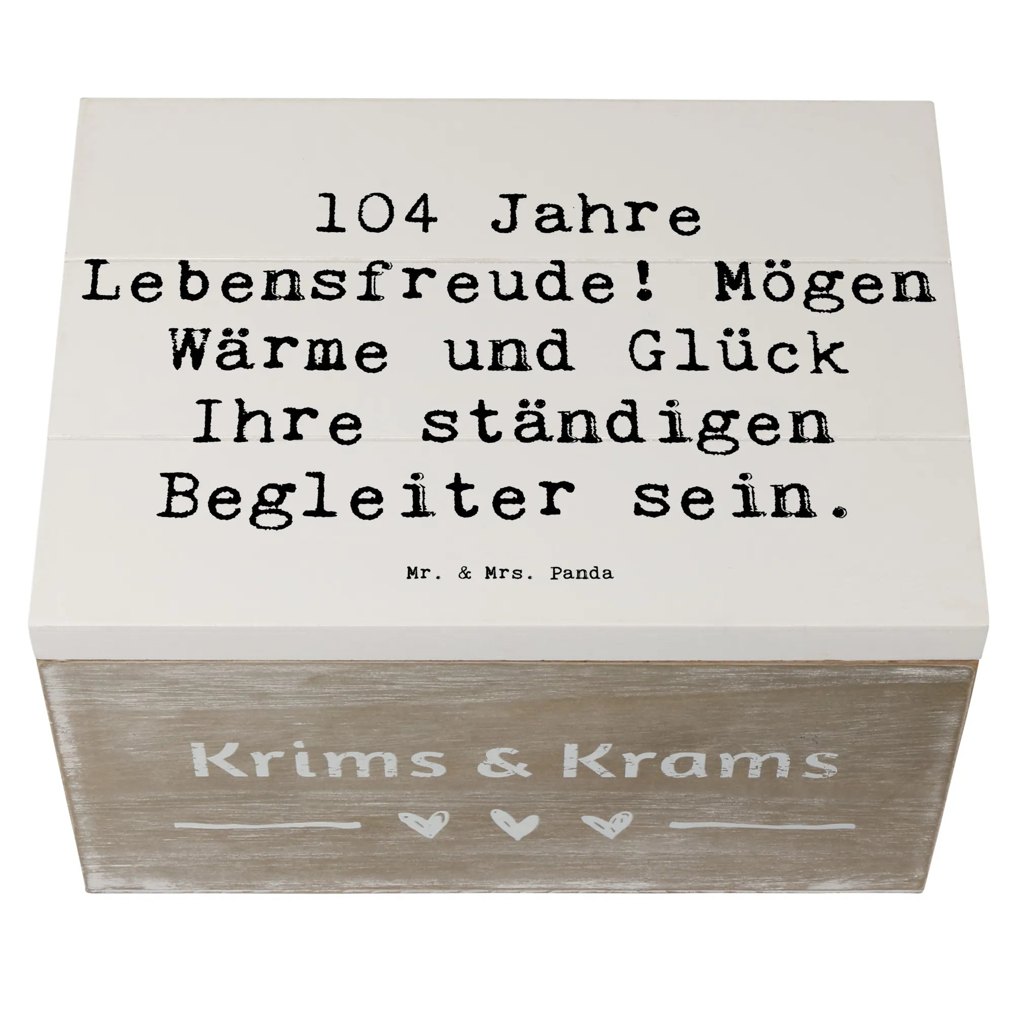 Die wundervolle Holzkiste von Mr. & Mrs. Panda ist das perfekte Geschenk zum 104. Geburtstag! Mit dem Spruch '104 Jahre Lebensfreude! Mögen Wärme und Glück Ihre ständigen Begleiter sein.' ist diese Kiste ein liebevolles Andenken für besondere Anlässe.