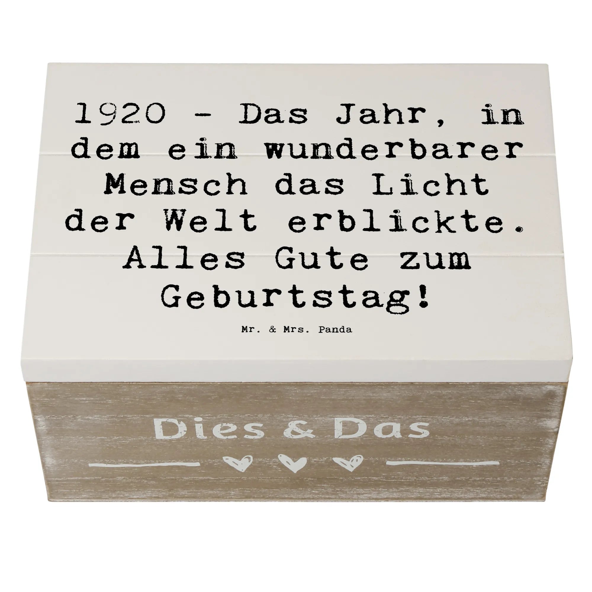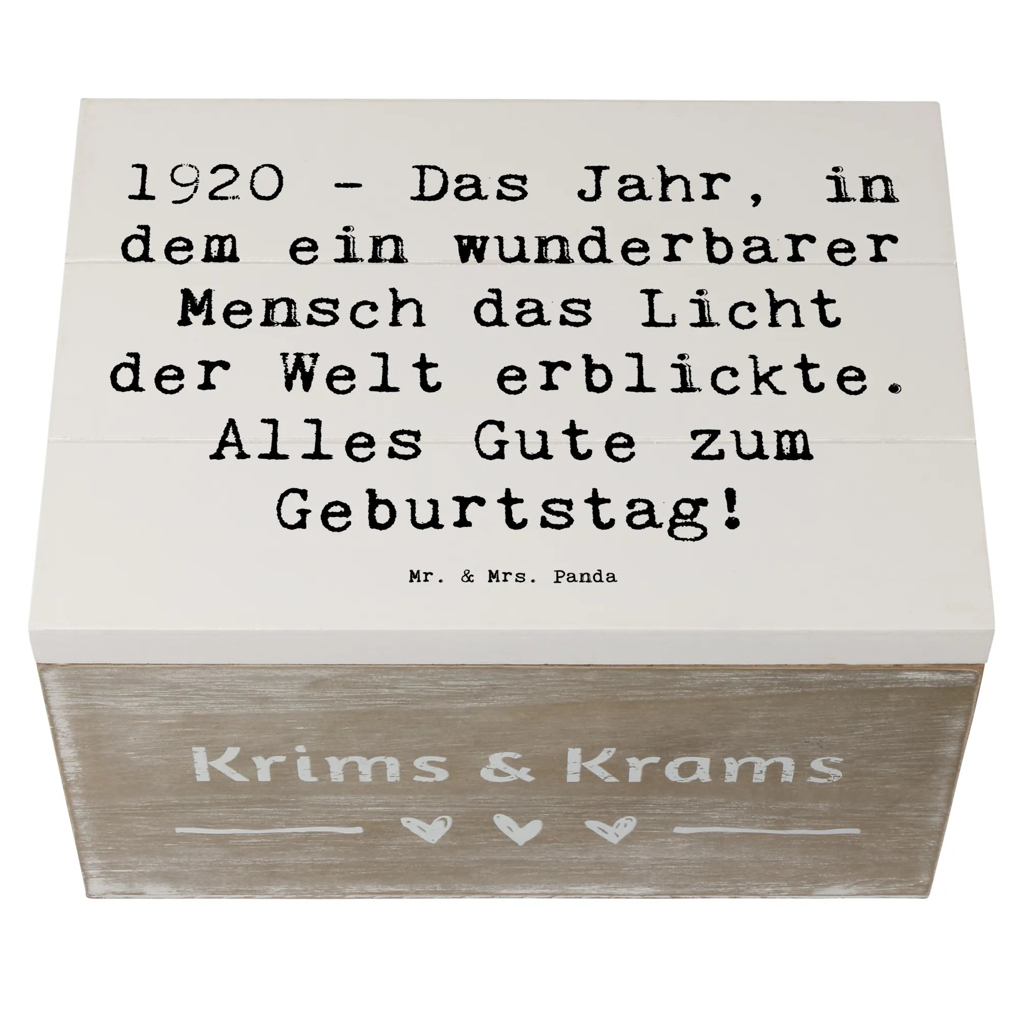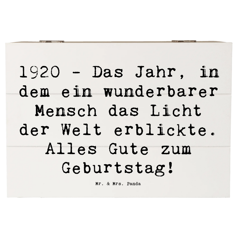Die wunderschöne Holzkiste von Mr. & Mrs. Panda mit dem Motiv '1920 - Das Jahr, in dem ein wunderbarer Mensch das Licht der Welt erblickte. Alles Gute zum Geburtstag!' ist der perfekte Ort, um die schönsten Erinnerungen zu bewahren.