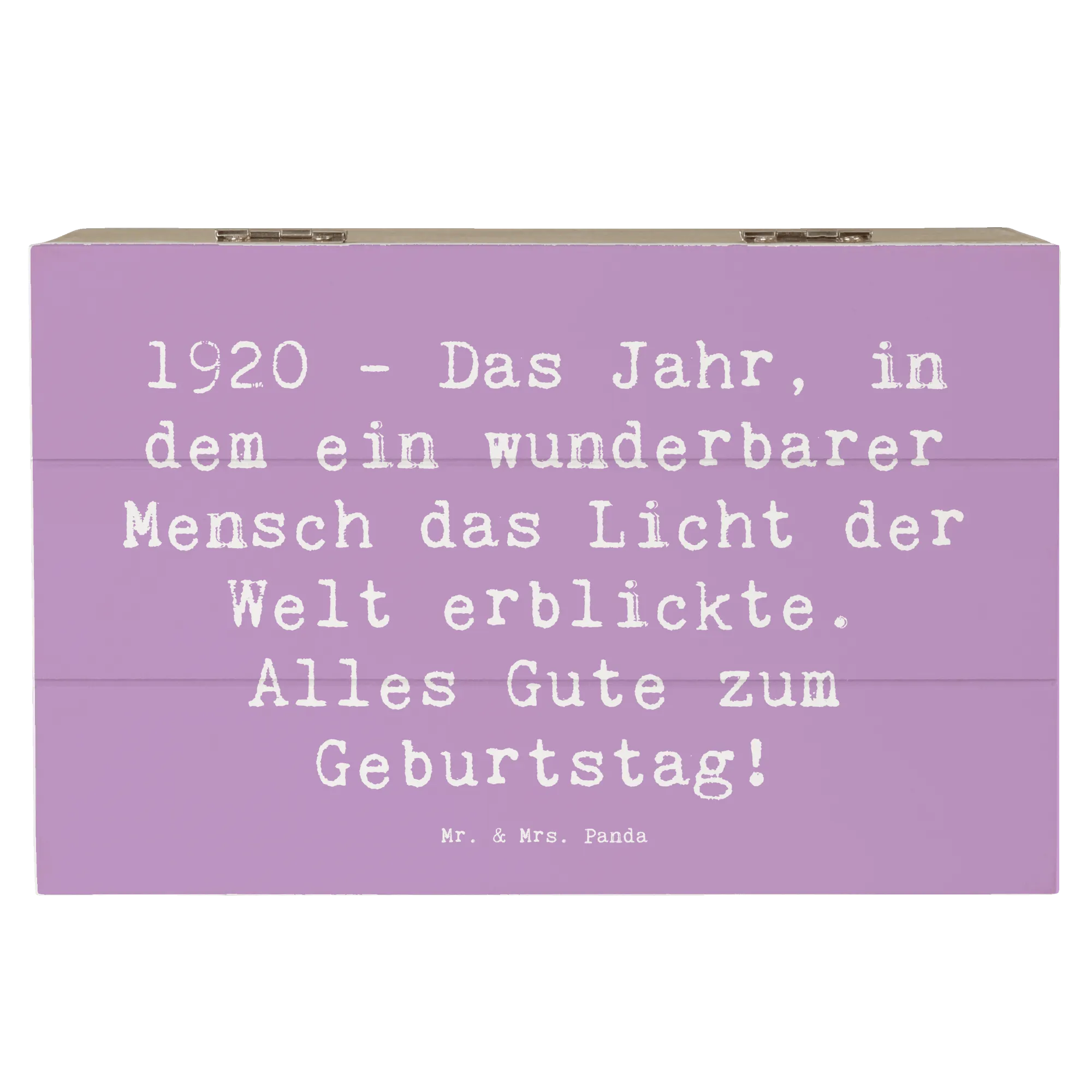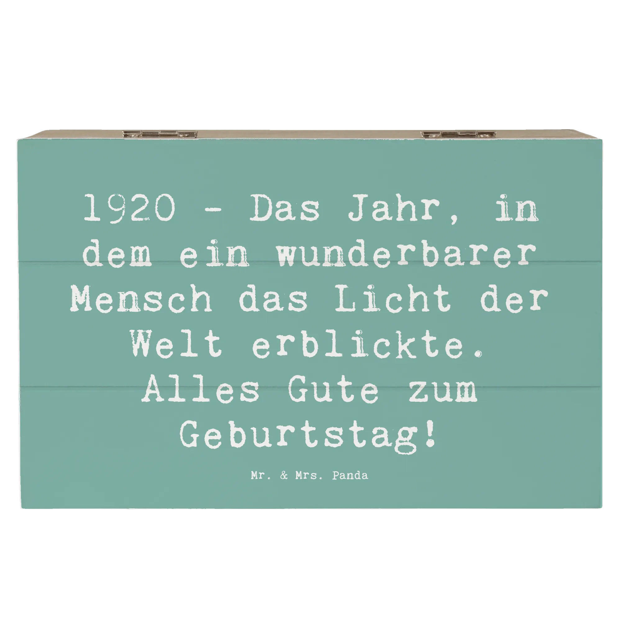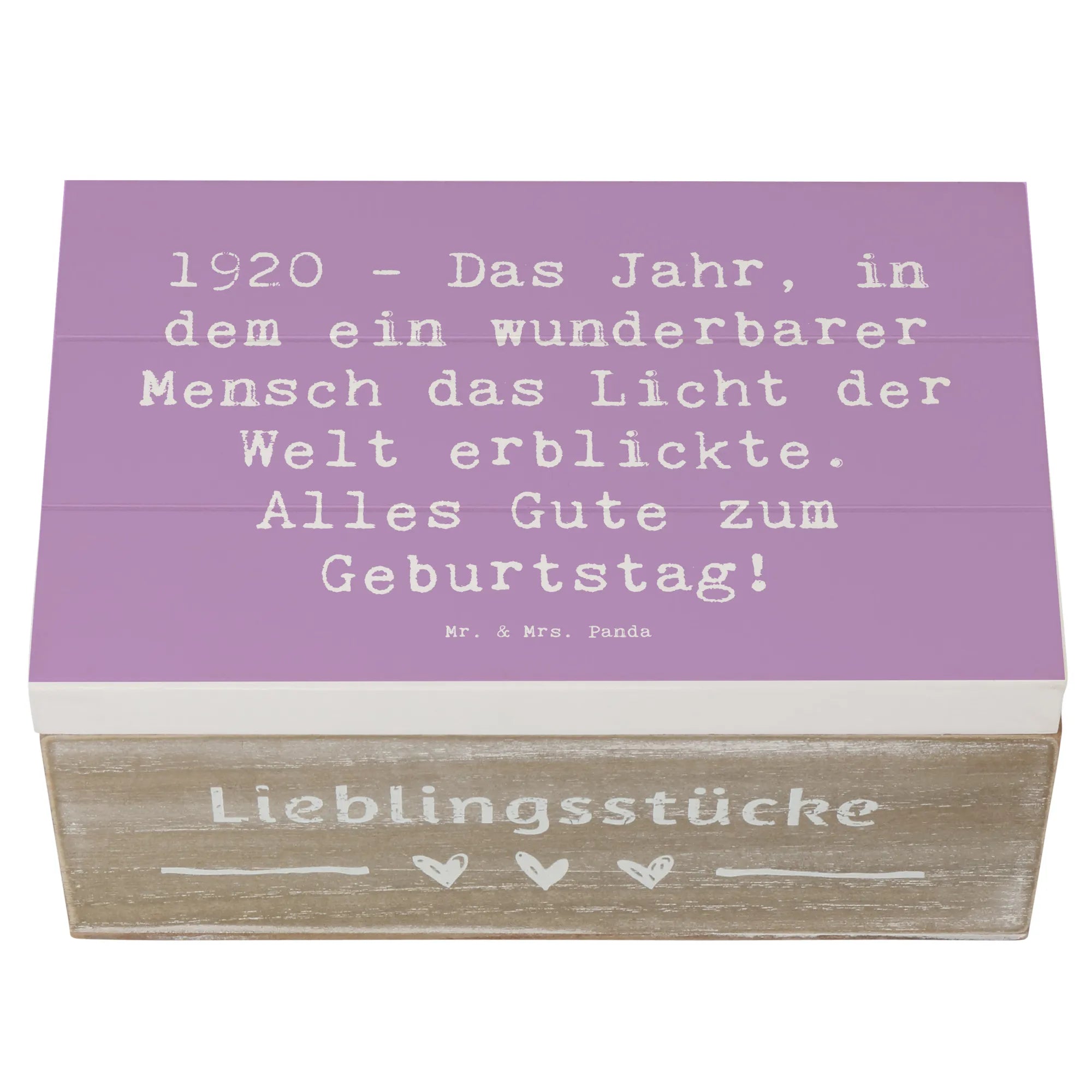Die wunderschöne Holzkiste von Mr. & Mrs. Panda mit dem Motiv '1920 - Das Jahr, in dem ein wunderbarer Mensch das Licht der Welt erblickte. Alles Gute zum Geburtstag!' ist der perfekte Ort, um die schönsten Erinnerungen zu bewahren.