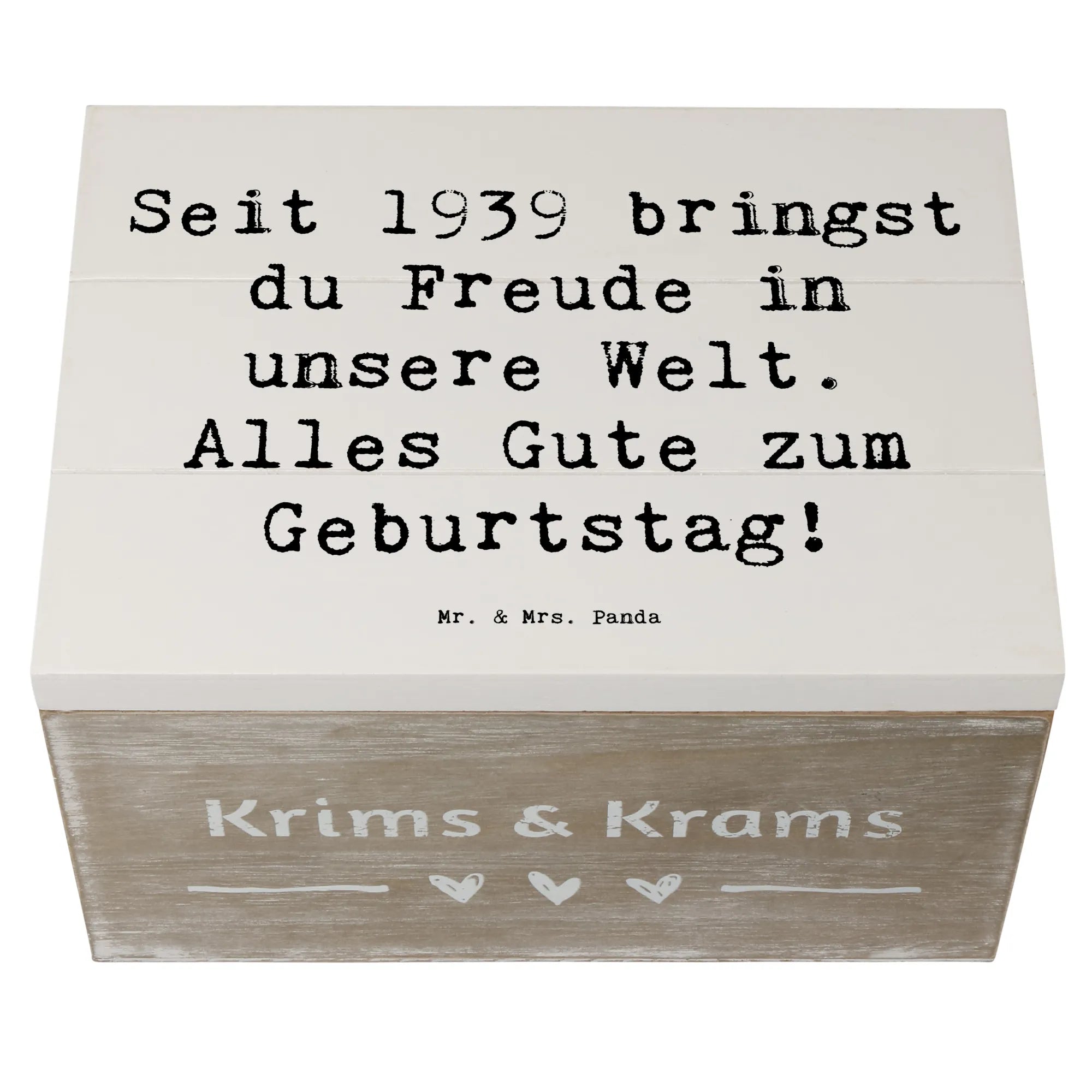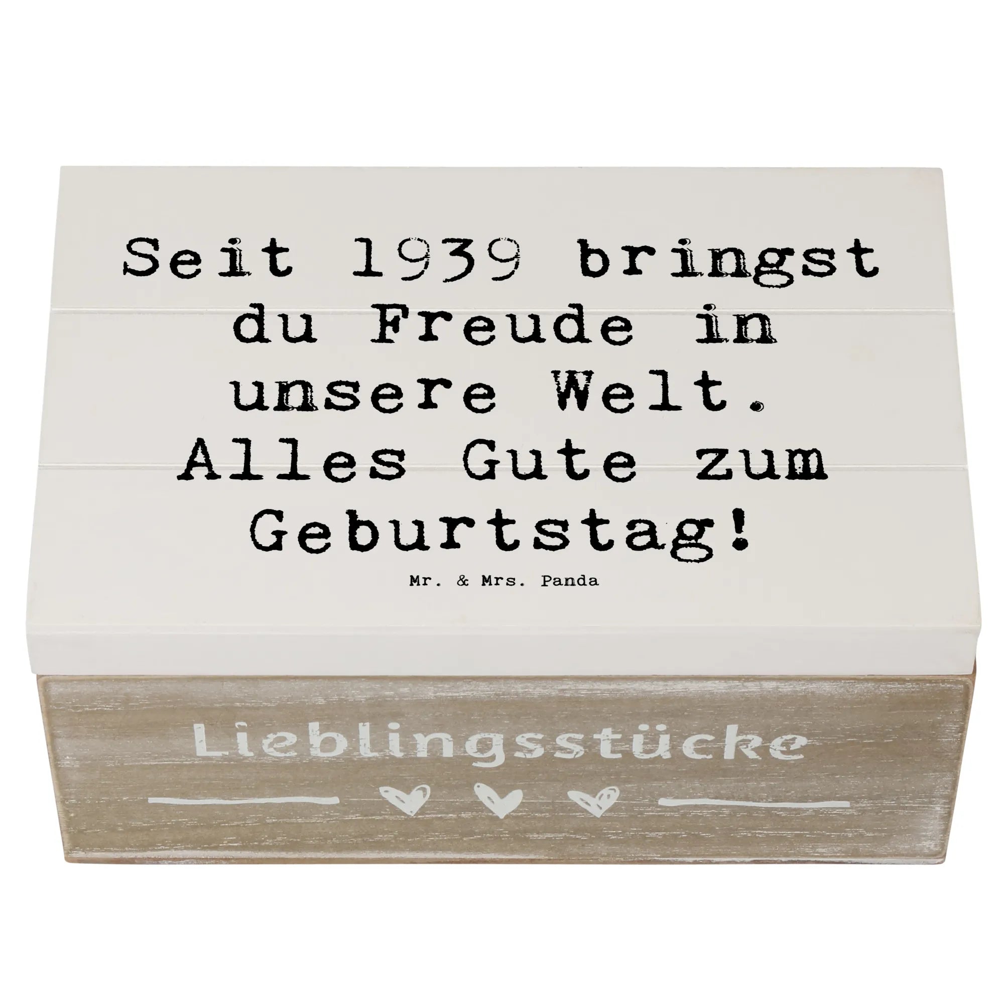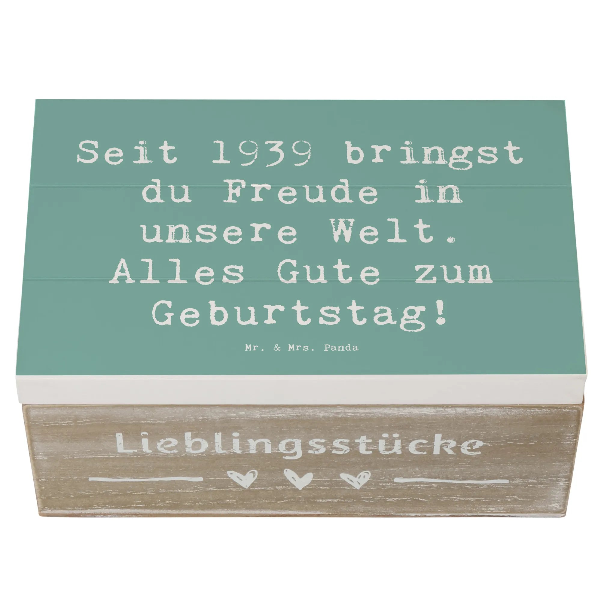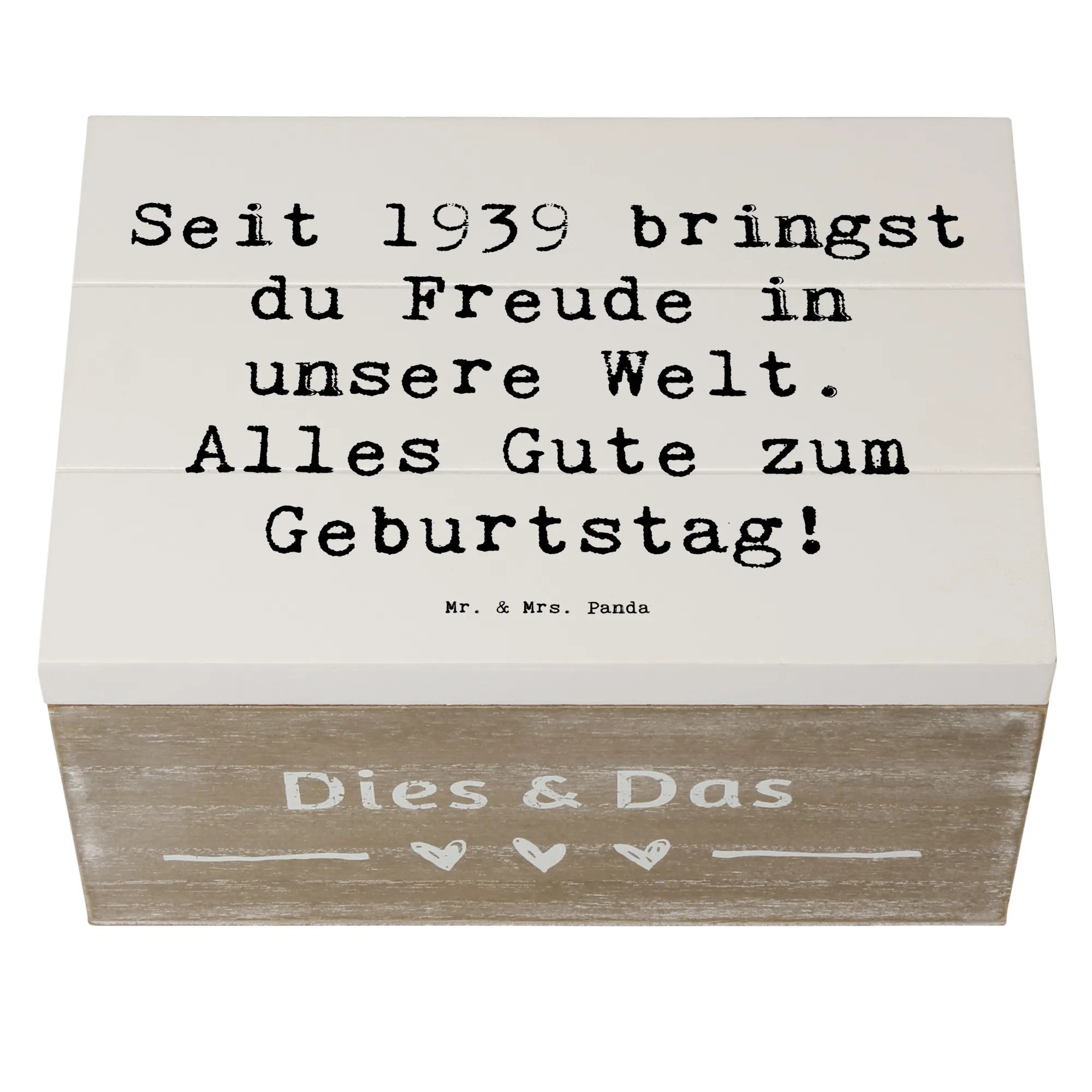 Die wunderschöne Holzkiste von Mr. & Mrs. Panda ist das perfekte Geschenk für jeden, der 1939 geboren wurde und seinen Geburtstag feiert! Mit dem liebevollen Spruch 'Seit 1939 bringst du Freude in unsere Welt. Alles Gute zum Geburtstag!' ist diese Kiste nicht nur ein praktisches Aufbewahrungselement, sondern auch ein herzerwärmendes Andenken.