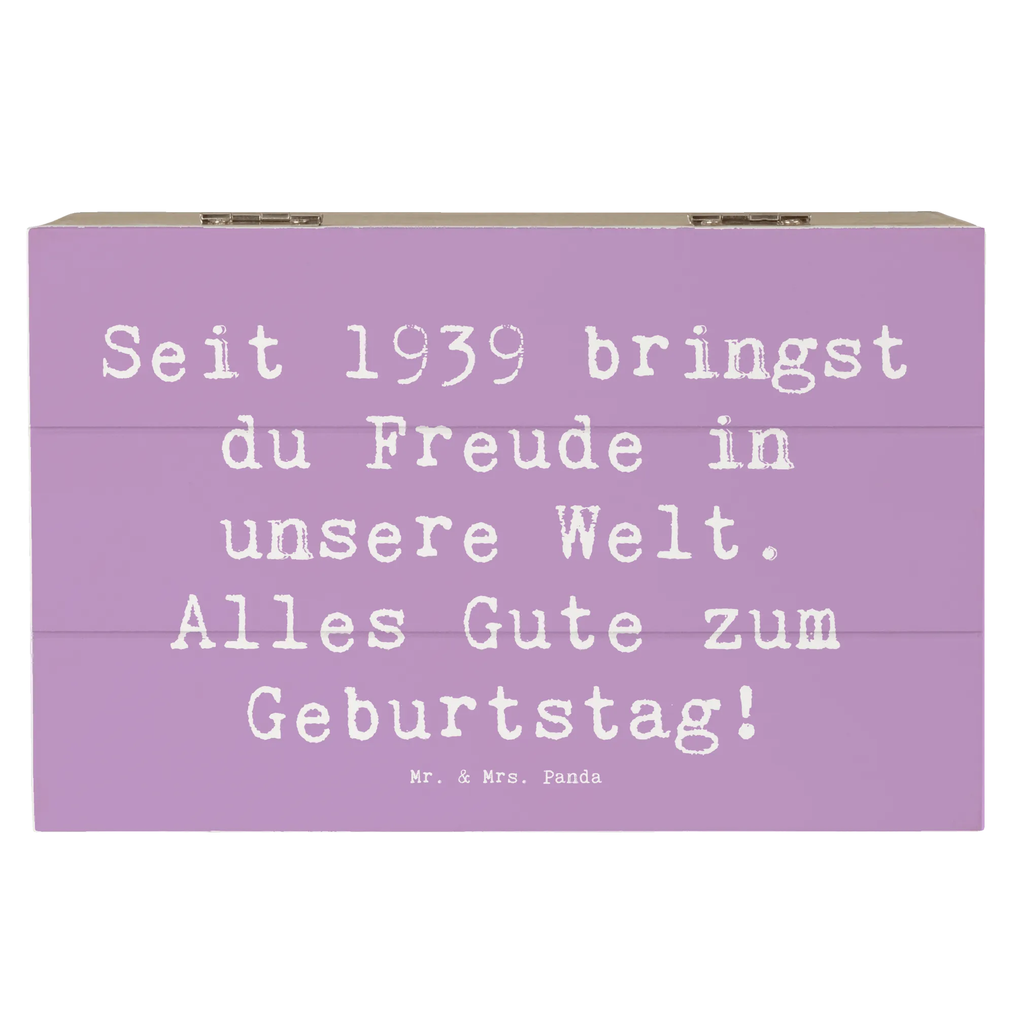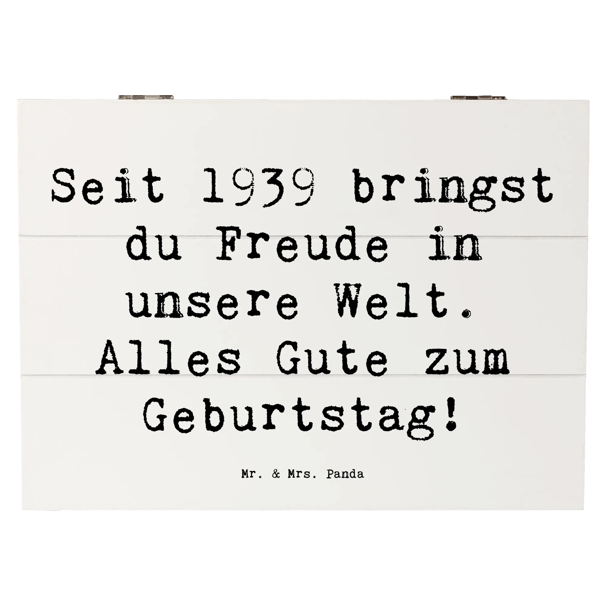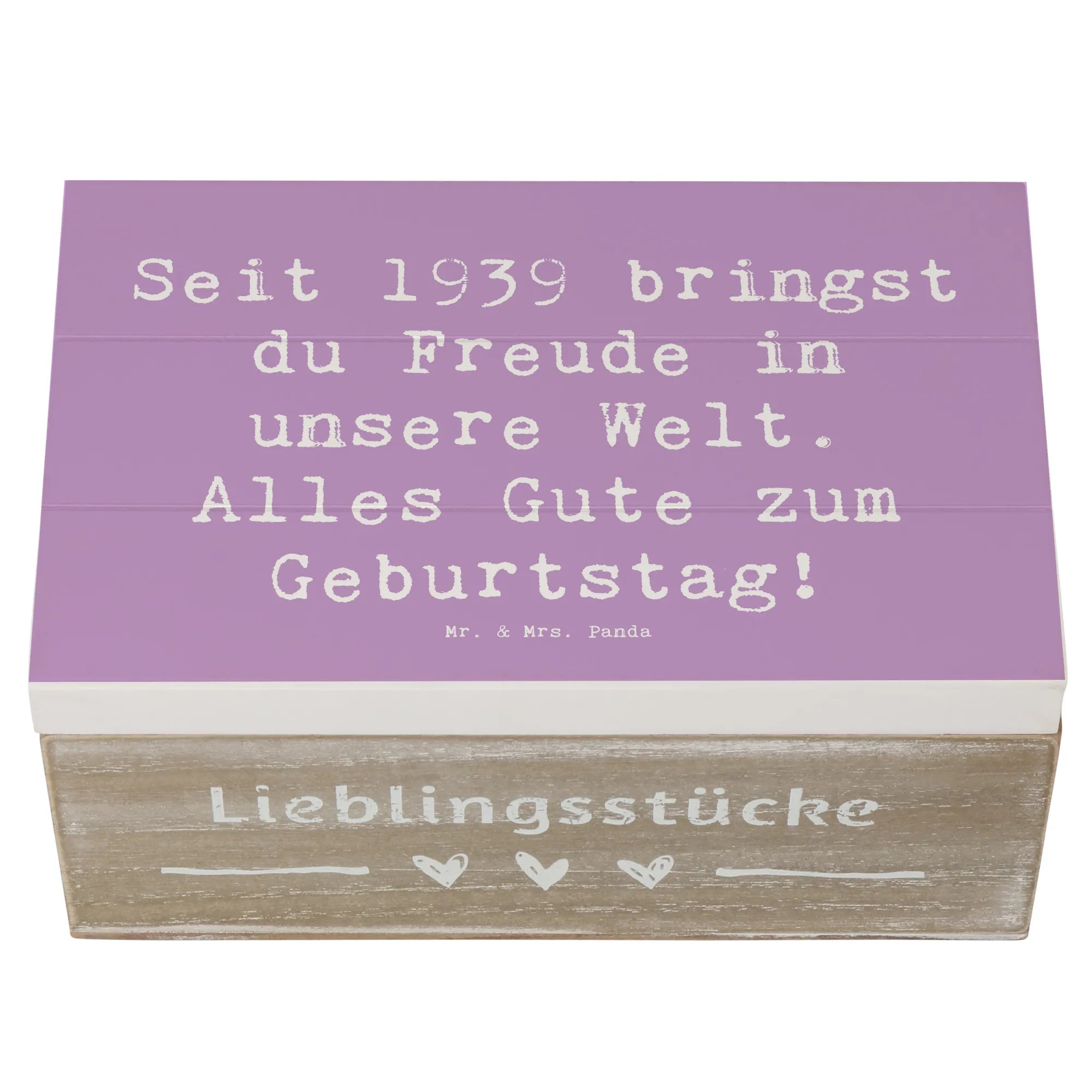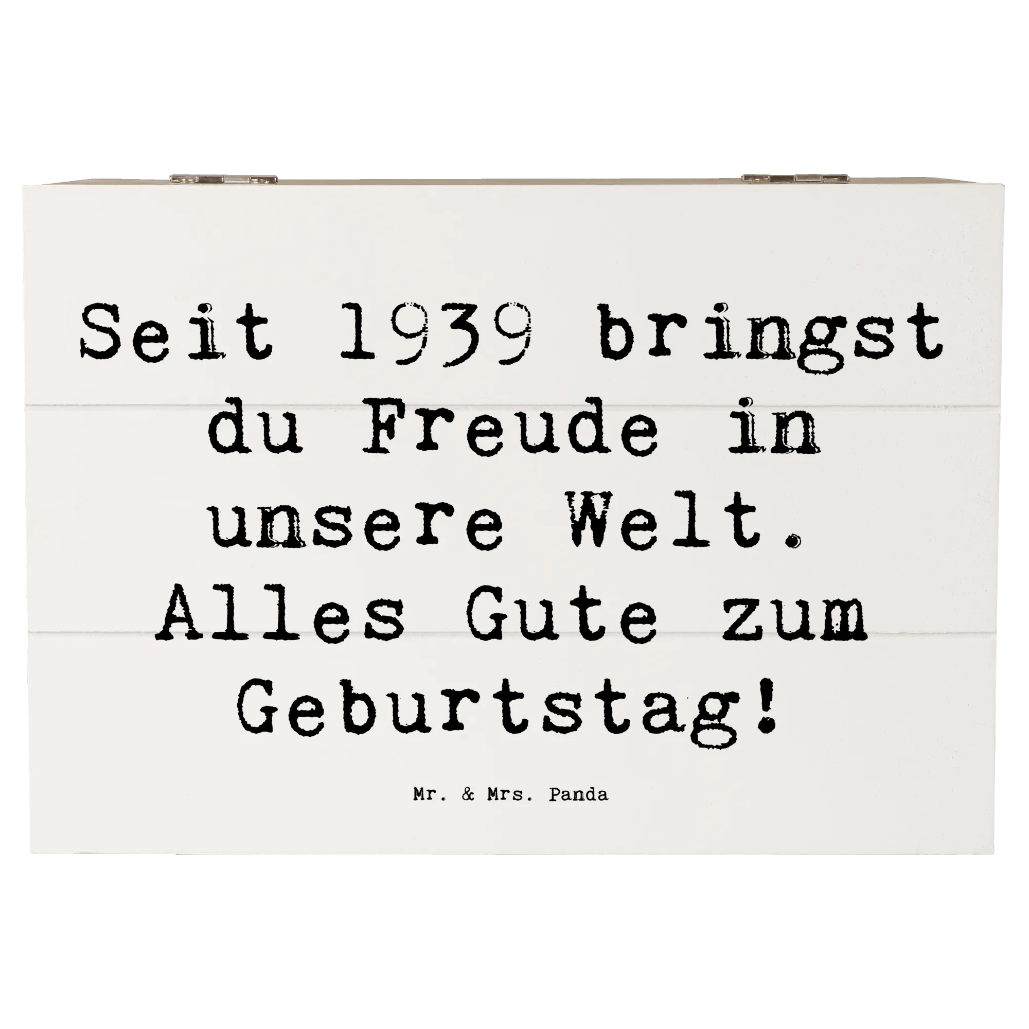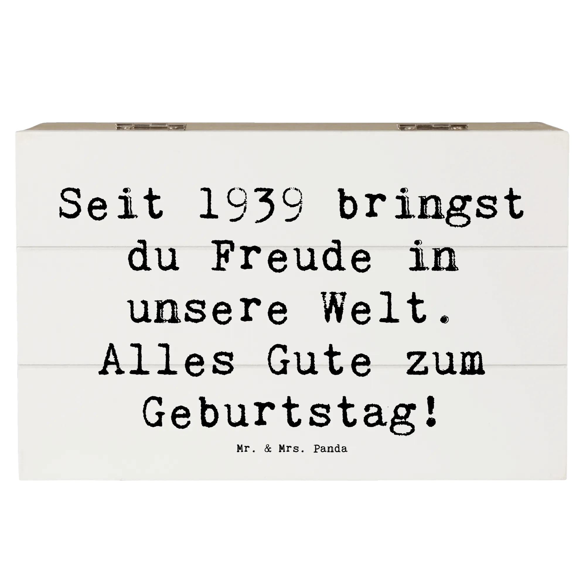Die wunderschöne Holzkiste von Mr. & Mrs. Panda ist das perfekte Geschenk für jeden, der 1939 geboren wurde und seinen Geburtstag feiert! Mit dem liebevollen Spruch 'Seit 1939 bringst du Freude in unsere Welt. Alles Gute zum Geburtstag!' ist diese Kiste nicht nur ein praktisches Aufbewahrungselement, sondern auch ein herzerwärmendes Andenken.