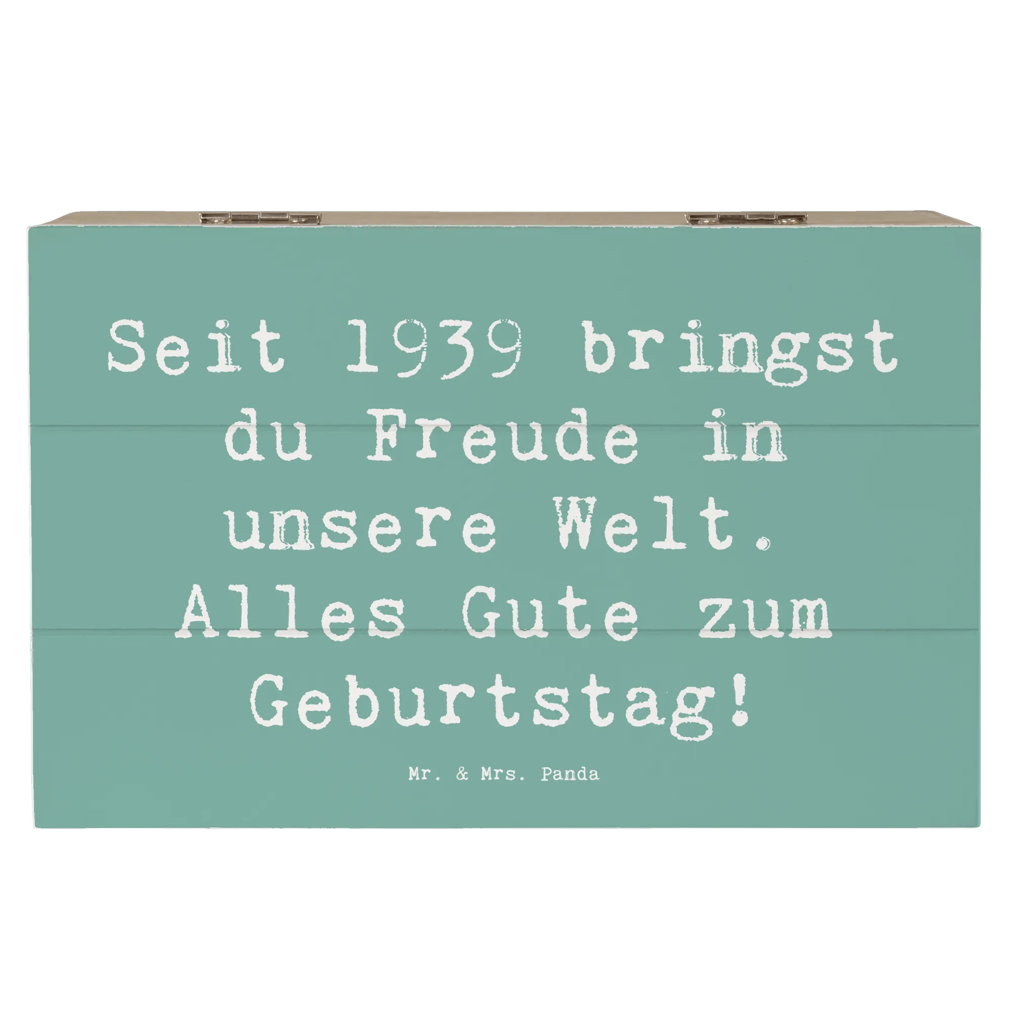 Die wunderschöne Holzkiste von Mr. & Mrs. Panda ist das perfekte Geschenk für alle, die 1939 geboren wurden oder einen besonderen Geburtstag feiern möchten. Mit dem liebevollen Slogan 'Seit 1939 bringst du Freude in unsere Welt. Alles Gute zum Geburtstag!' ist diese Kiste nicht nur eine Augenweide, sondern auch ein wunderbarer Aufbewahrungsort für kostbare Erinnerungen.