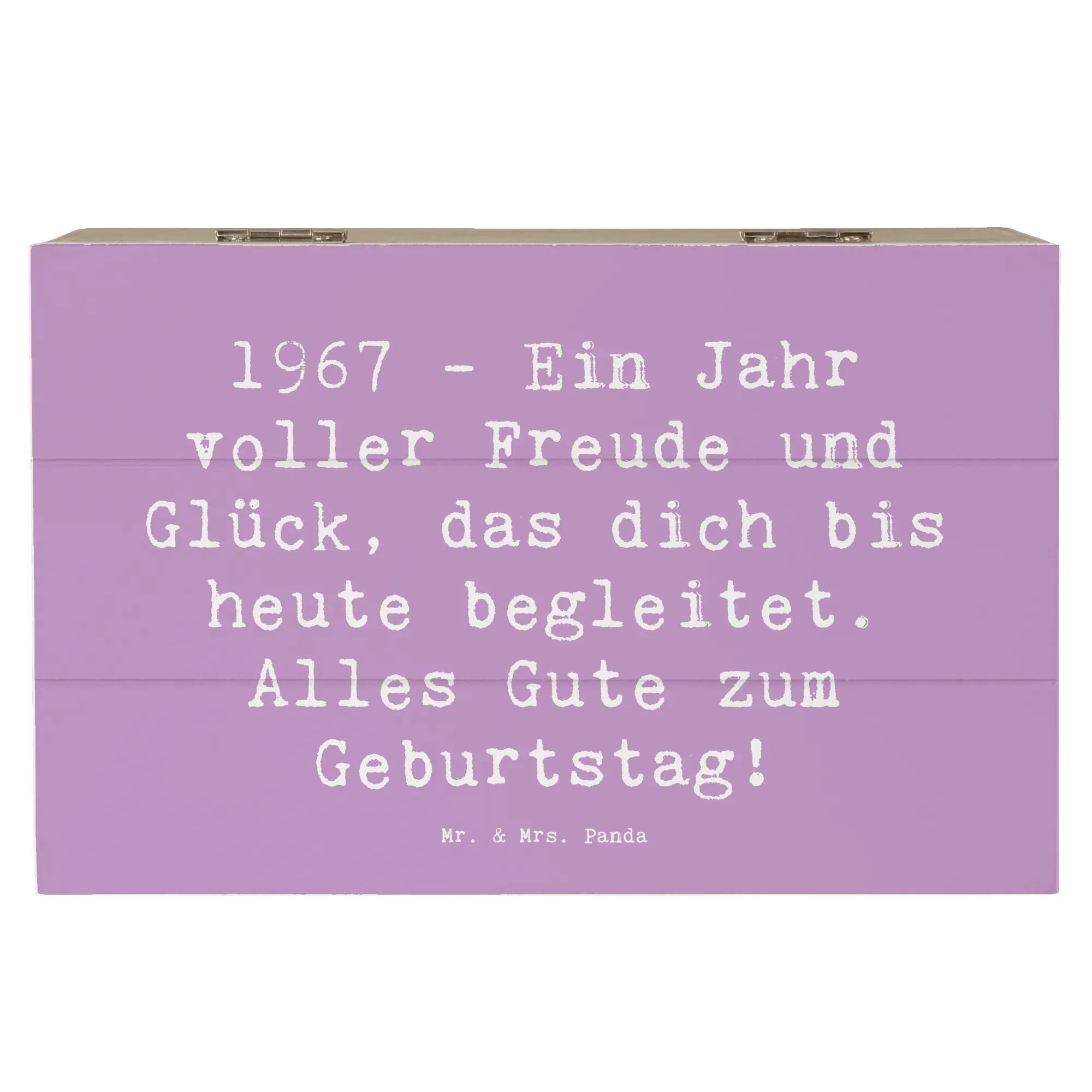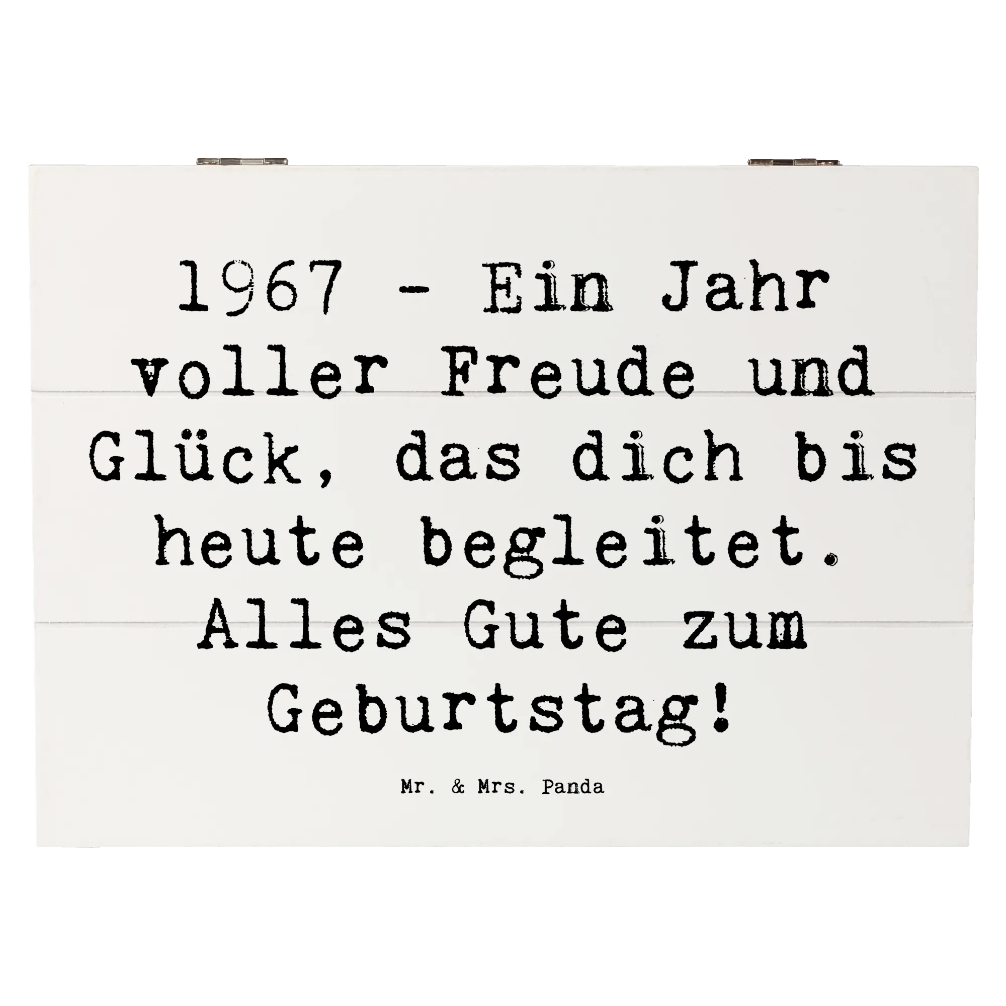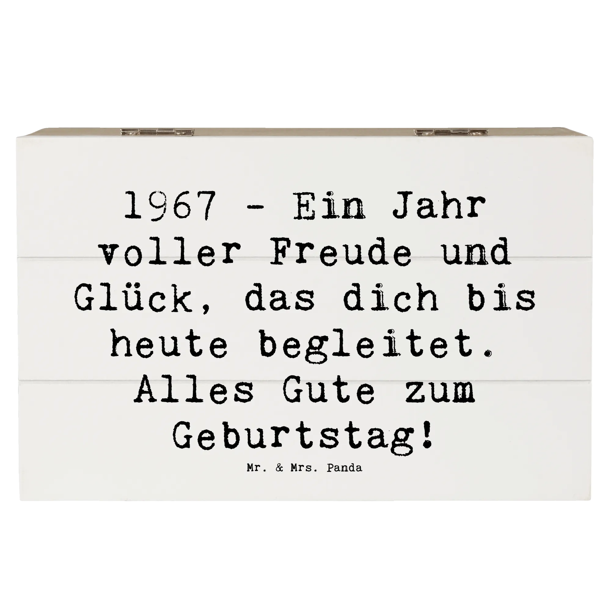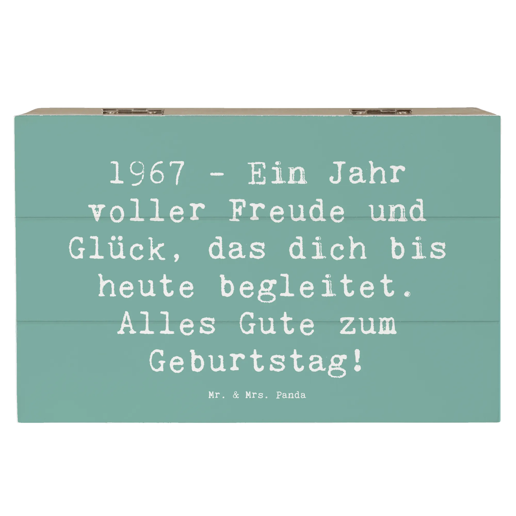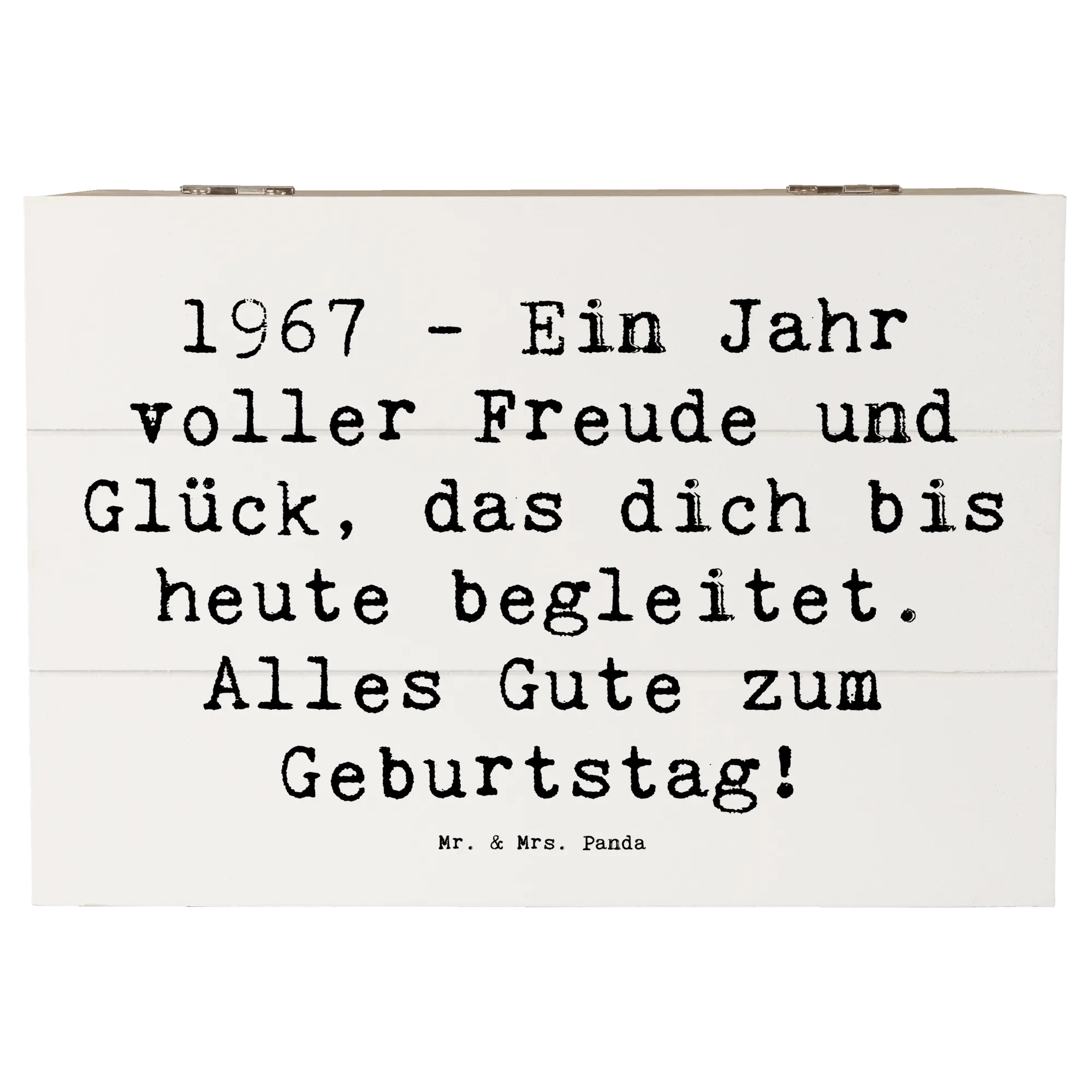 Die wunderschöne Holzkiste von Mr. & Mrs. Panda mit dem Motiv "1967 - Ein Jahr voller Freude und Glück, das dich bis heute begleitet. Alles Gute zum Geburtstag!" ist das perfekte Geschenk für jeden, der in diesem fantastischen Jahr das Licht der Welt erblickt hat.