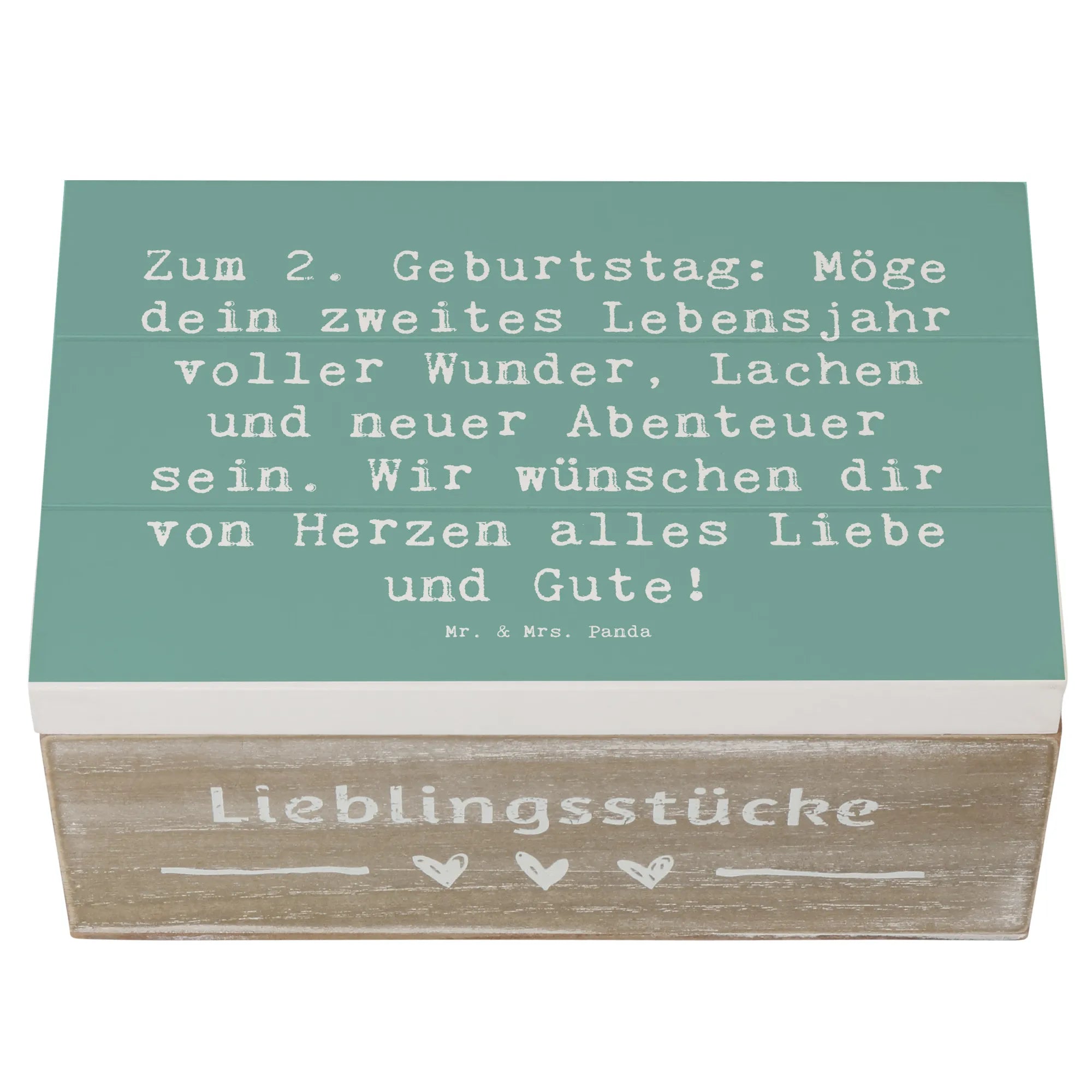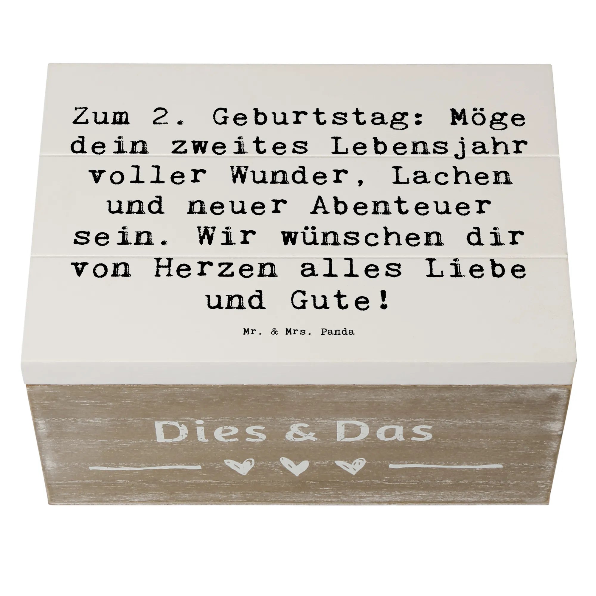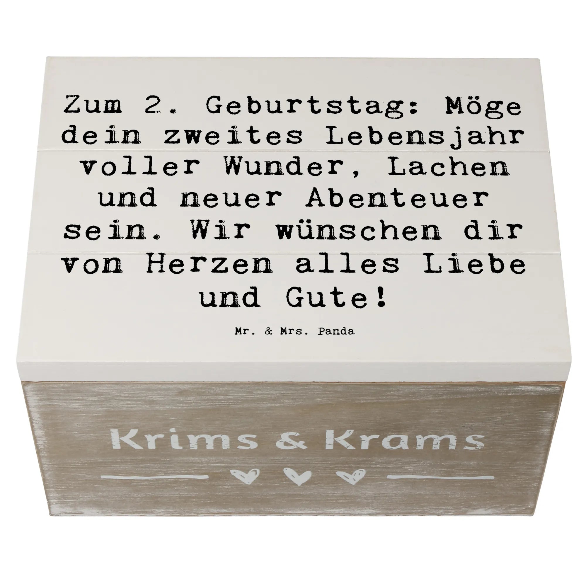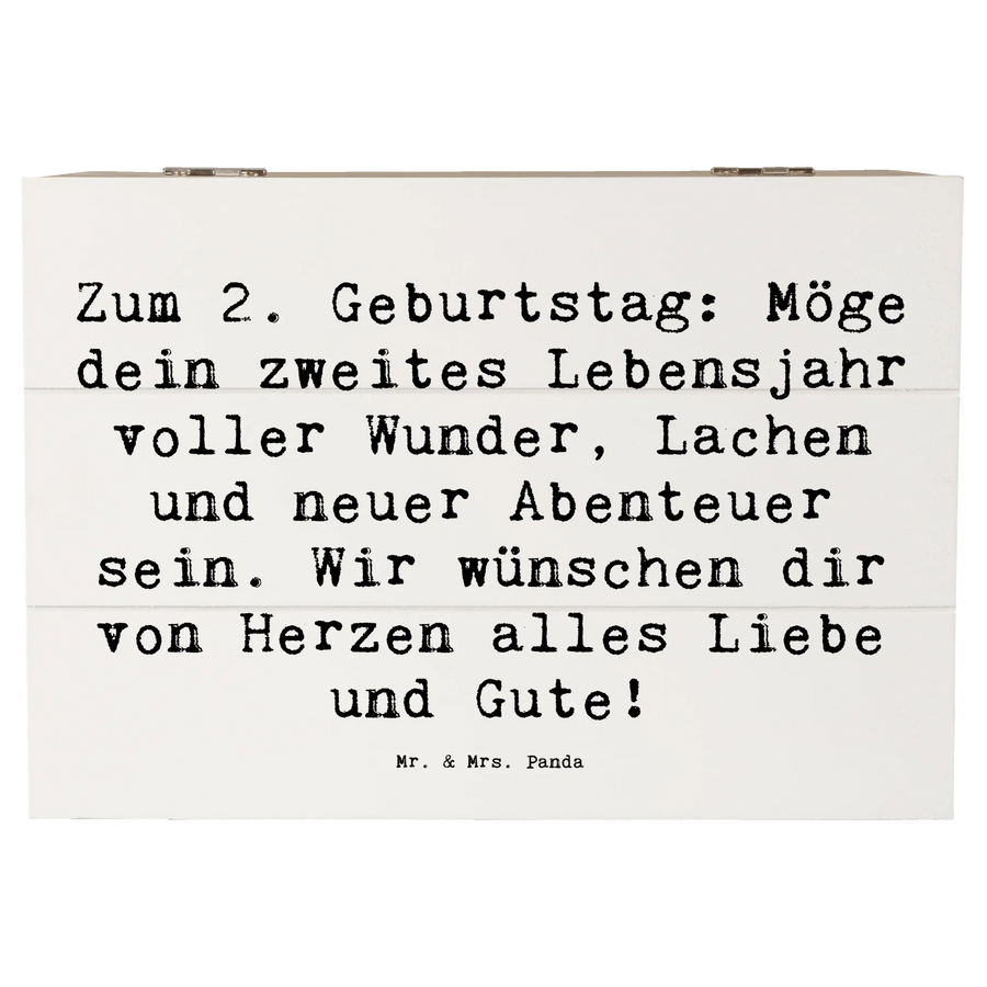 Die wunderschöne Holzkiste von Mr. & Mrs. Panda ist die perfekte Erinnerungskiste für den 2. Geburtstag! Mit ihrem liebevoll gestalteten Motiv und dem inspirierenden Spruch "Zum 2. Geburtstag: Möge dein zweites Lebensjahr voller Wunder, Lachen und neuer Abenteuer sein. Wir wünschen dir von Herzen alles Liebe und Gute!" bietet diese Kiste nicht nur Platz für die schönsten Schätze, sondern auch eine nostalgische Rückkehr zu den wertvollen Erinnerungen.