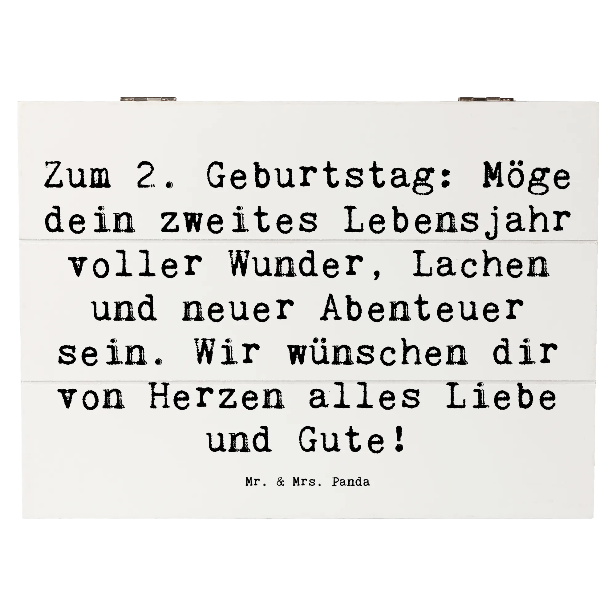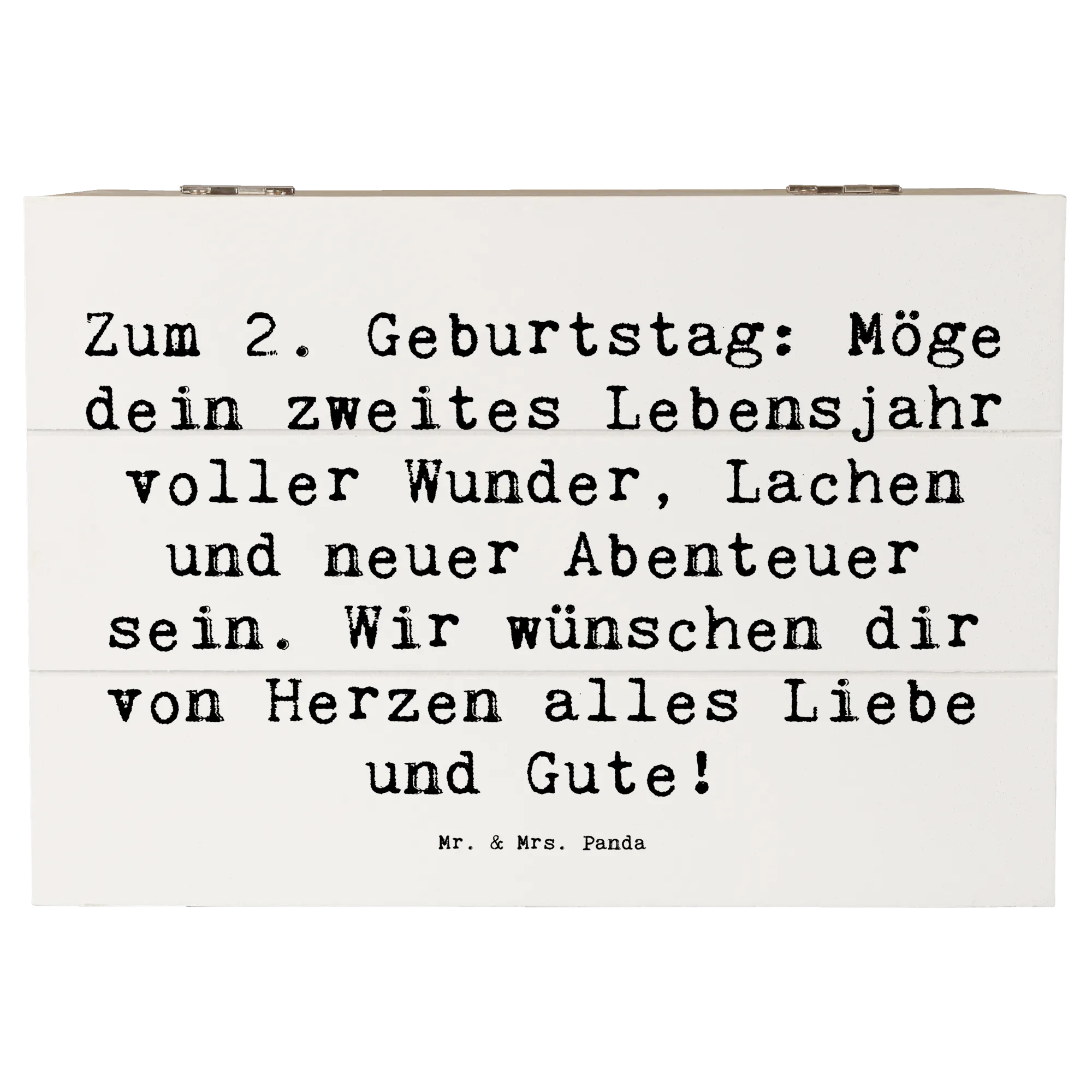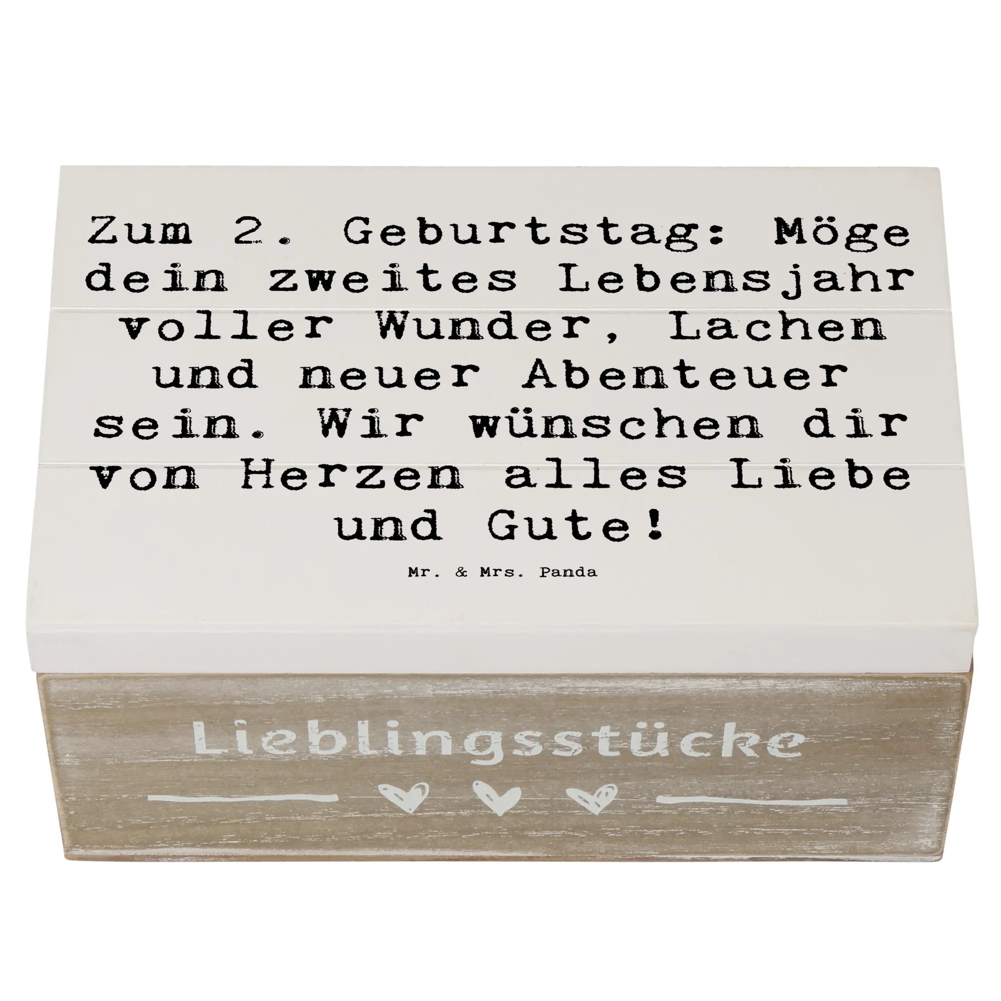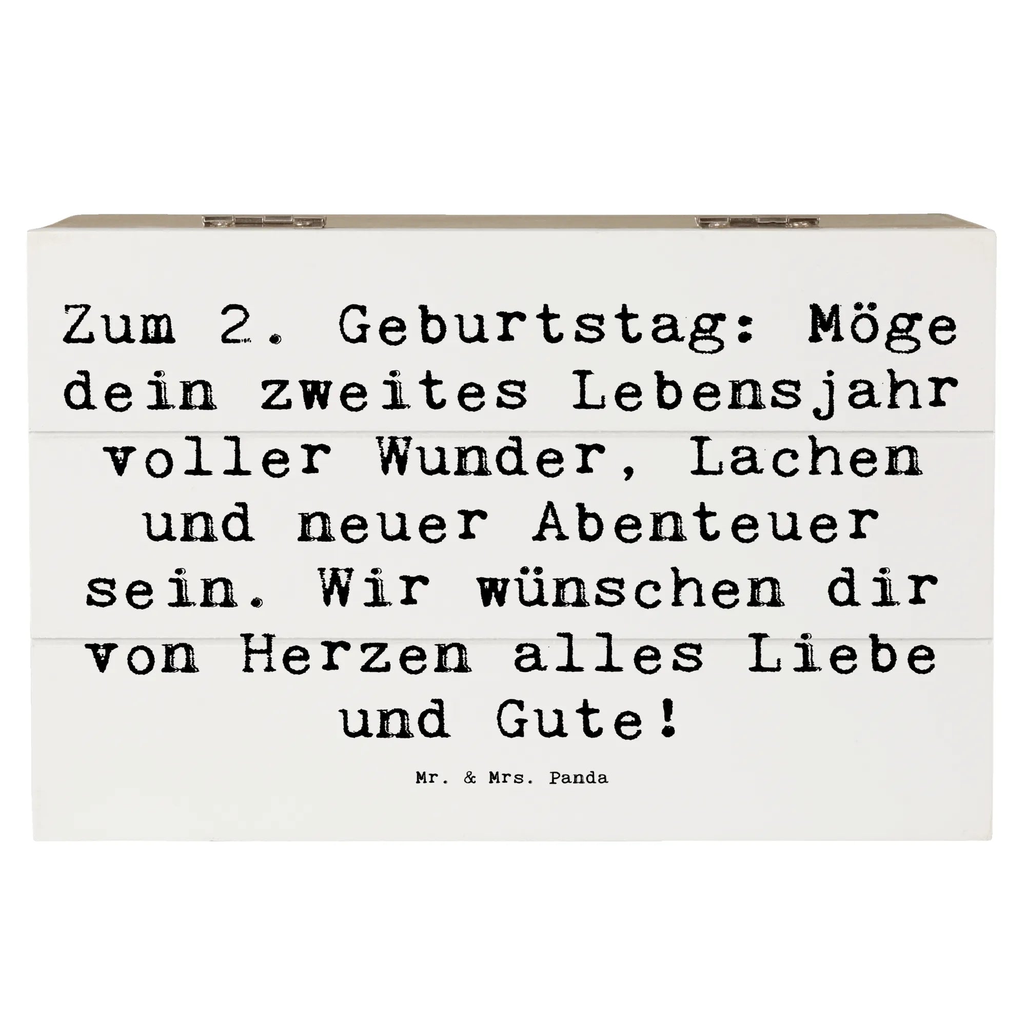 Die wunderschöne Holzkiste von Mr. & Mrs. Panda ist die perfekte Erinnerungskiste für den 2. Geburtstag! Mit ihrem liebevoll gestalteten Motiv und dem inspirierenden Spruch "Zum 2. Geburtstag: Möge dein zweites Lebensjahr voller Wunder, Lachen und neuer Abenteuer sein. Wir wünschen dir von Herzen alles Liebe und Gute!" bietet diese Kiste nicht nur Platz für die schönsten Schätze, sondern auch eine nostalgische Rückkehr zu den wertvollen Erinnerungen.