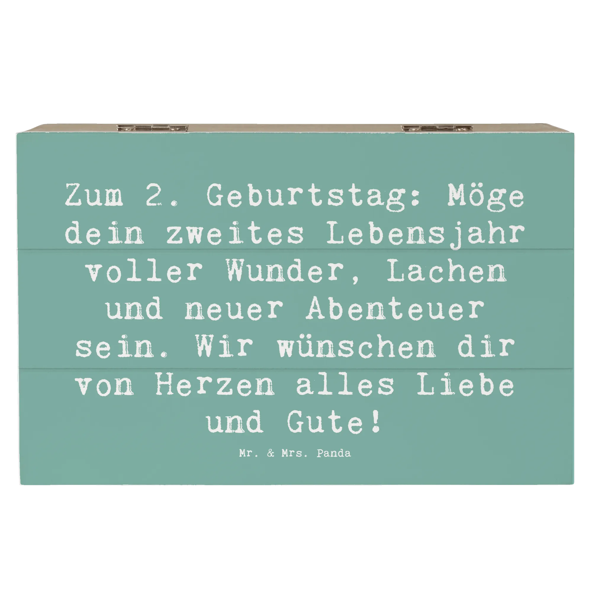 Mit dem fröhlichen Spruch "Zum 2. Geburtstag: Möge dein zweites Lebensjahr voller Wunder, Lachen und neuer Abenteuer sein. Wir wünschen dir von Herzen alles Liebe und Gute!" wird diese Holzkiste zu einem ganz besonderen Mitbringsel für den großen Tag. Du kannst sicher sein, dass Du ein Geschenk auswählst, welches die Augen eines jeden Kindes strahlen lässt.