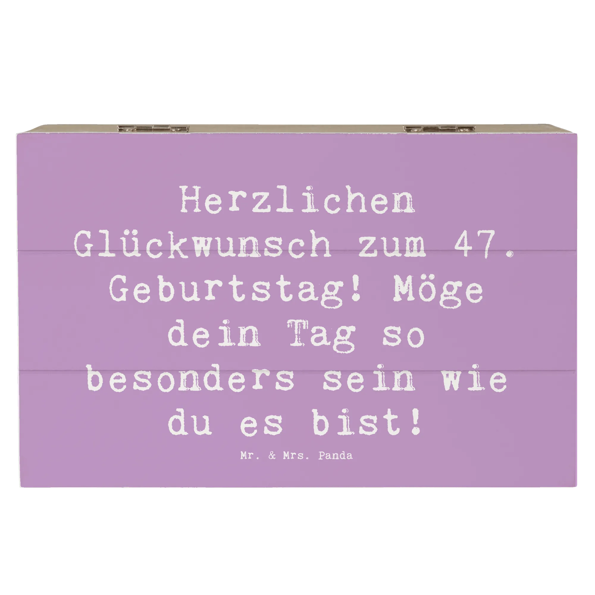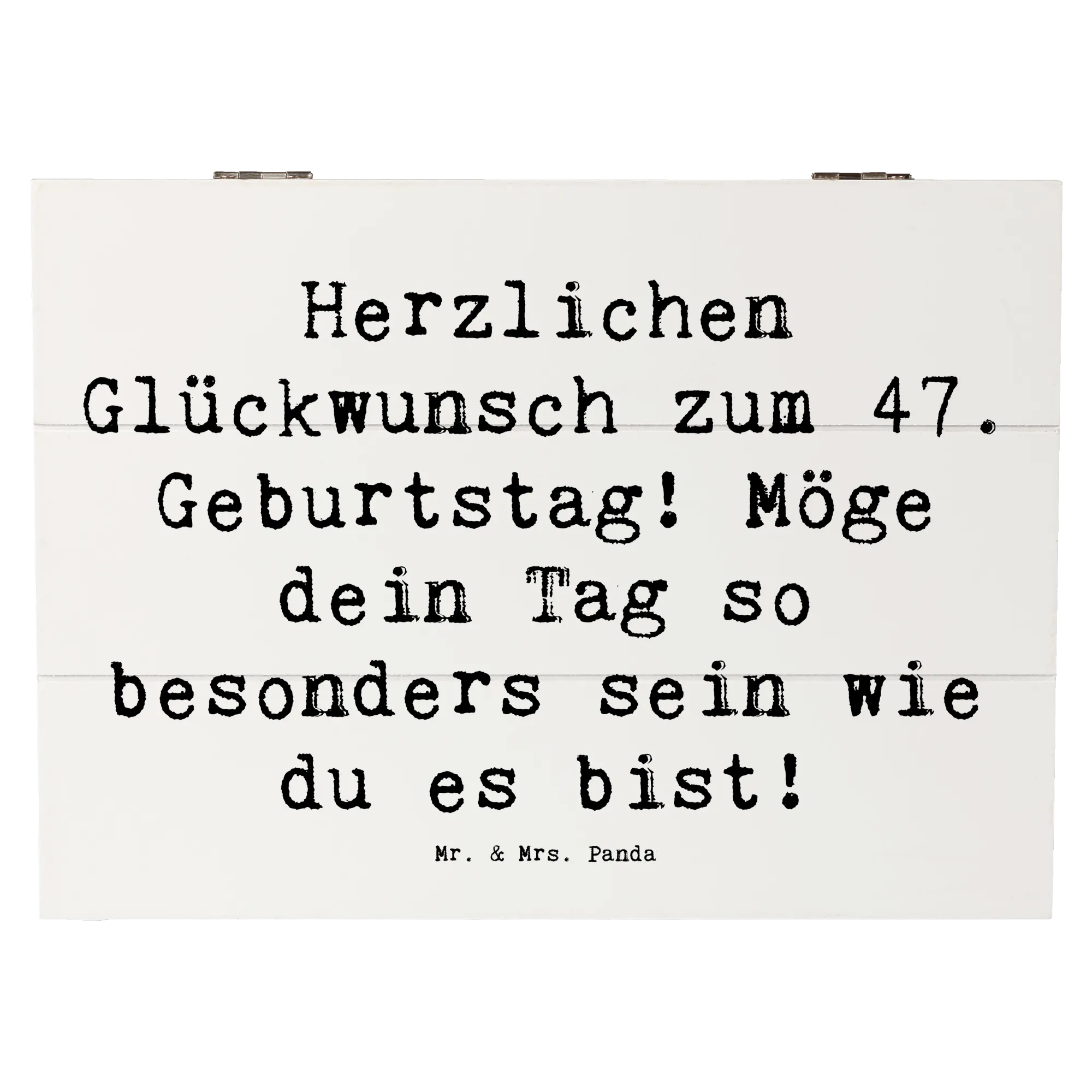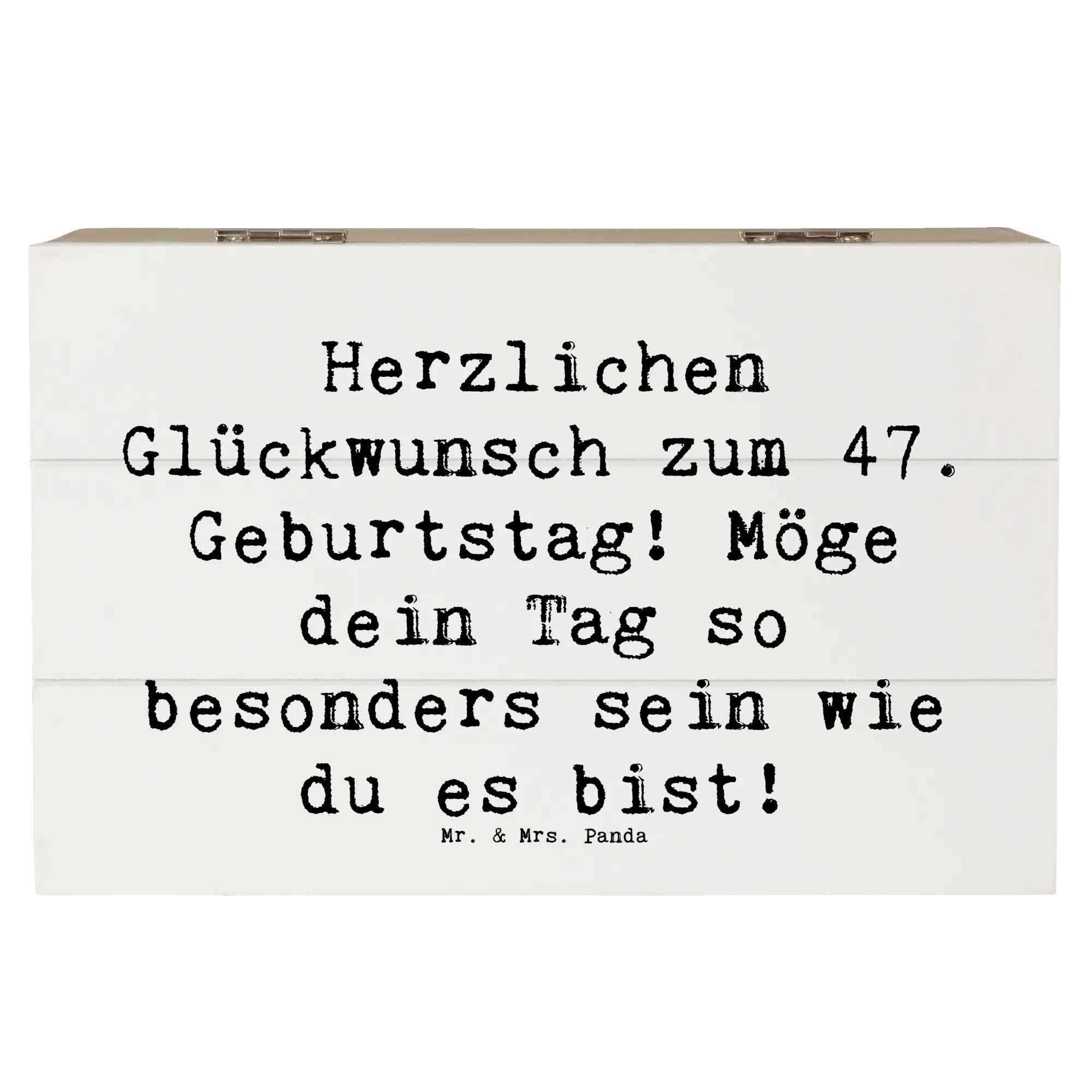 Wenn du auf der Suche nach dem perfekten Geschenk zum 47. Geburtstag bist, dann ist die wunderschöne Holzkiste von Mr. & Mrs. Panda genau das richtige! Mit ihrem liebevollen Design und dem herzlichen Spruch "Herzlichen Glückwunsch zum 47. Geburtstag! Möge dein Tag so besonders sein wie du es bist!" wird dieses Geschenk garantiert zum Hingucker.