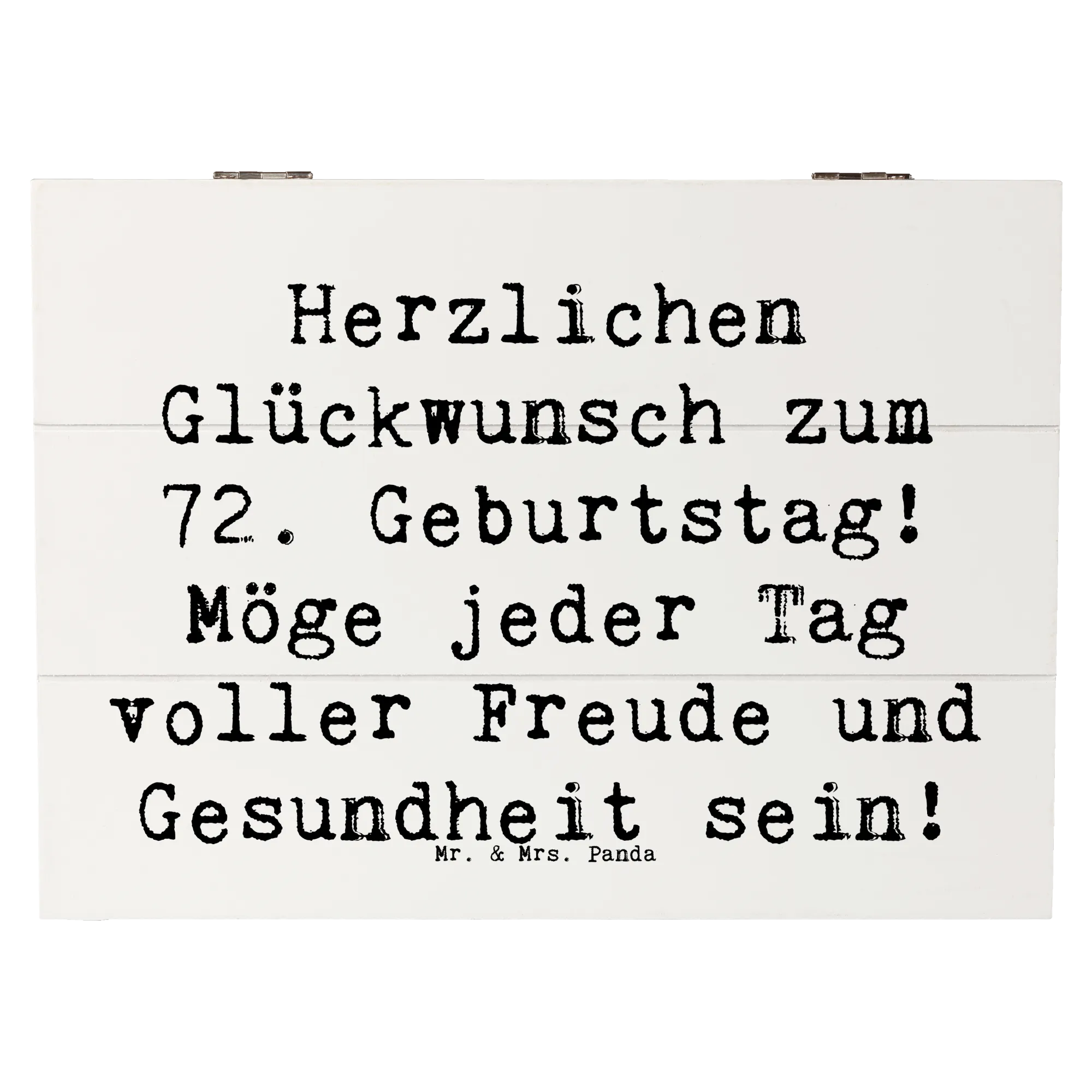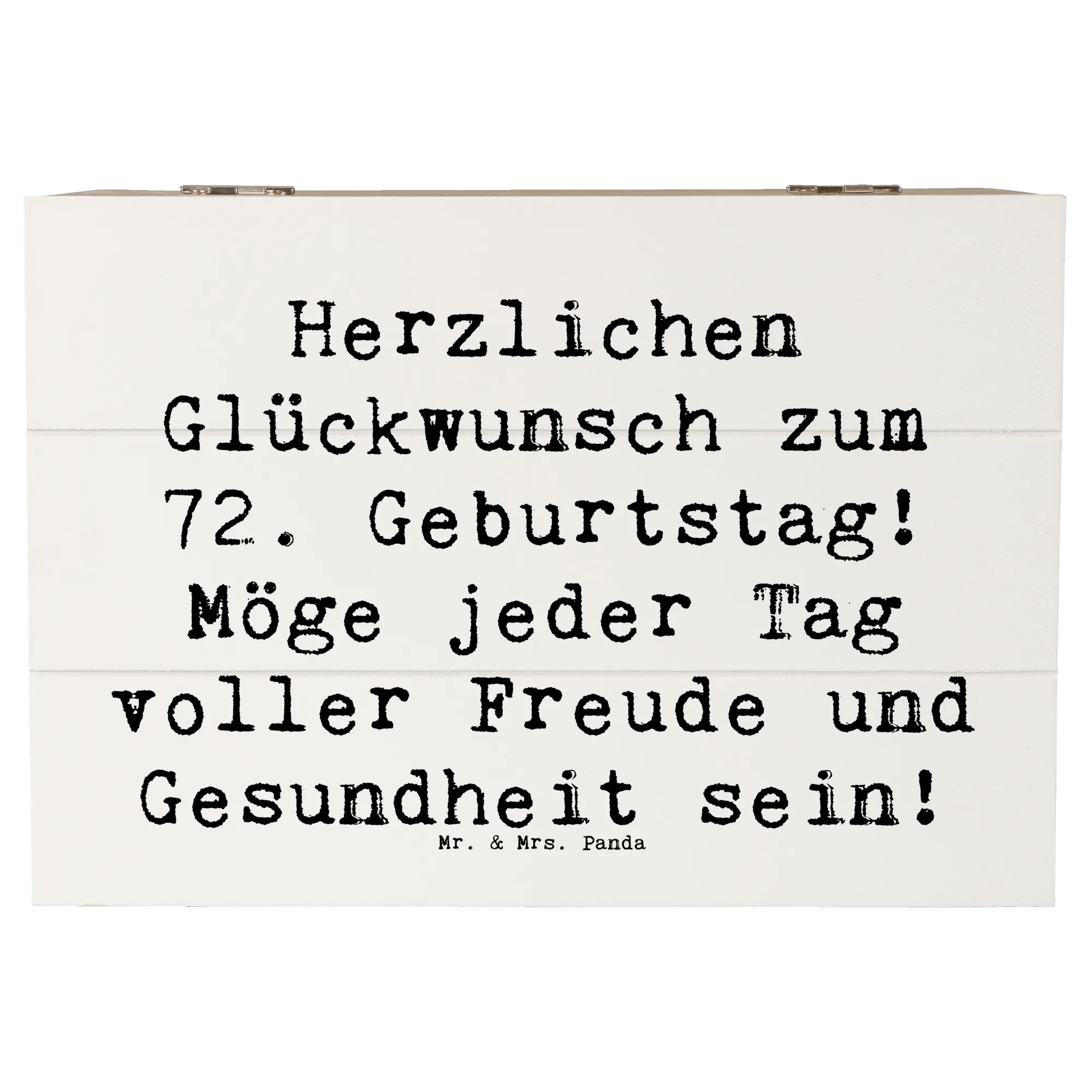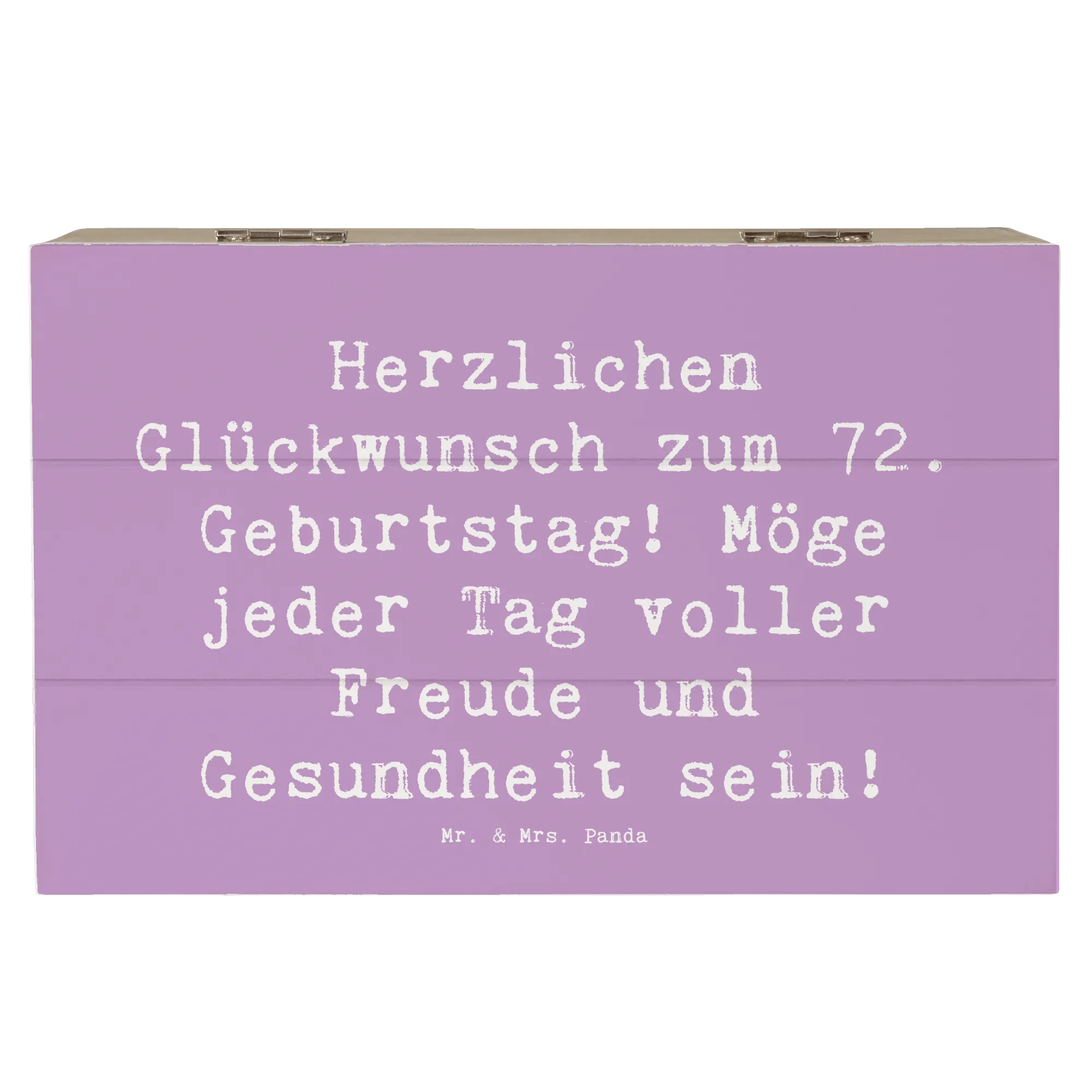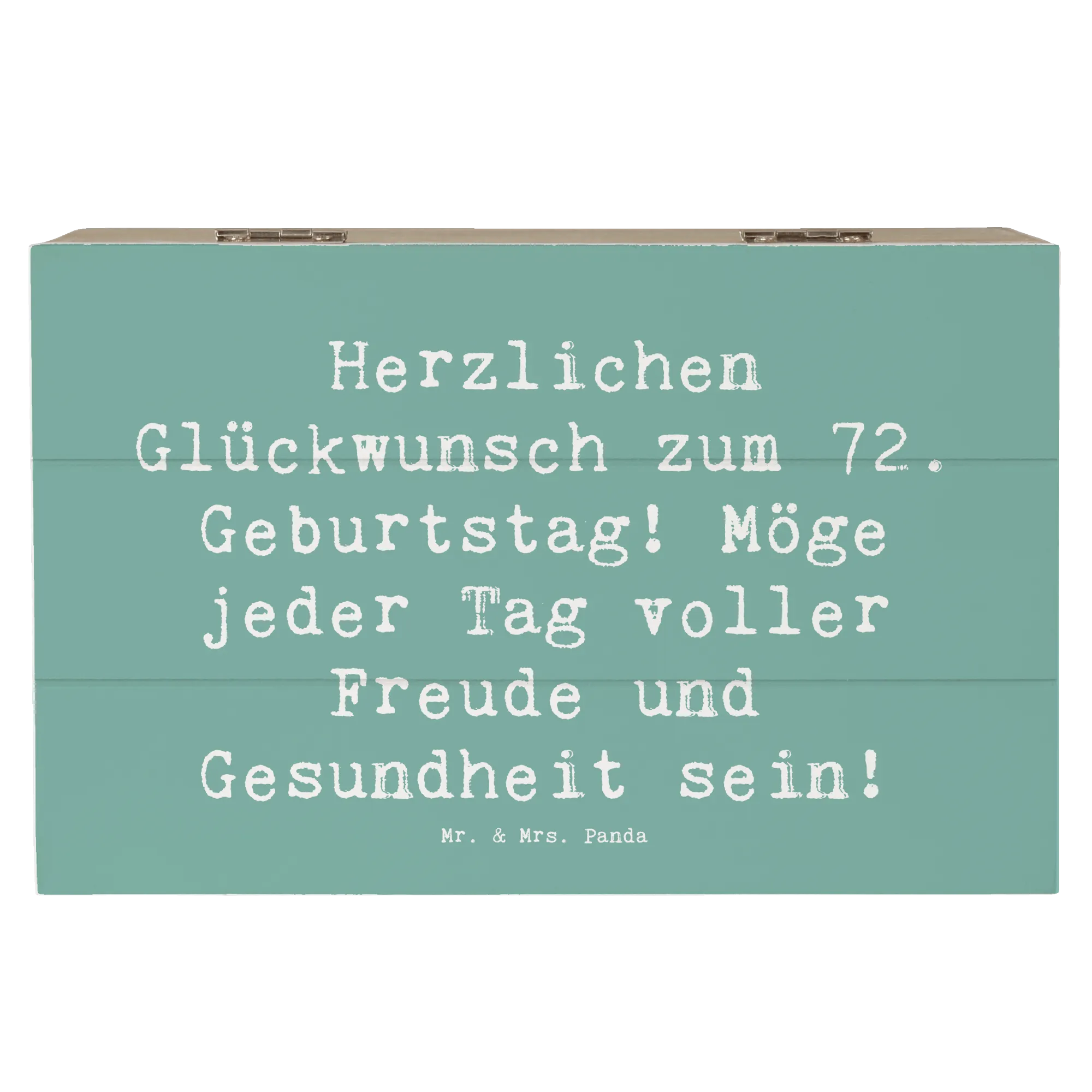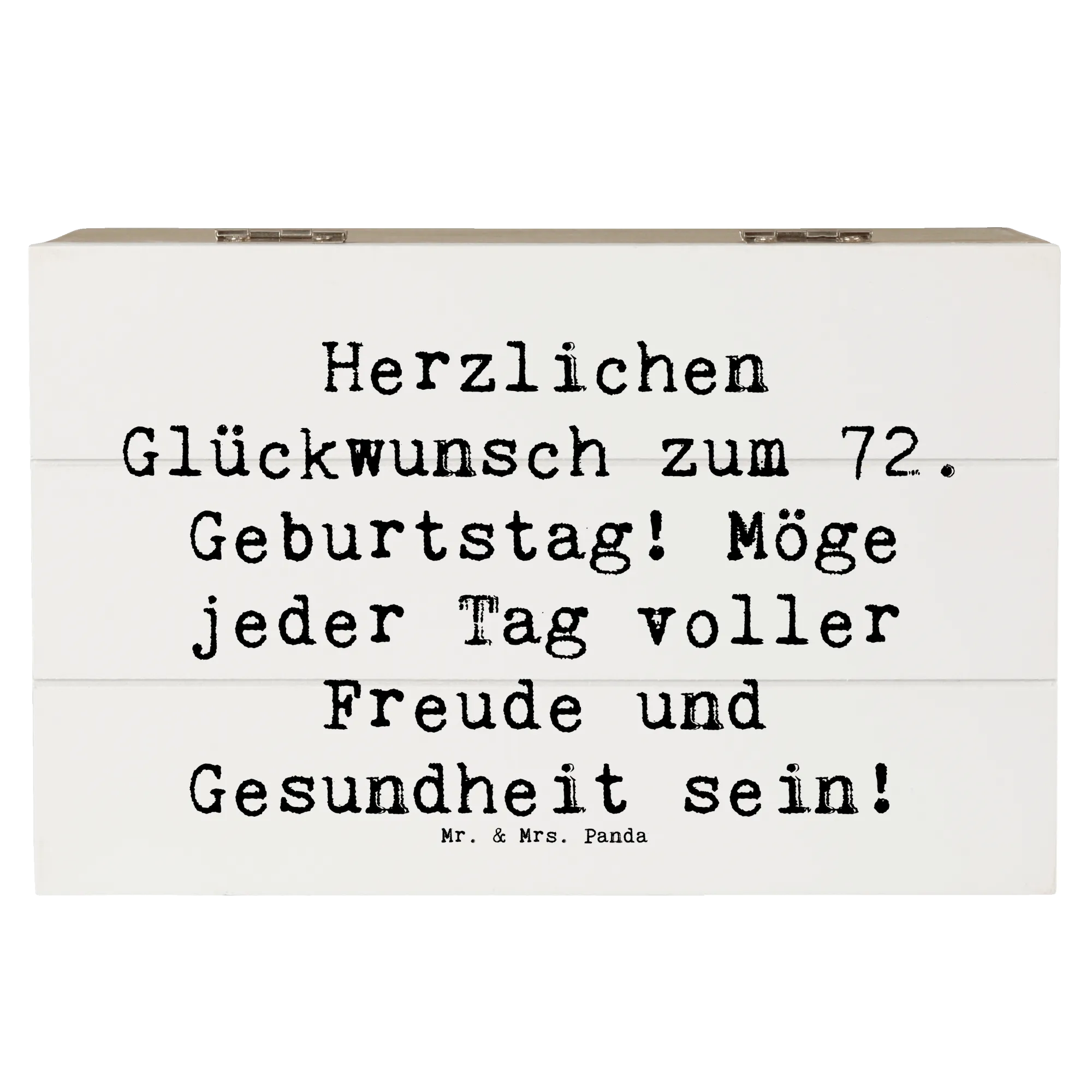 Die Geburtstagskollektion von Mr. & Mrs. Panda ist bekannt für die liebevollen Motive und Sprüche, die jeden Anlass besonders machen. Überrasche damit deine Liebsten, egal ob sie 72 Jahre jung sind oder ein anderes Jubiläum feiern! Entdecke die Freude des Schenkens und schaffe Erinnerungen, die für immer bleiben. Diese Holzkiste eignet sich hervorragend für einen feierlichen Rahmen oder zum persönlichen Behalten als Schätze deines Lebens. Sie ist eine wunderbare Geschenkidee und wird sicherlich von Herzen geschätzt werden.
