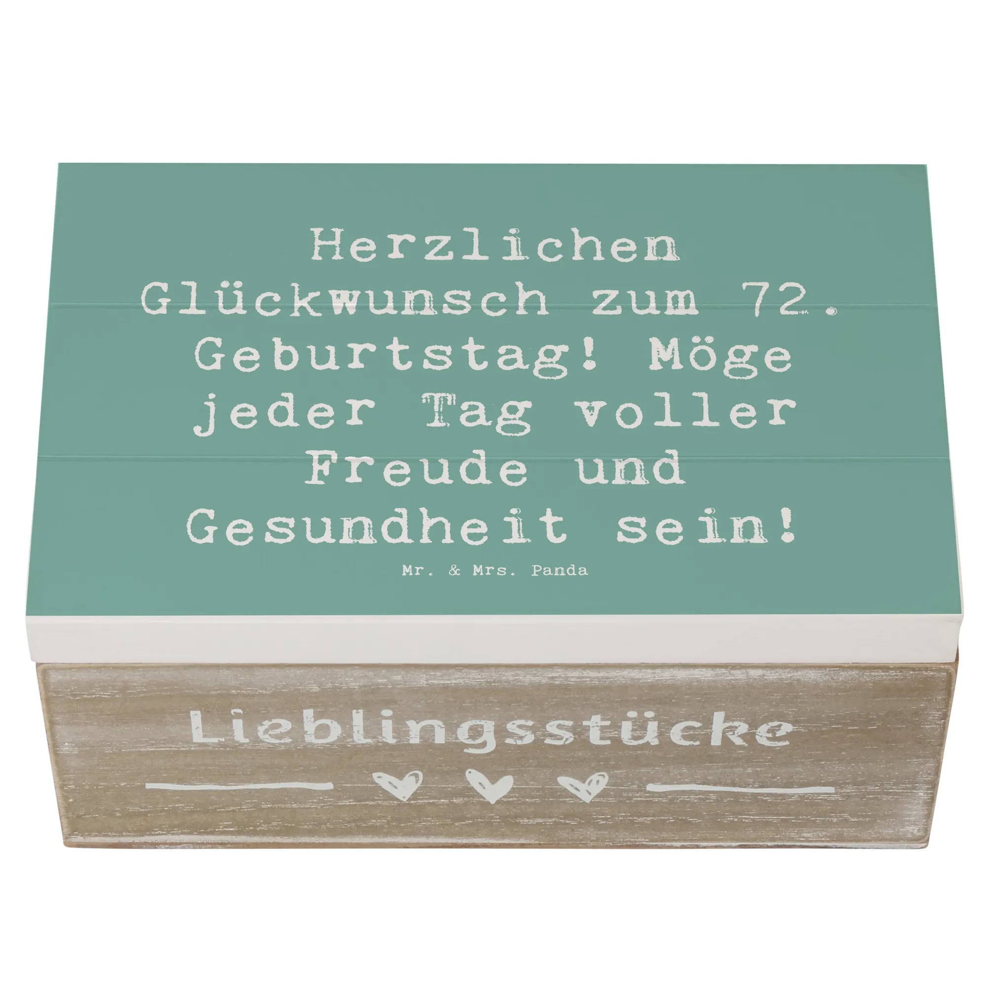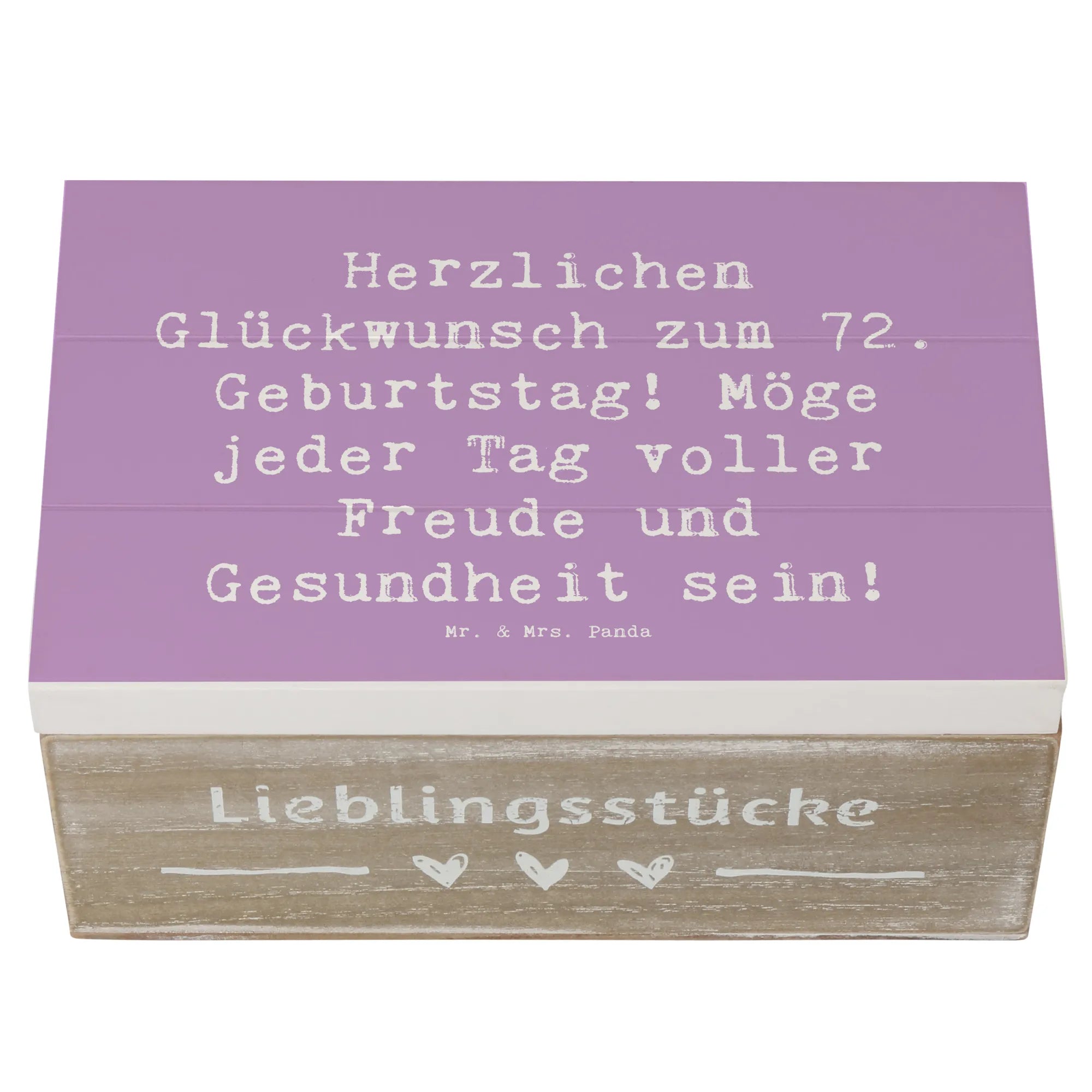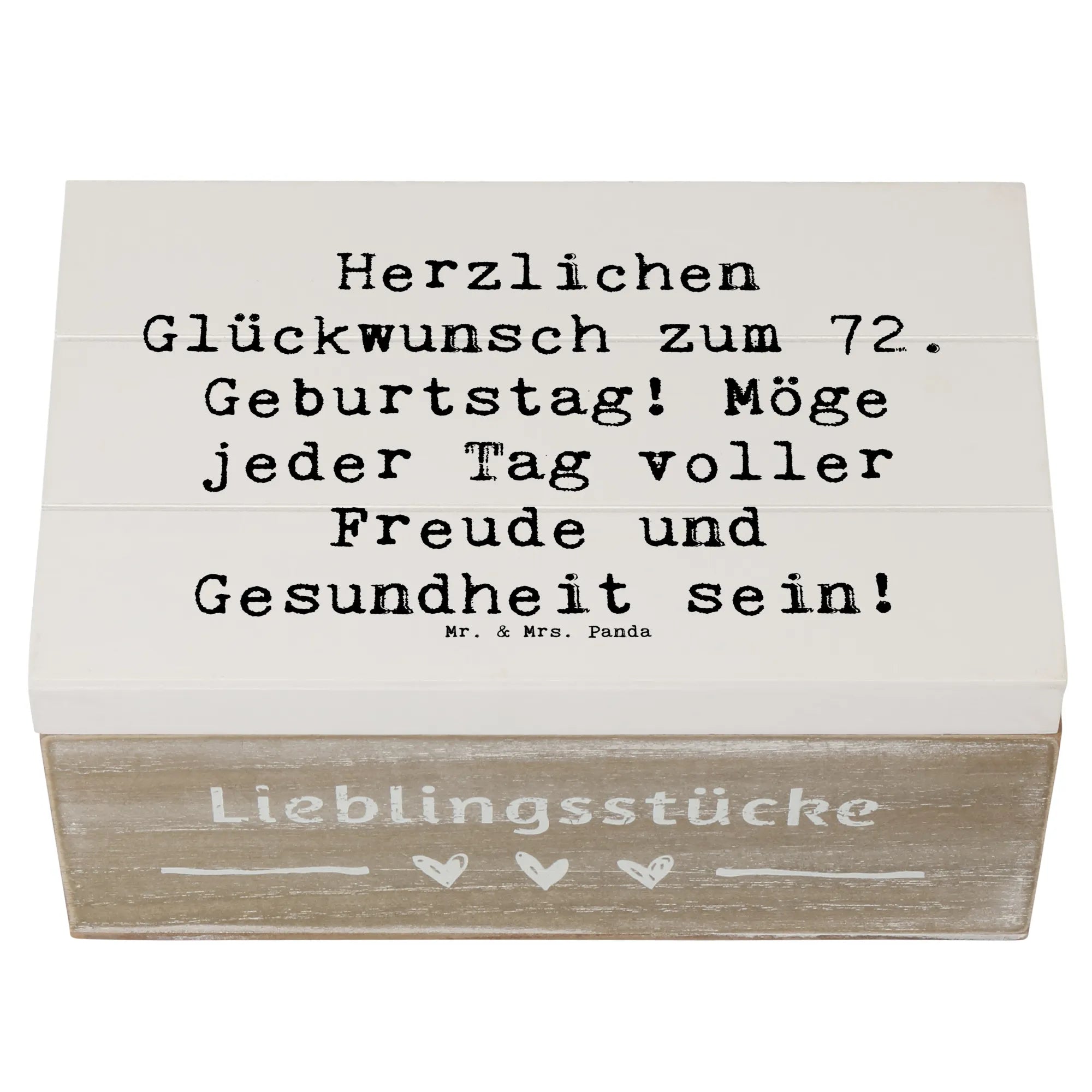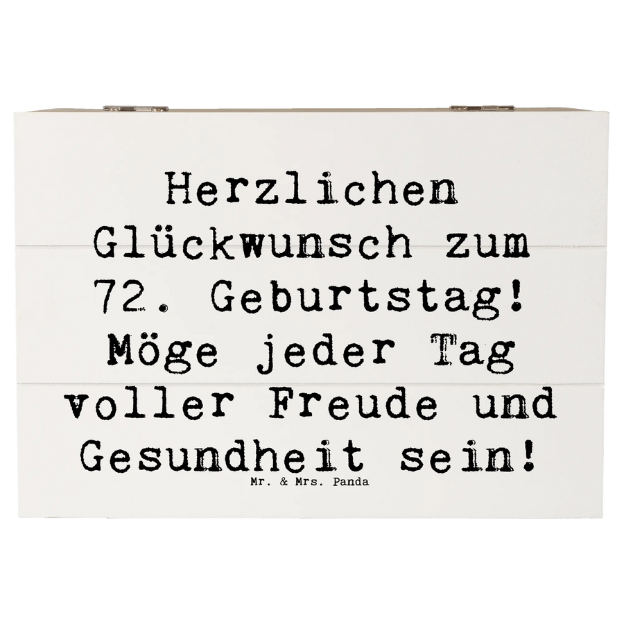 Die bezaubernde Holzkiste von Mr. & Mrs. Panda ist das perfekte Geschenk zum 72. Geburtstag! Mit dem liebevollen Slogan 'Herzlichen Glückwunsch zum 72. Geburtstag! Möge jeder Tag voller Freude und Gesundheit sein!' wird diese Erinnerungskiste zu einem ganz besonderen Aufbewahrungsort für die schönsten Schätze des Lebens.