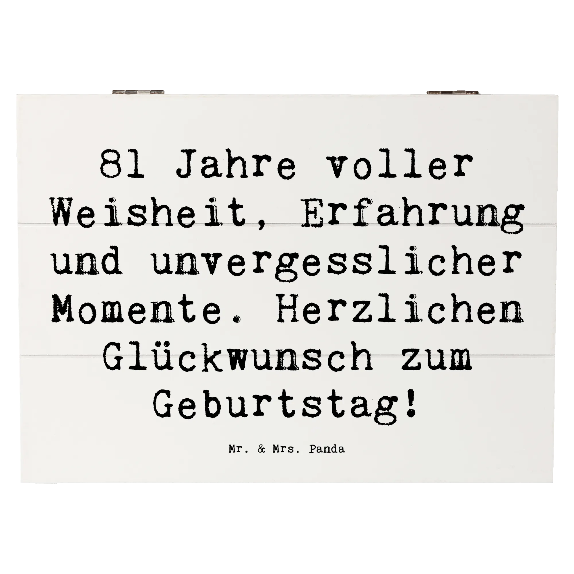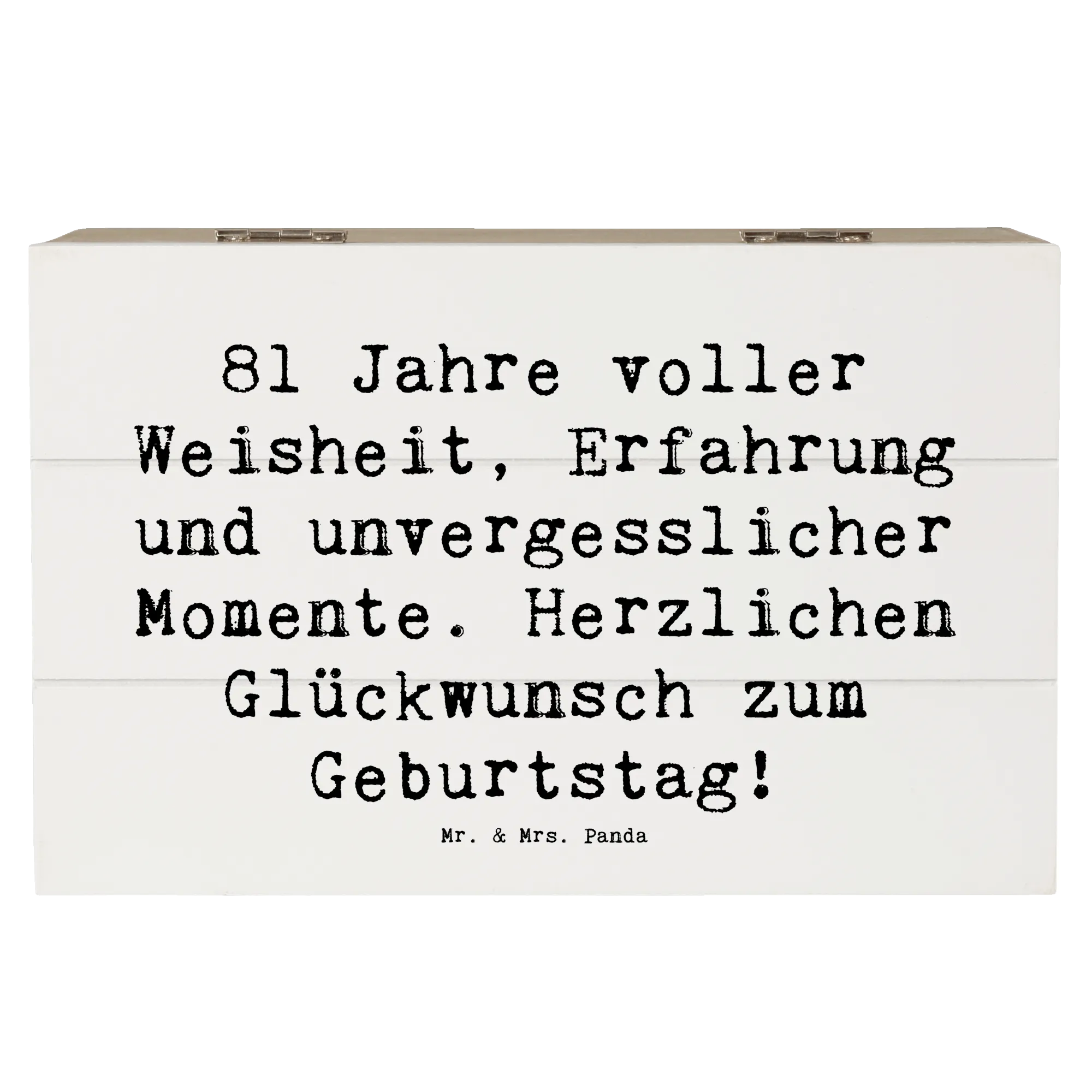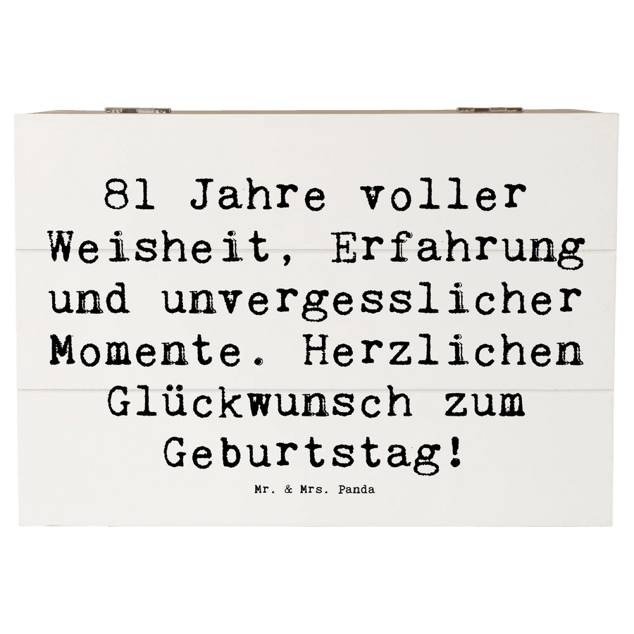 Die wunderschöne Holzkiste von Mr. & Mrs. Panda ist das perfekte Geschenk zum 81. Geburtstag! Sie ist nicht nur ein stilvolles Aufbewahrungsobjekt, sondern auch eine Schatzkiste voller Erinnerungen. Mit dem liebevoll gestalteten Motiv "81 Jahre voller Weisheit, Erfahrung und unvergesslicher Momente. Herzlichen Glückwunsch zum Geburtstag!" ist diese Erinnerungskiste ein ganz besonderes Geschenk, das von Herzen kommt.