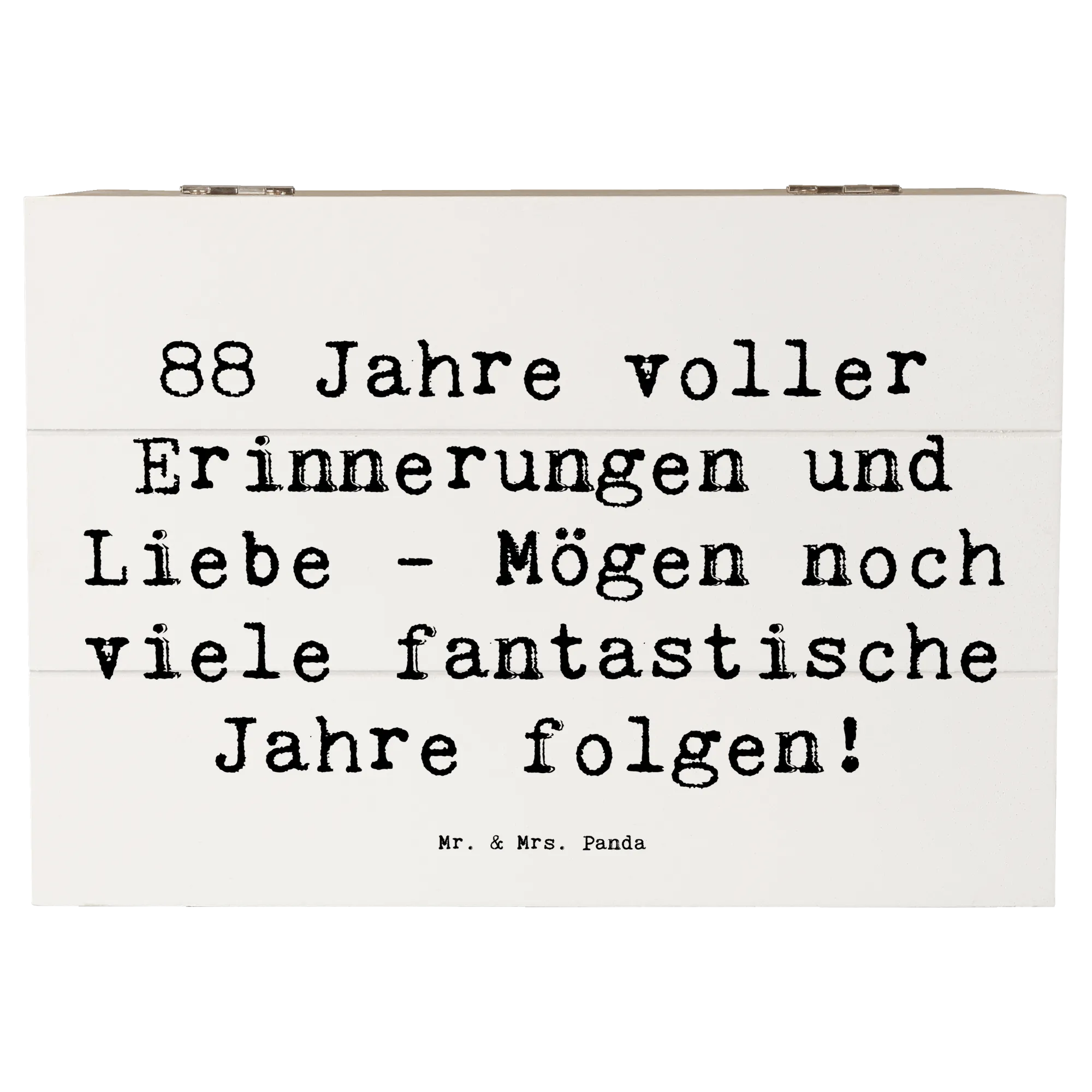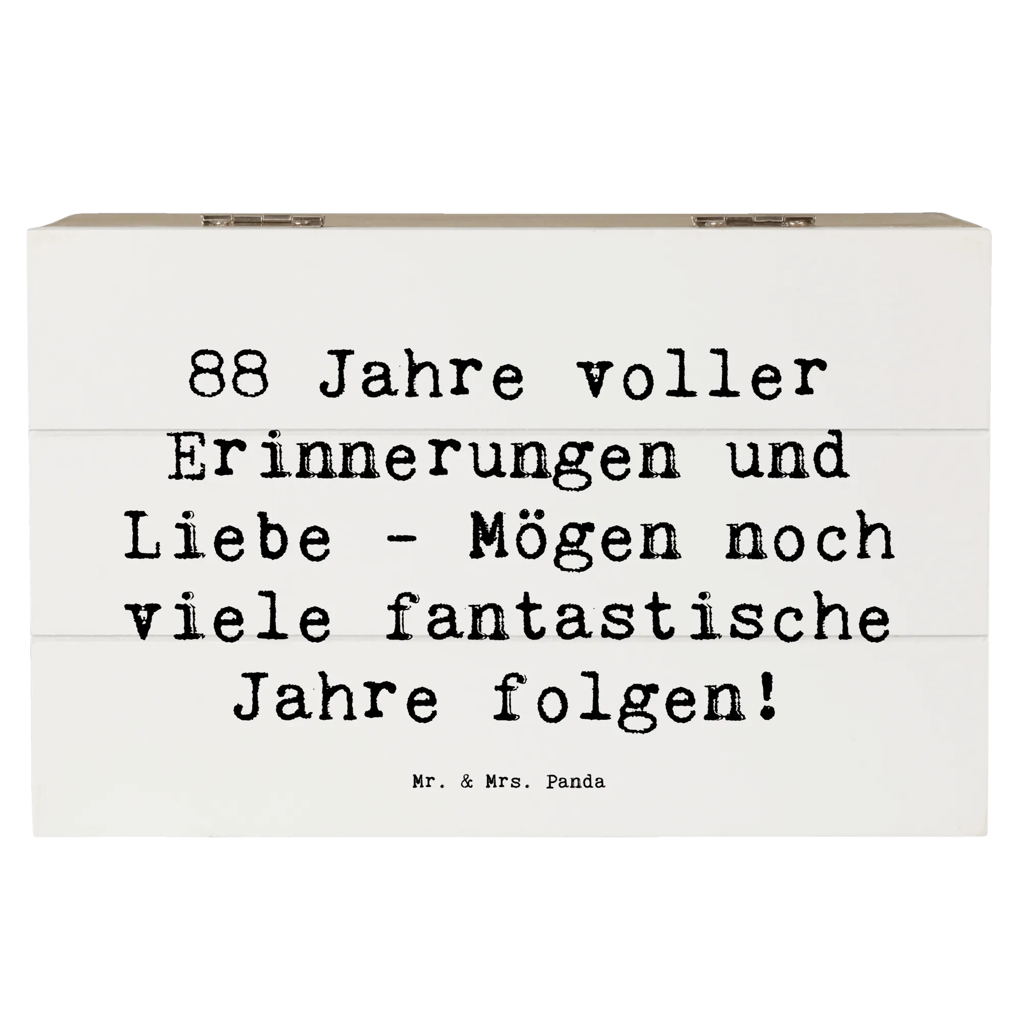 Lass dich von der Lebensfreude und dem Charme von Mr. & Mrs. Panda anstecken und mache den 88. Geburtstag zu einem unvergesslichen Erlebnis! Bei uns findest du nicht nur die perfekte Geschenkbox, sondern auch viele weitere kreative Ideen, um deinen Lieben eine Freude zu bereiten. Diese Holzkiste aus der Kollektion Geburtstag Alter ist ein Must-Have für jeden Geburtstag!