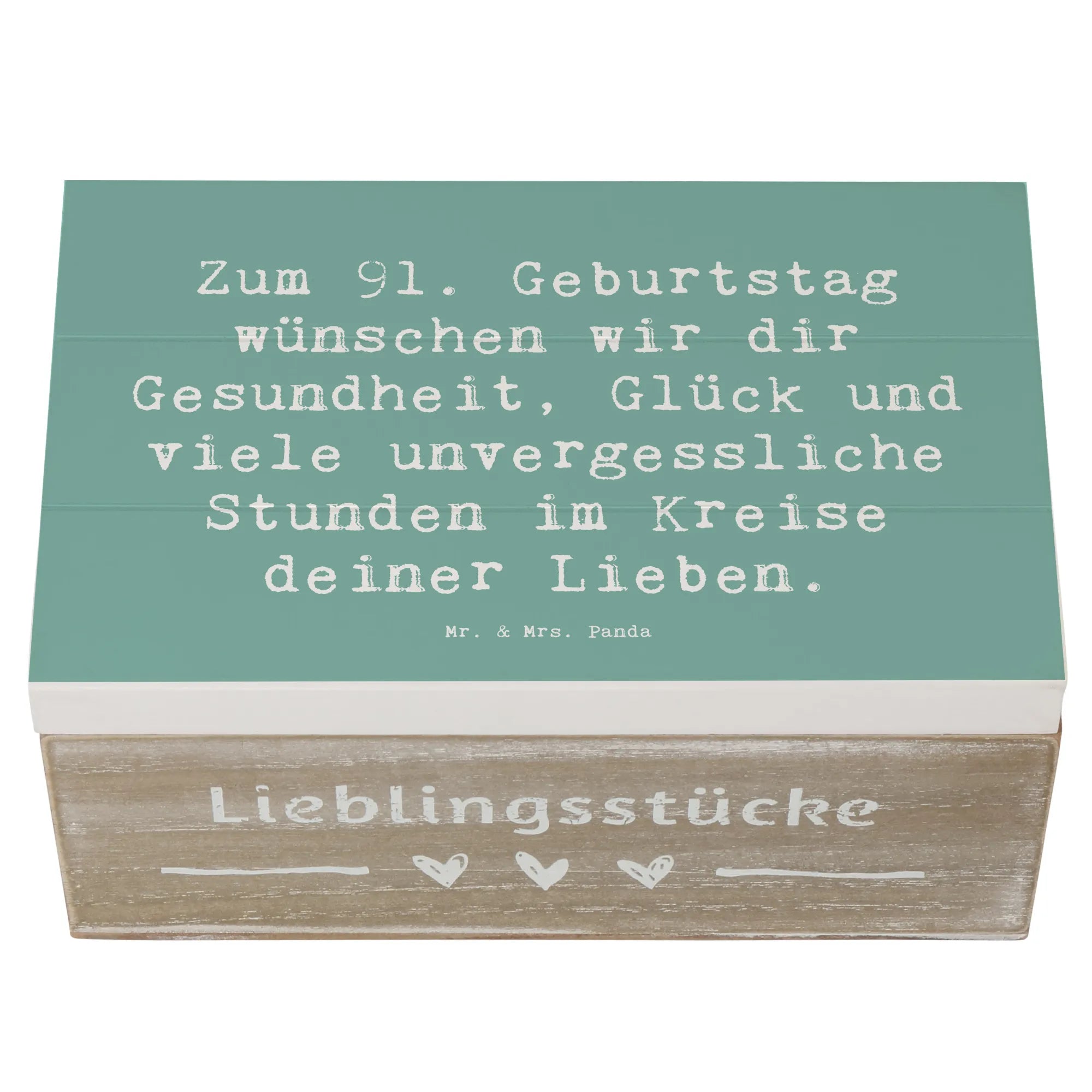 Die wunderschöne Holzkiste von Mr. & Mrs. Panda ist das perfekte Geschenk zum 91. Geburtstag! Diese entzückende Erinnerungskiste ist nicht nur ein Blickfang, sondern auch der ideale Aufbewahrungsort für all die Schätze, die du in deinem Leben gesammelt hast. Ob Fotos, besondere Erinnerungen oder kleine Geschenke – alles findet in dieser stabilen und robusten Kiste einen besonderen Platz. Bedruckt mit dem herzlichen Slogan „Zum 91. Geburtstag wünschen wir dir Gesundheit, Glück und viele unvergessliche Stunden im Kreise deiner Lieben“ strahlt die Kiste eine liebevolle Atmosphäre aus, die jeden Geburtstagsfeierlichkeiten einen Hauch von Magie verleiht.