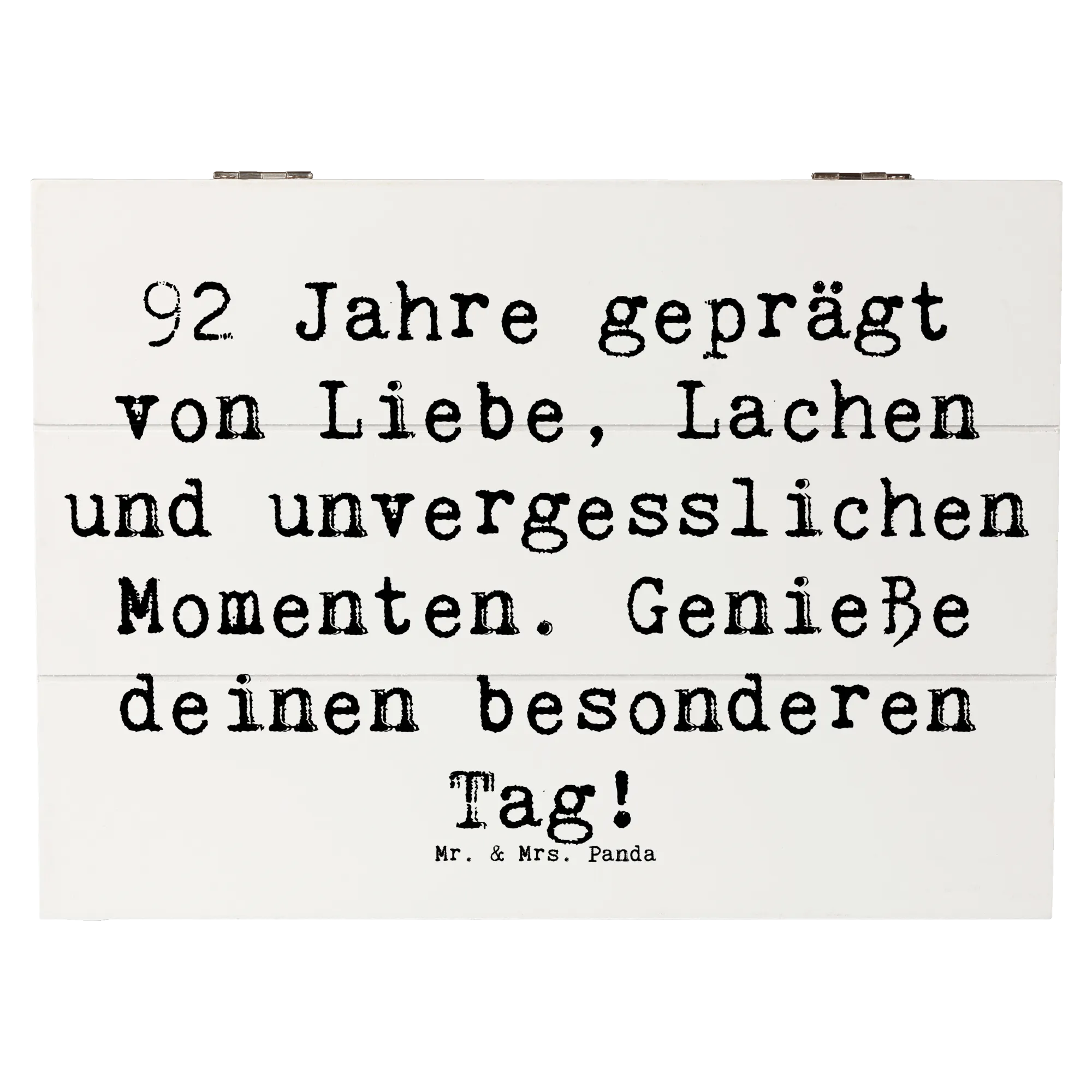 Die wunderschöne Holzkiste von Mr. & Mrs. Panda ist das perfekte Geschenk für den 92. Geburtstag. Mit ihrem liebevollen Motiv "92 Jahre geprägt von Liebe, Lachen und unvergesslichen Momenten. Genieße deinen besonderen Tag!" bietet sie einen besonderen Aufbewahrungsort für all die Schätze, die im Laufe von 92 Jahren gesammelt wurden. Ob Fotos, besondere Erinnerungen oder kleine Geschenke, diese Kiste ist ideal, um all Deine kostbaren Momente stilvoll zu bewahren. Sie ist nicht nur eine praktische Aufbewahrung, sondern auch ein wunderschönes Dekorationsstück, das jeden Raum verschönert.