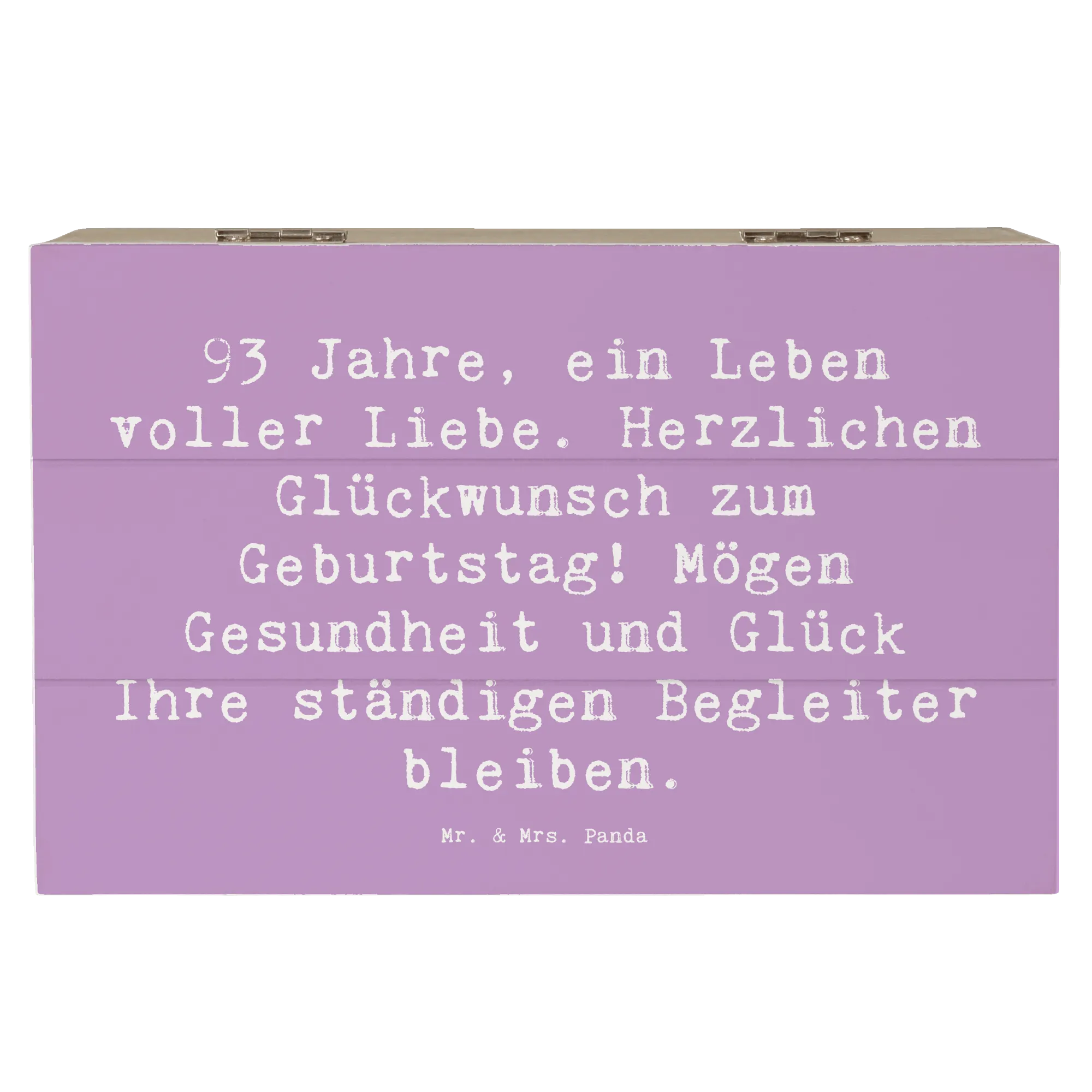 Das Design präsentiert einen herzlichen Spruch: '93 Jahre, ein Leben voller Liebe. Herzlichen Glückwunsch zum Geburtstag! Mögen Gesundheit und Glück Ihre ständigen Begleiter bleiben.' Dieser liebevolle Text macht die Kiste zum perfekten Geschenk für jemand, der diesen wundervollen Anlass feiert.