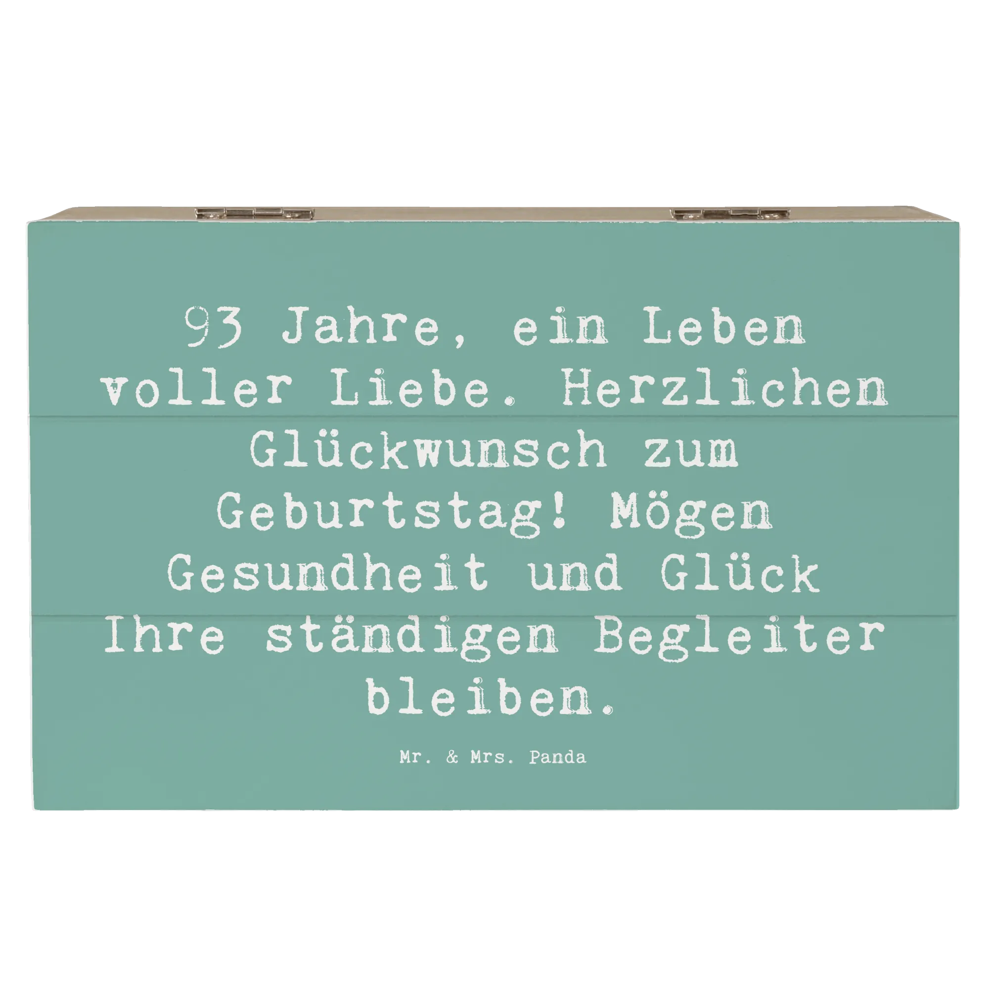 Die wunderschöne Holzkiste von Mr. & Mrs. Panda ist das perfekte Geschenk zum 93. Geburtstag. Mit dem liebevollen Slogan "93 Jahre, ein Leben voller Liebe. Herzlichen Glückwunsch zum Geburtstag! Mögen Gesundheit und Glück Ihre ständigen Begleiter bleiben." verzaubert sie jeden Jubilar.