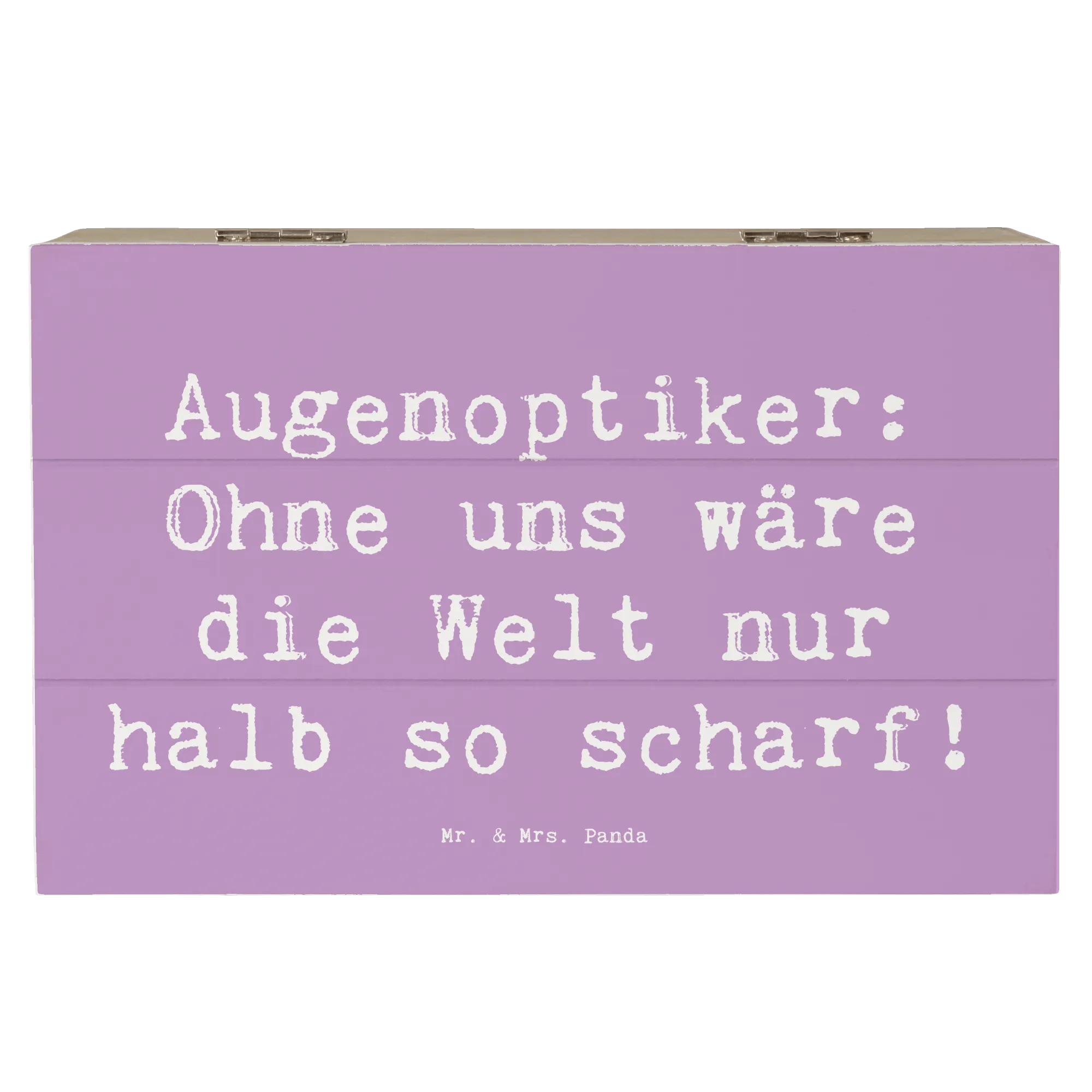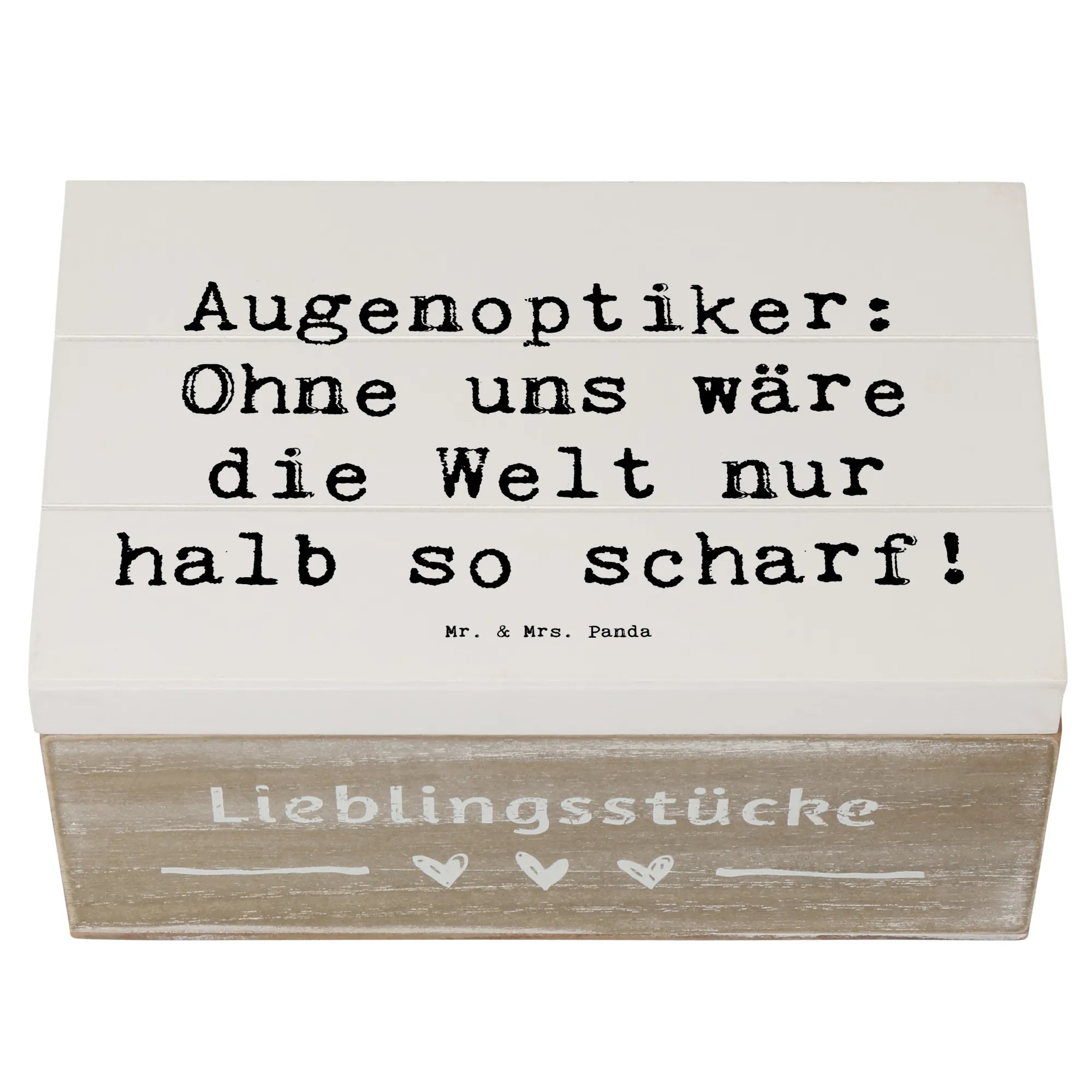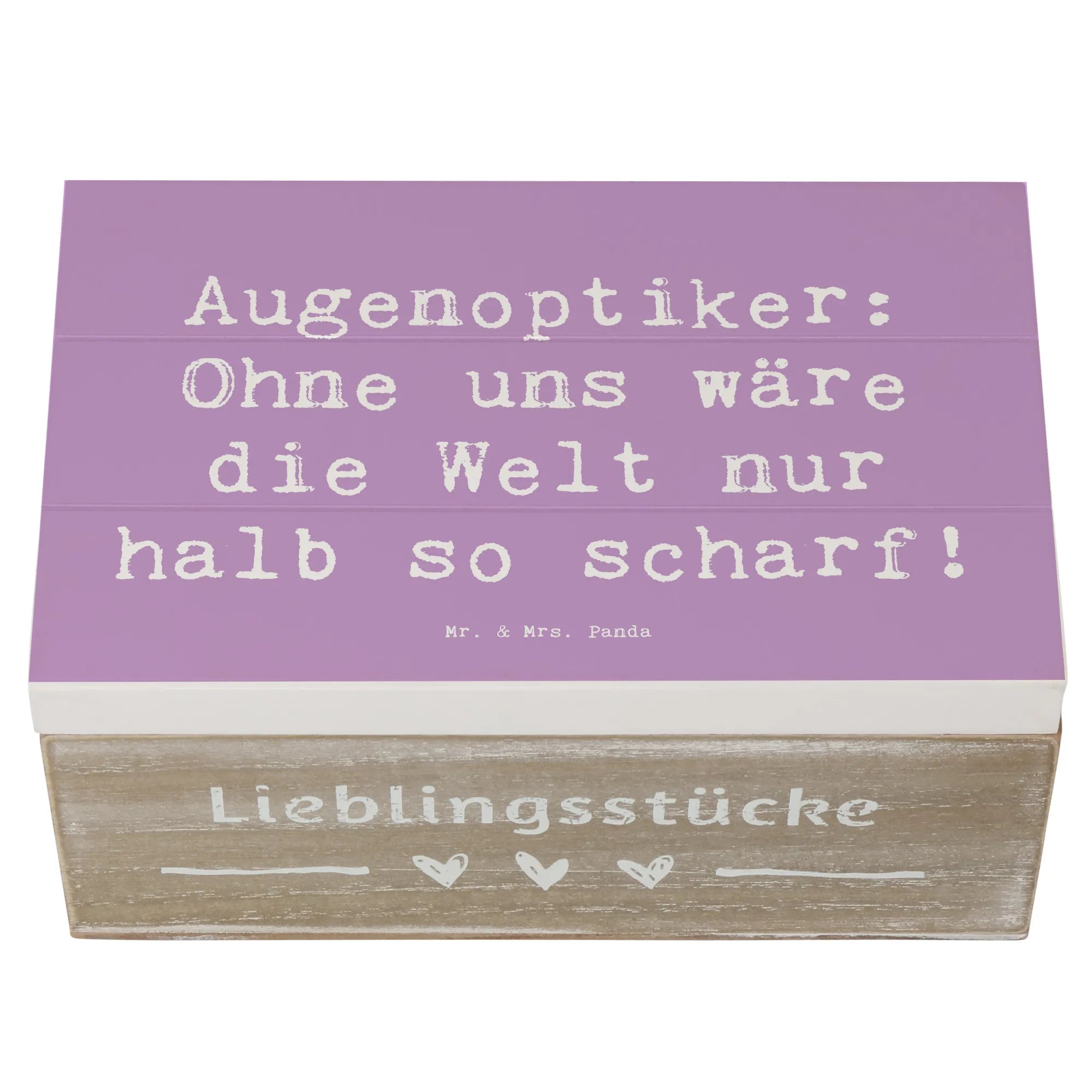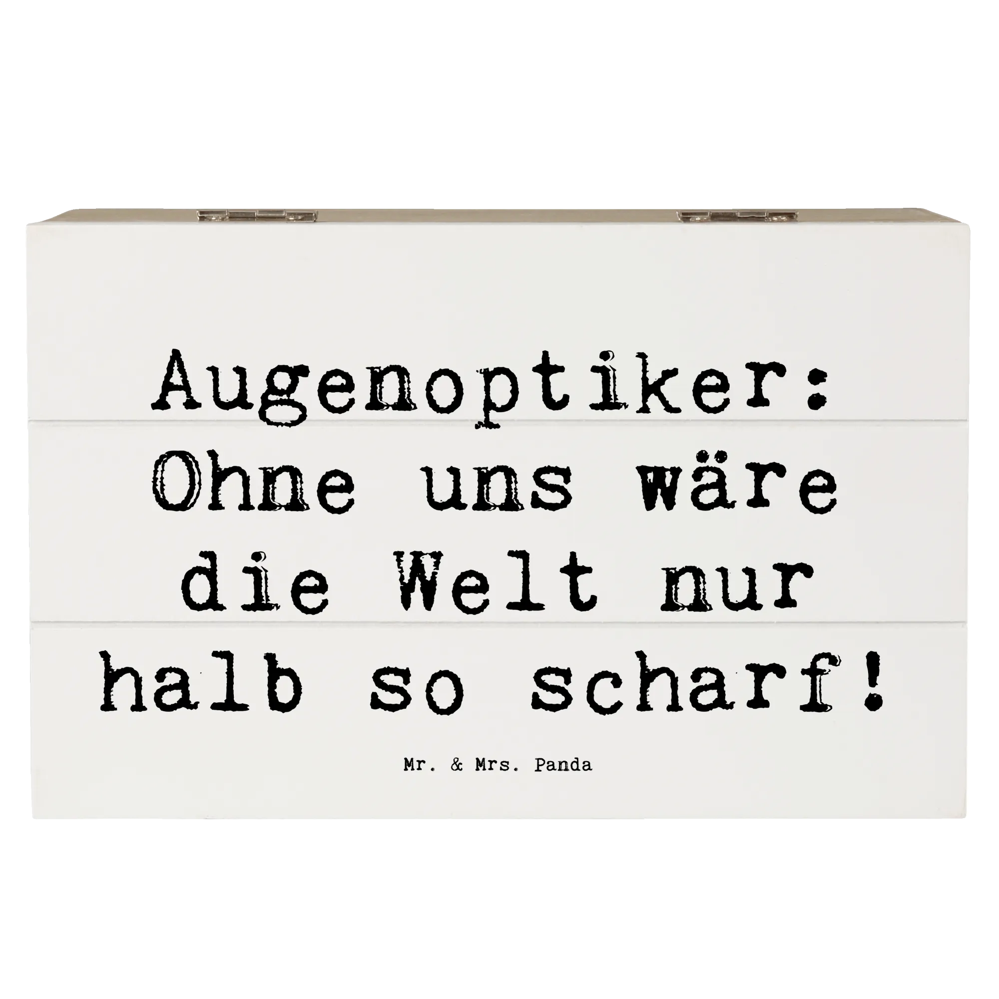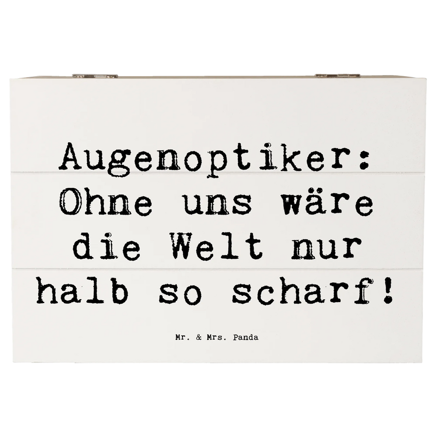Die wundervolle Holzkiste von Mr. & Mrs. Panda ist das perfekte Geschenk für Augenoptiker und solche, die es werden wollen! Mit dem humorvollen Slogan "Augenoptiker: Ohne uns wäre die Welt nur halb so scharf!" bringt diese Erinnerungskiste Freude in jeden Haushalt.