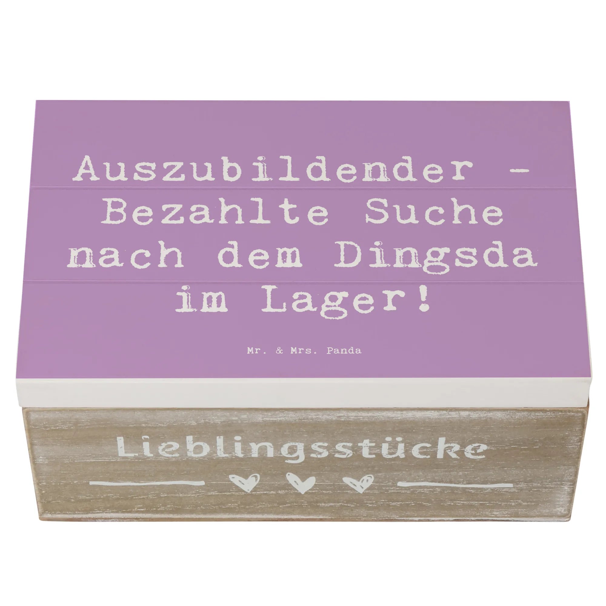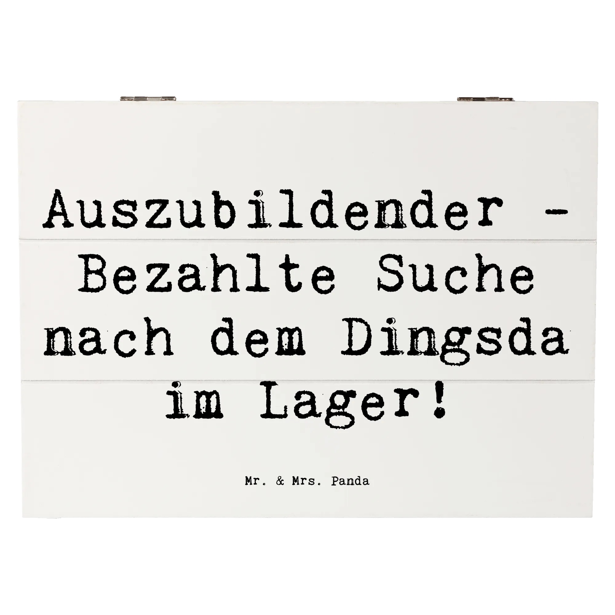 Die wunderschöne Holzkiste von Mr. & Mrs. Panda ist der perfekte Begleiter für Auszubildende und alle, die ihre Erinnerungen stilvoll aufbewahren möchten. Mit dem liebevoll gestalteten Spruch 'Auszubildender - Bezahlte Suche nach dem Dingsda im Lager!' bringt diese Kiste nicht nur ein Lächeln auf die Gesichter der Beschenkten, sondern wird auch schnell zum wertvollen Aufbewahrungsort für persönliche Schätze, wichtige Dokumente oder Erinnerungen an die Ausbildung. Diese Kiste ist eine ideale Geschenkidee zur Abschlussfeier, zum Berufseinstieg oder einfach als liebevolle Geste für einen besonderen Menschen in deinem Leben.
