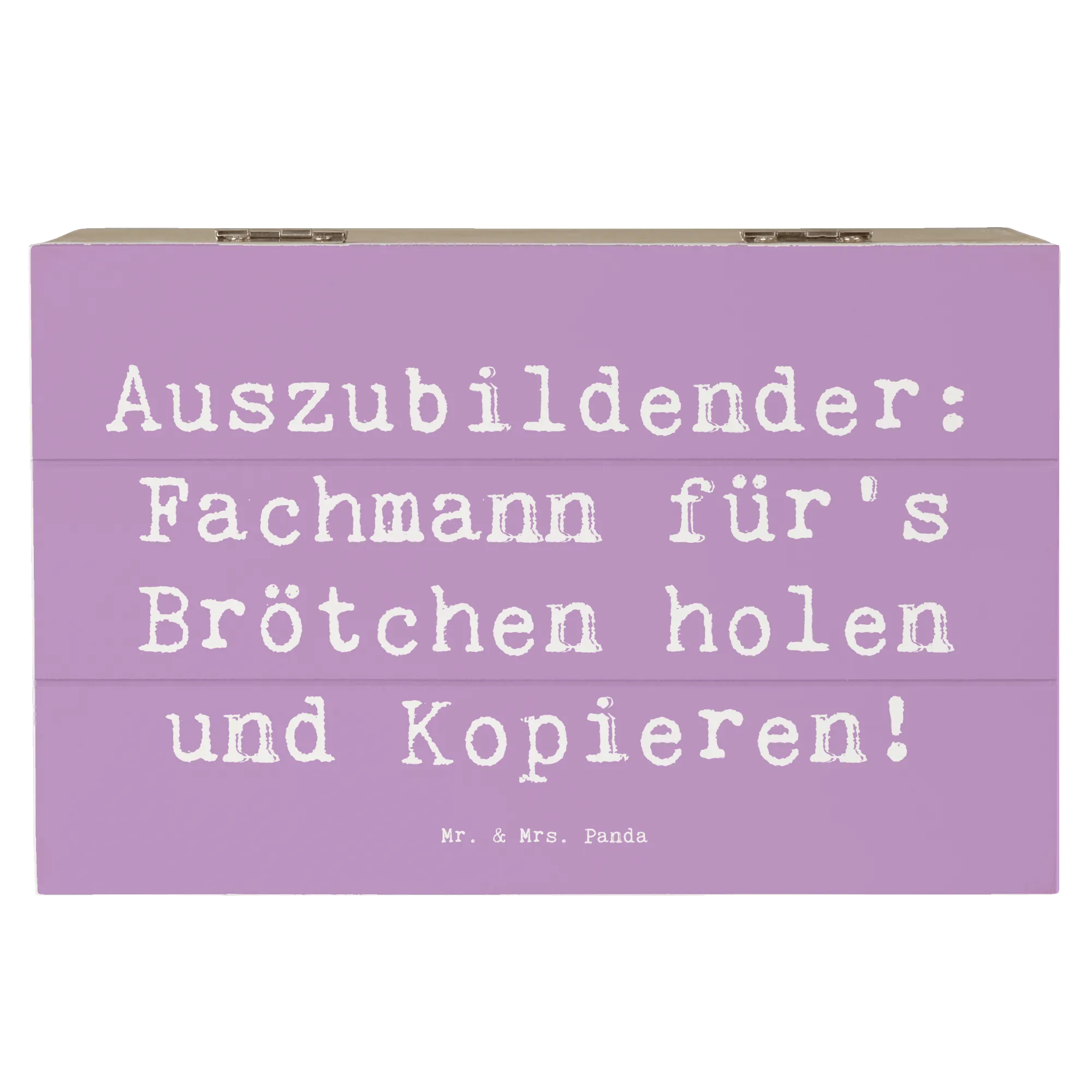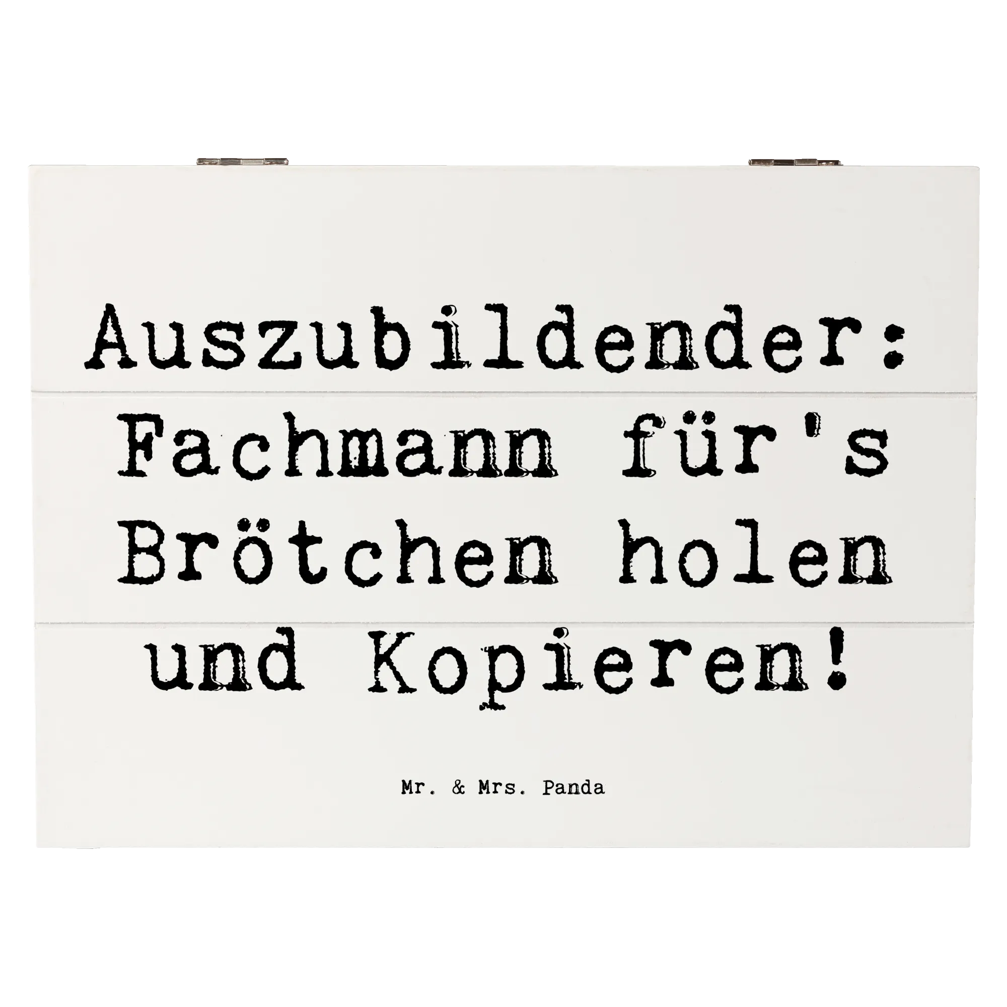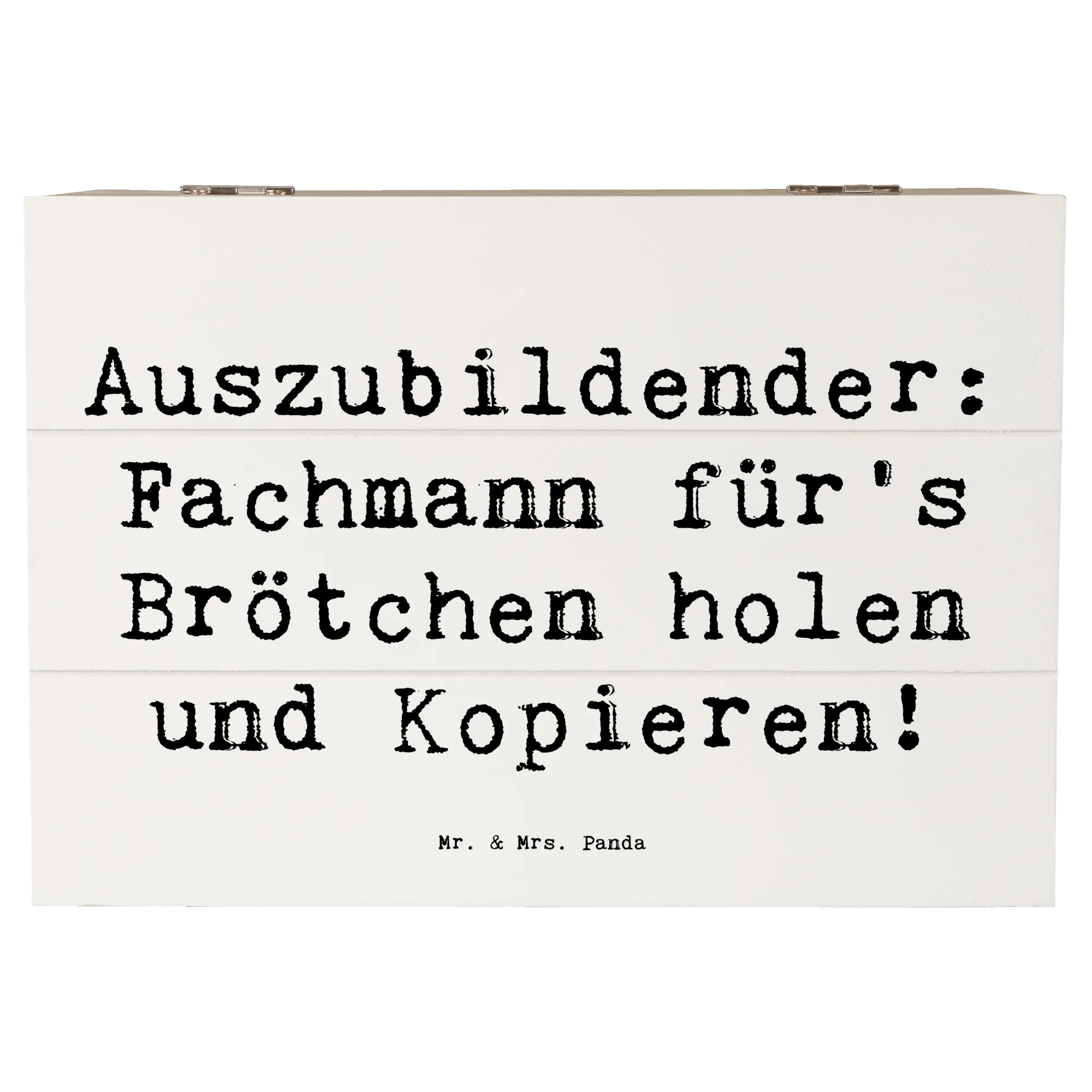 Die wunderschöne Holzkiste von Mr. & Mrs. Panda ist das perfekte Geschenk für Auszubildende! Sie ist nicht nur praktisch, sondern auch ein liebevolles Erinnerungsstück. Mit dem originellen Spruch „Auszubildender: Fachmann für's Brötchen holen und Kopieren!”, der auf hochwertigem Holzfaser-Material glänzt, wird diese Kiste zum echten Hingucker.