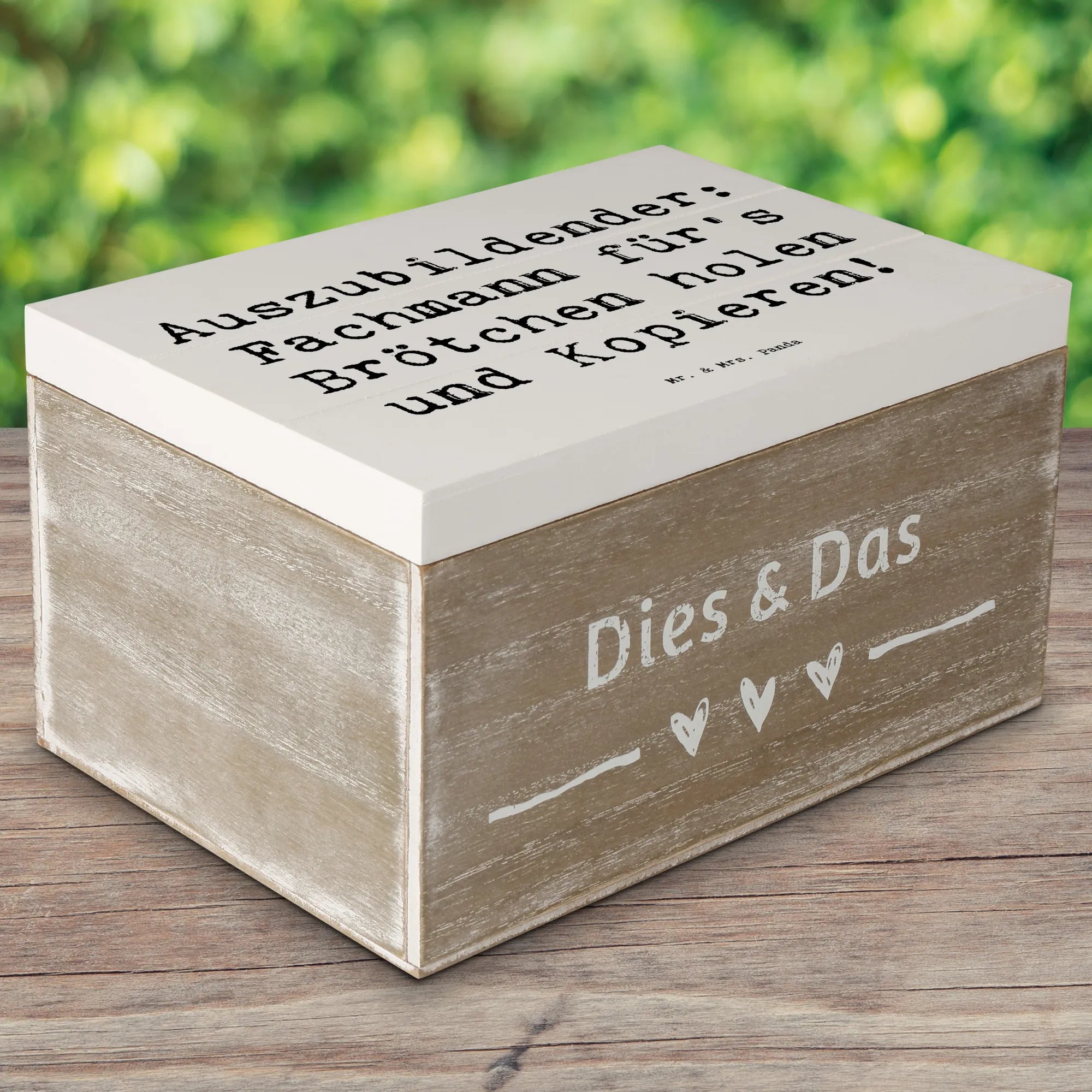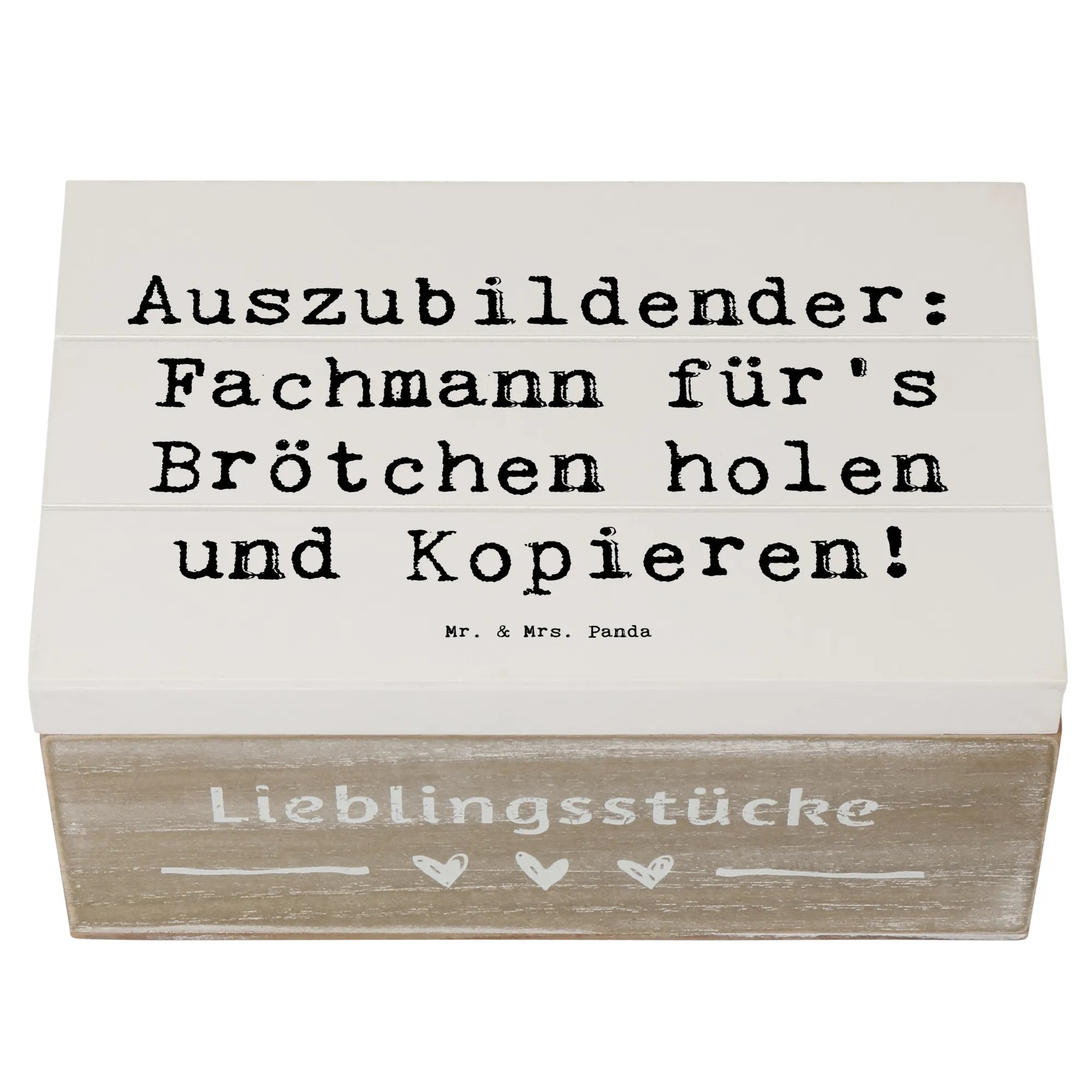 Schenke mit Herz und mache Deinem Lieblings-Auszubildenden eine Freude mit dieser einzigartigen Holzkiste von Mr. & Mrs. Panda!
