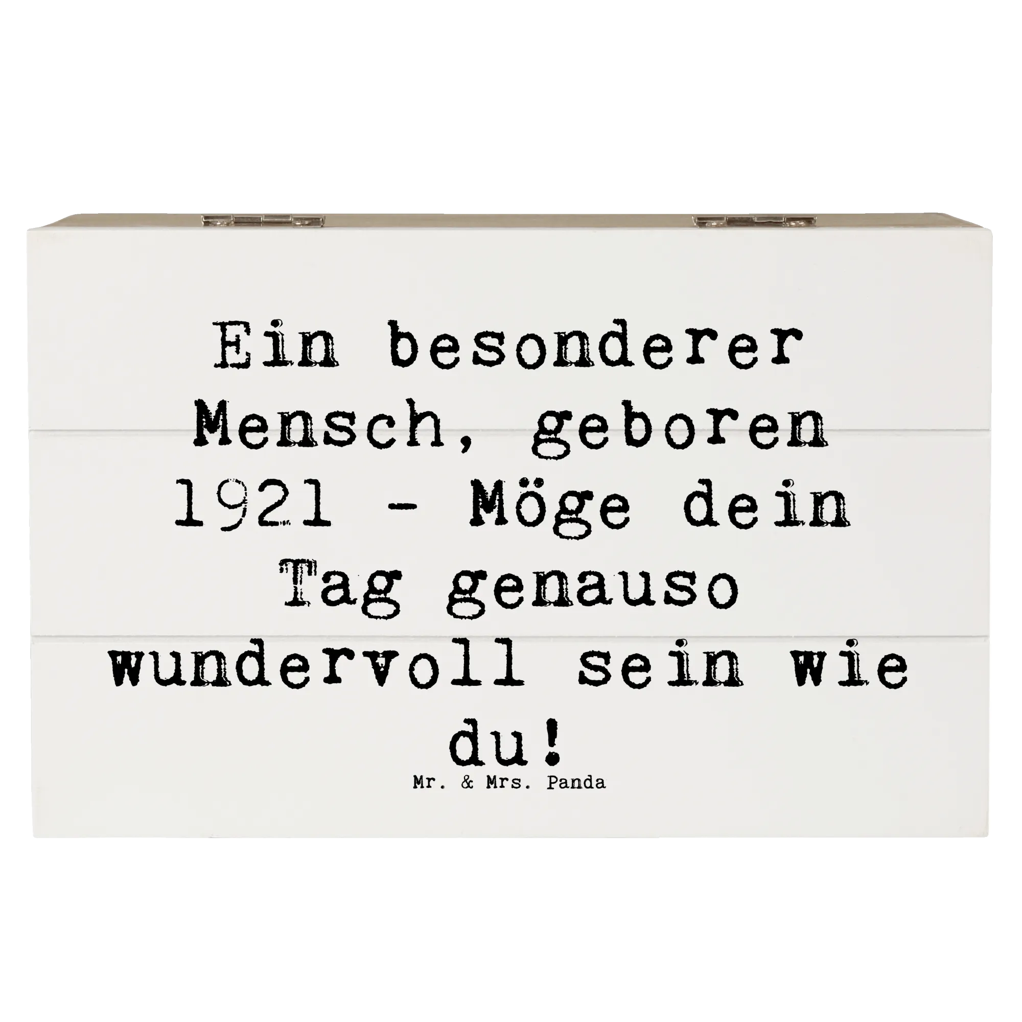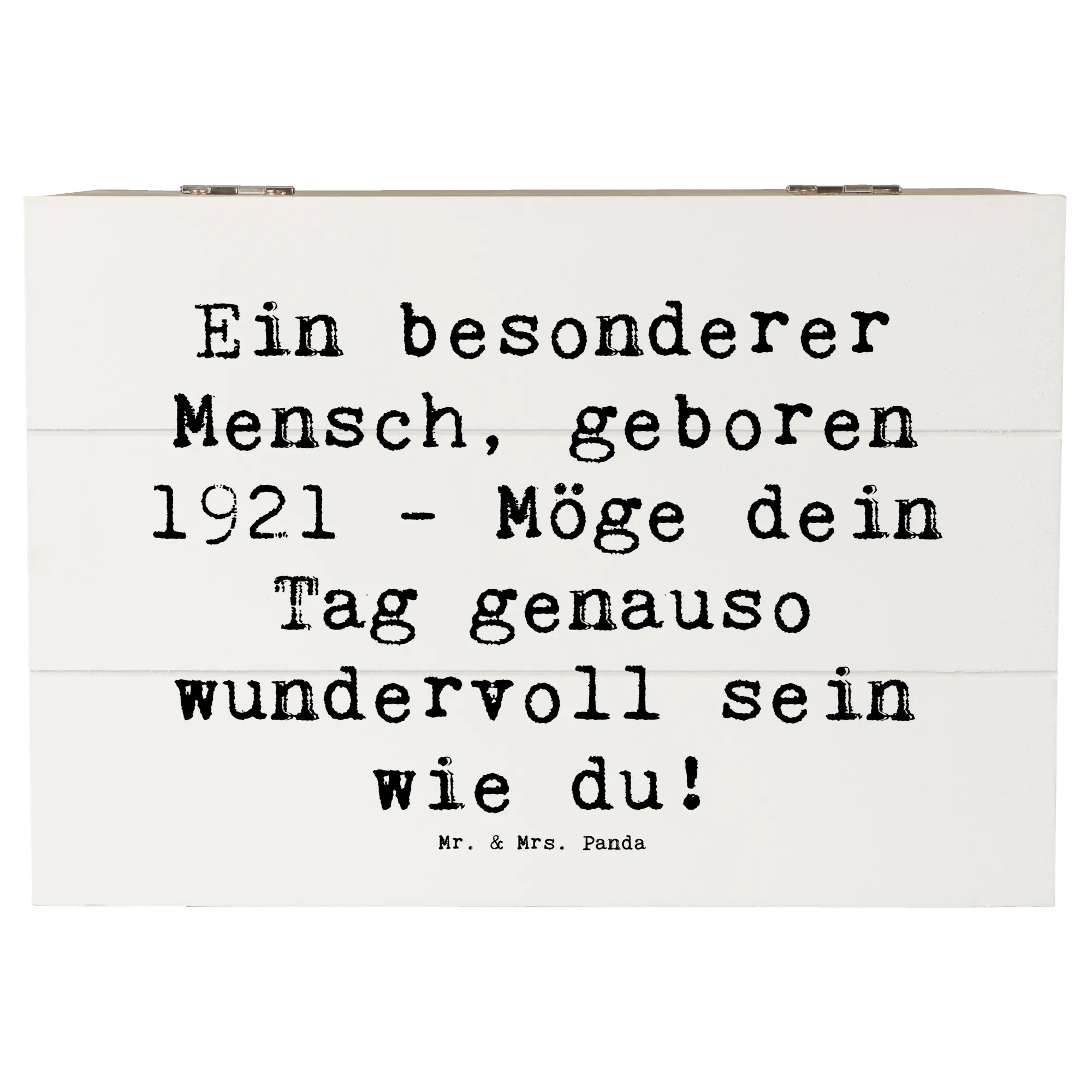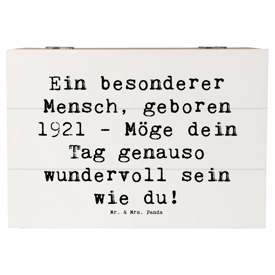 Entdecke die zauberhafte Holzkiste von Mr. & Mrs. Panda, die perfekt für jeden besonderen Anlass ist! Mit dem wunderschönen Motiv "1921 Geburtstag" und dem liebevollen Spruch: "Ein besonderer Mensch, geboren 1921 - Möge dein Tag genauso wundervoll sein wie du!" verwandelt diese Kiste jeden Geburtstag in ein unvergessliches Erlebnis.