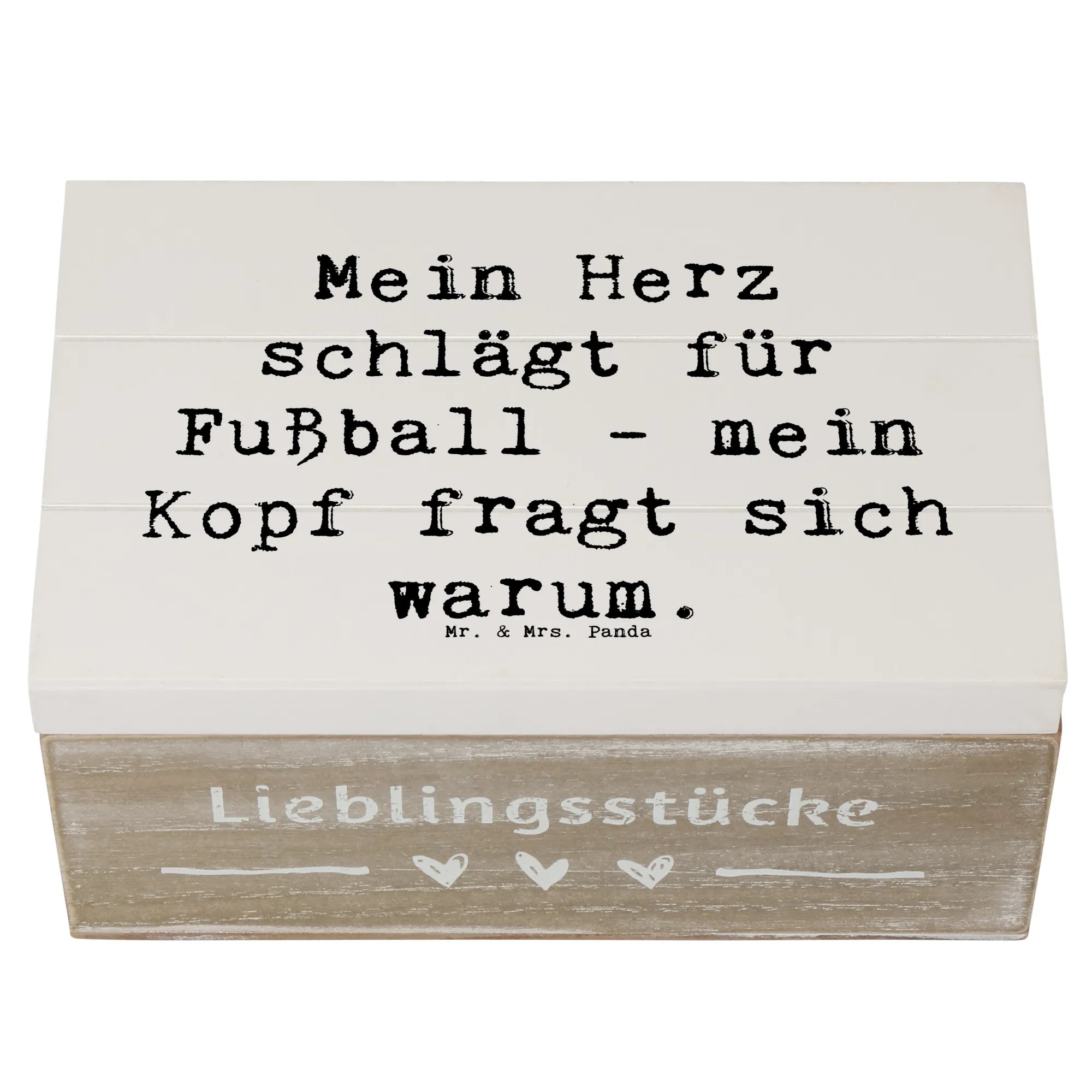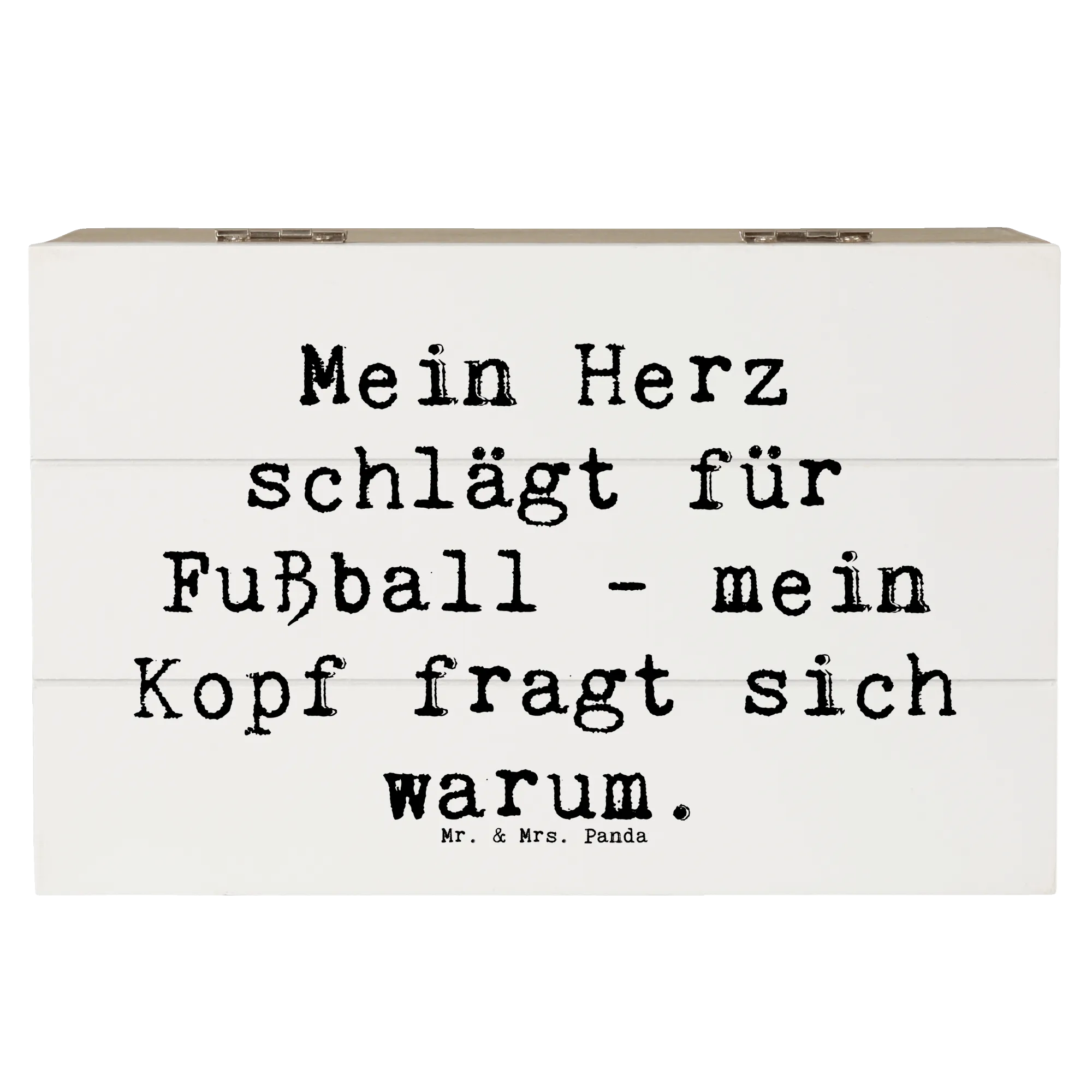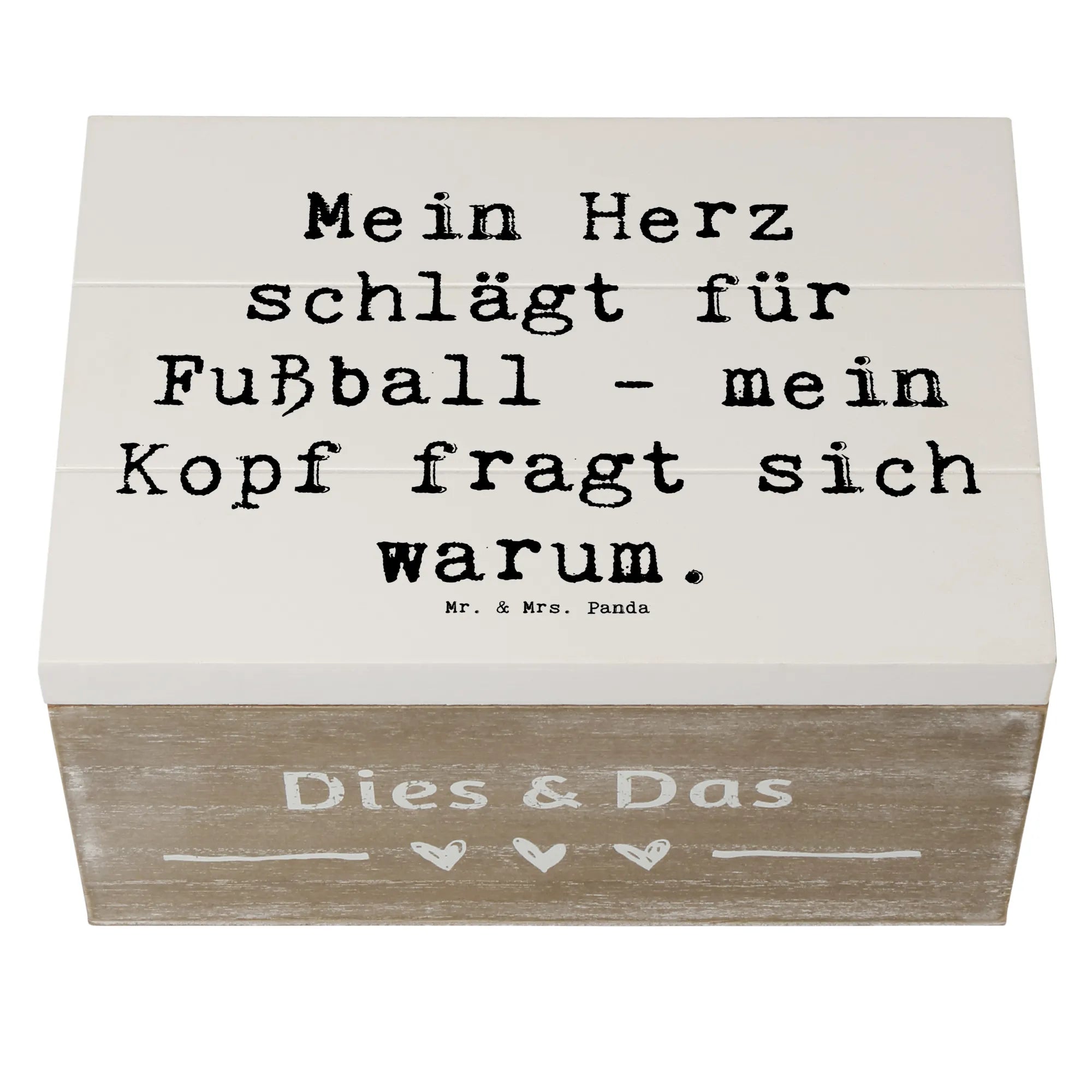 Entdecke die zauberhafte Holzkiste von Mr. & Mrs. Panda, die sich perfekt für alle Fußballliebhaber eignet! Diese wunderschöne Erinnerungskiste, bedruckt mit dem witzigen Spruch "Mein Herz schlägt für Fußball - mein Kopf fragt sich warum", ist nicht nur ein echter Blickfang, sondern auch unglaublich praktisch. Ob für dich selbst oder als Geschenk für Freunde, Familie oder Teamkollegen – diese Kiste macht immer eine gute Figur.