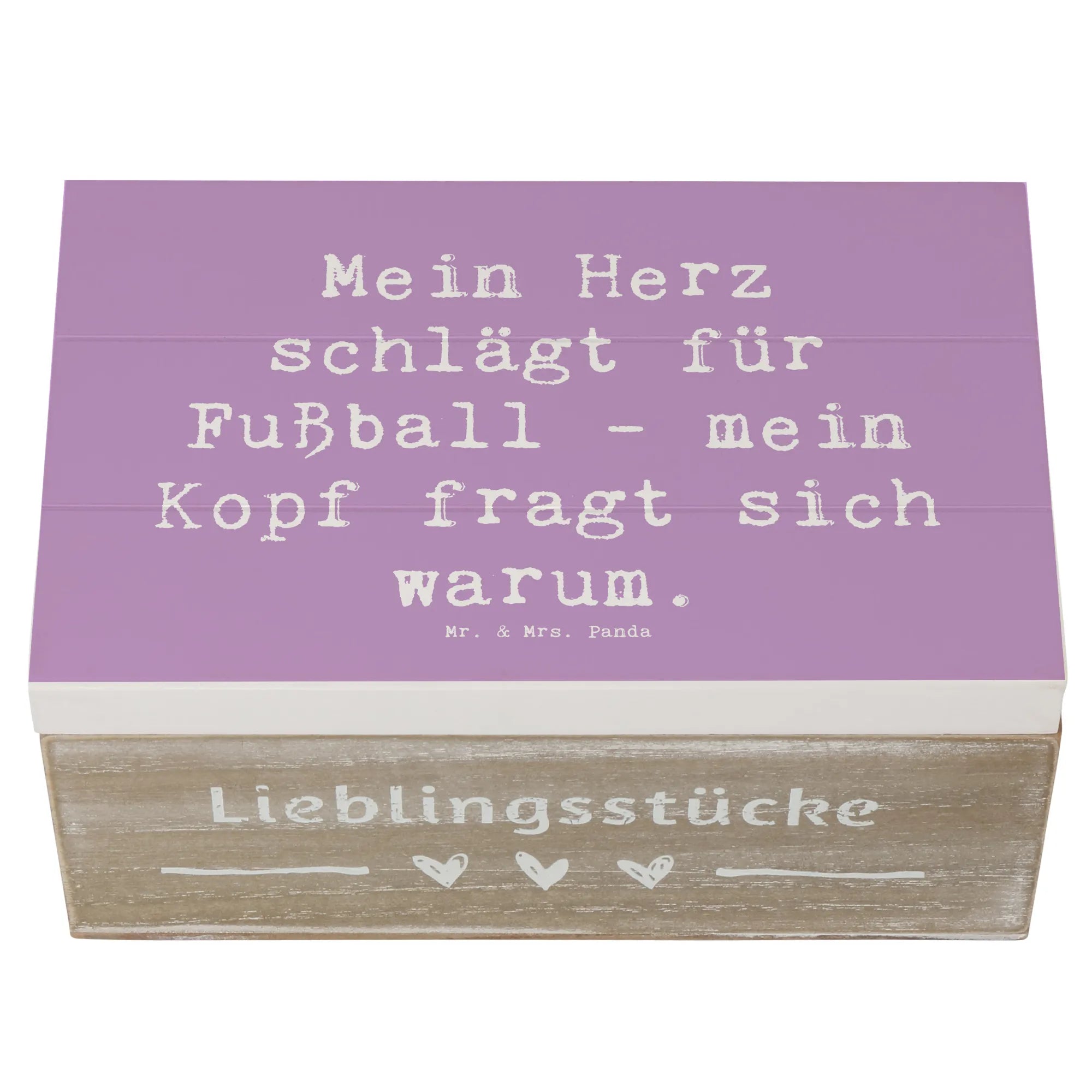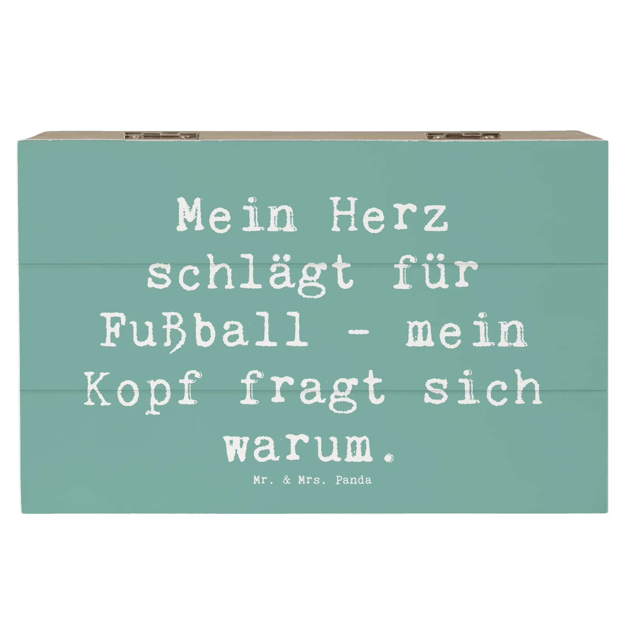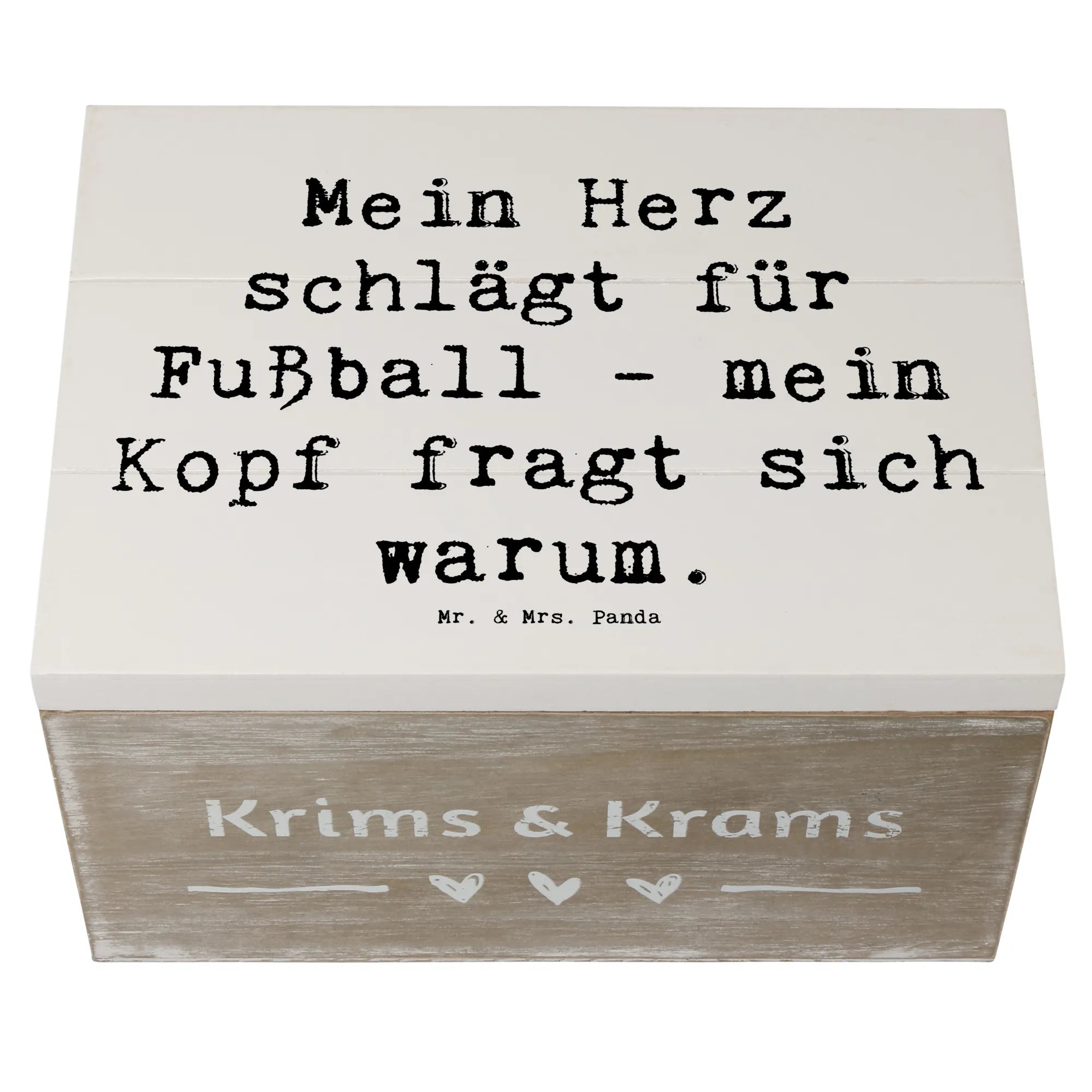 Entdecke die zauberhafte Holzkiste von Mr. & Mrs. Panda, die sich perfekt für alle Fußballliebhaber eignet! Diese wunderschöne Erinnerungskiste, bedruckt mit dem witzigen Spruch "Mein Herz schlägt für Fußball - mein Kopf fragt sich warum", ist nicht nur ein echter Blickfang, sondern auch unglaublich praktisch. Ob für dich selbst oder als Geschenk für Freunde, Familie oder Teamkollegen – diese Kiste macht immer eine gute Figur.