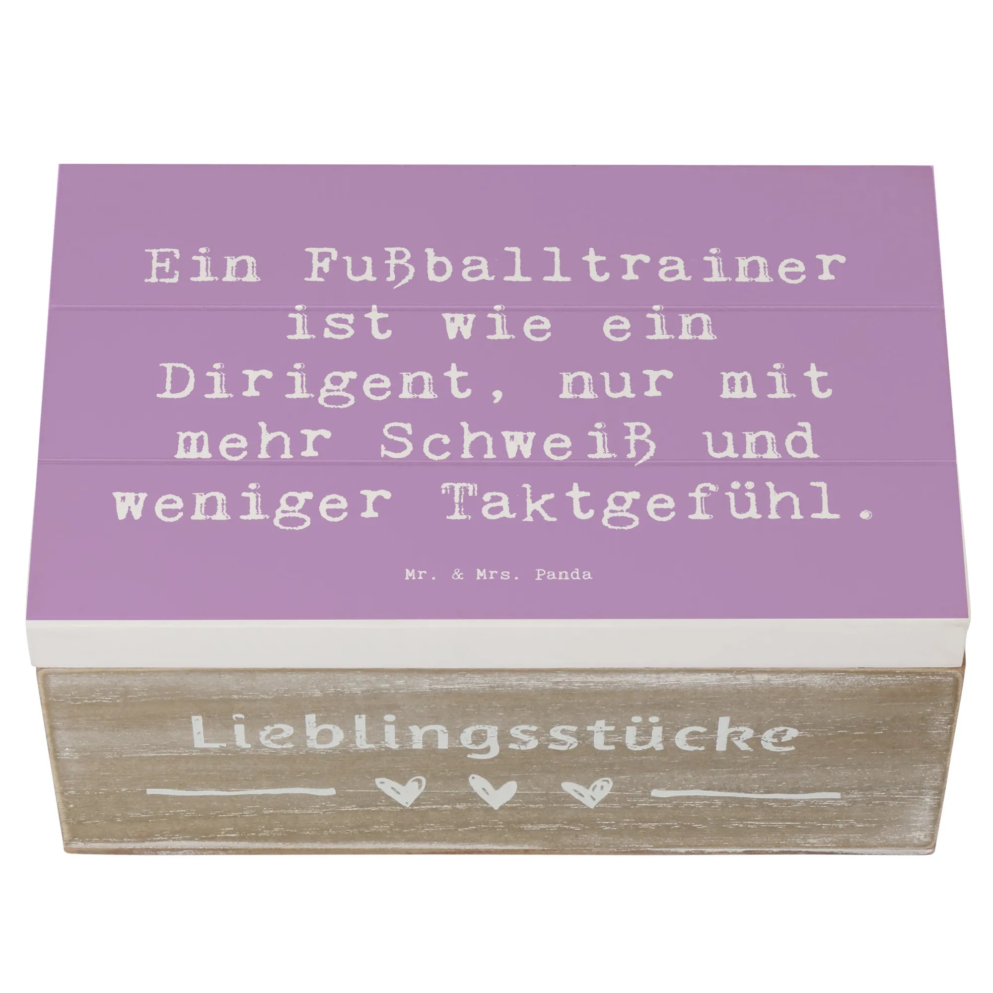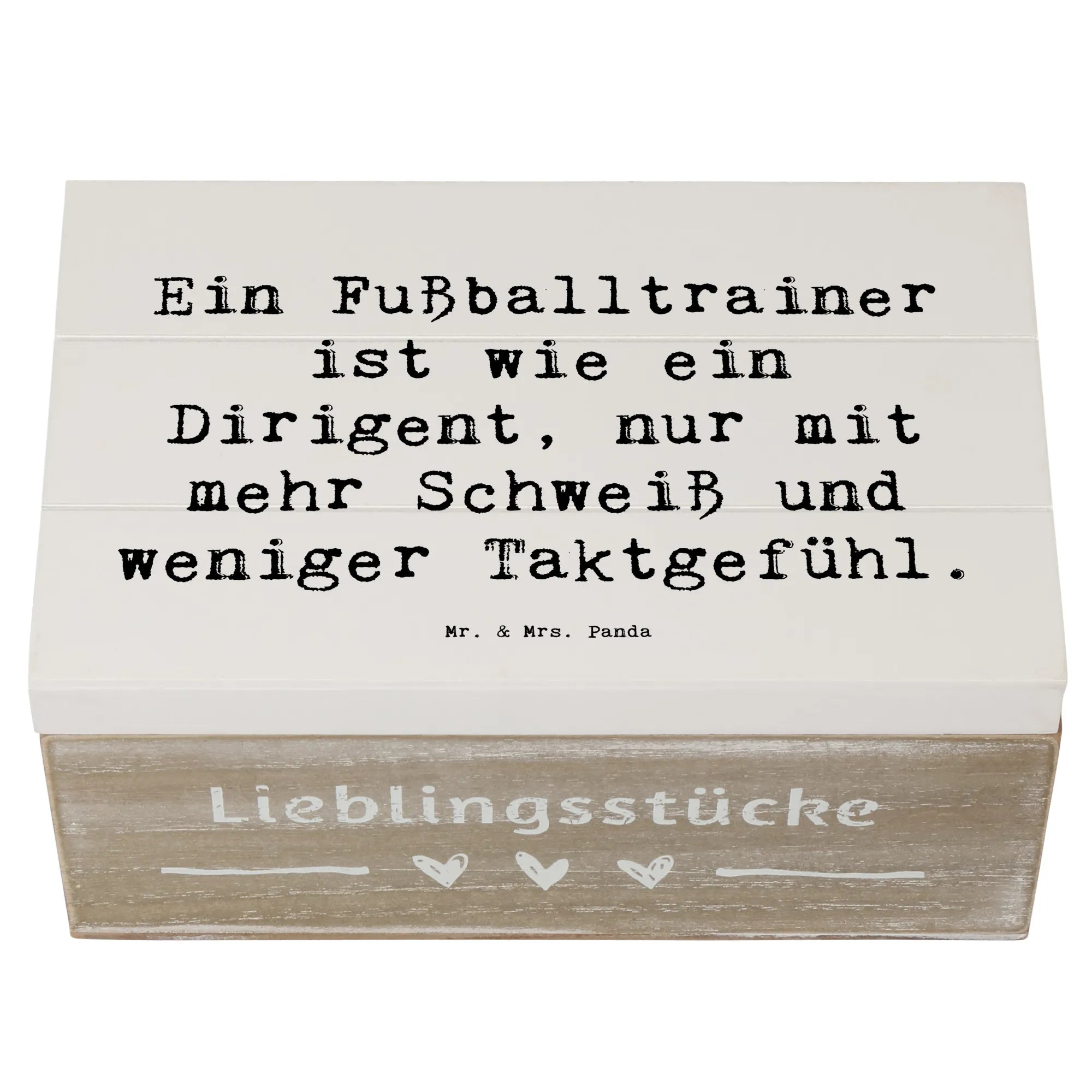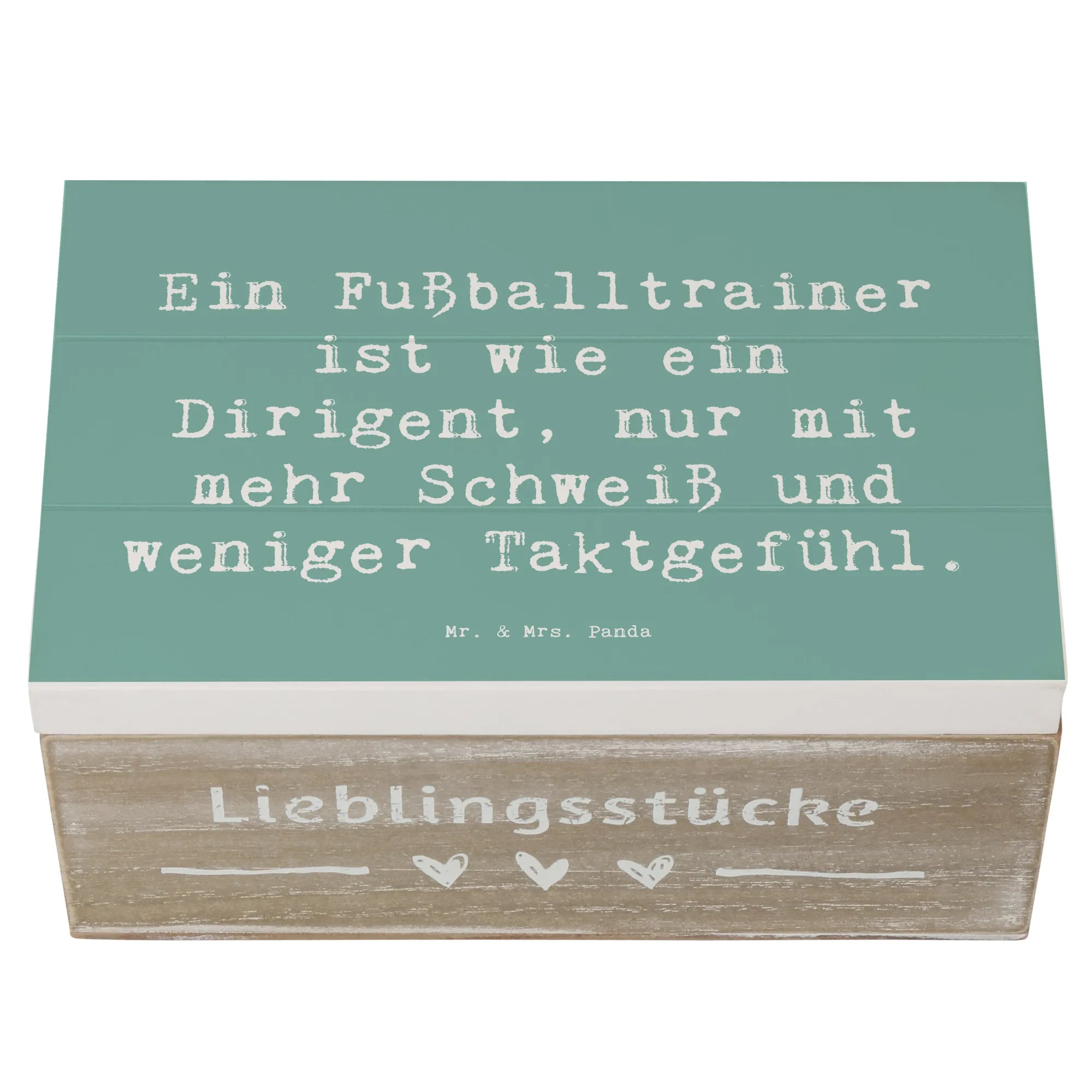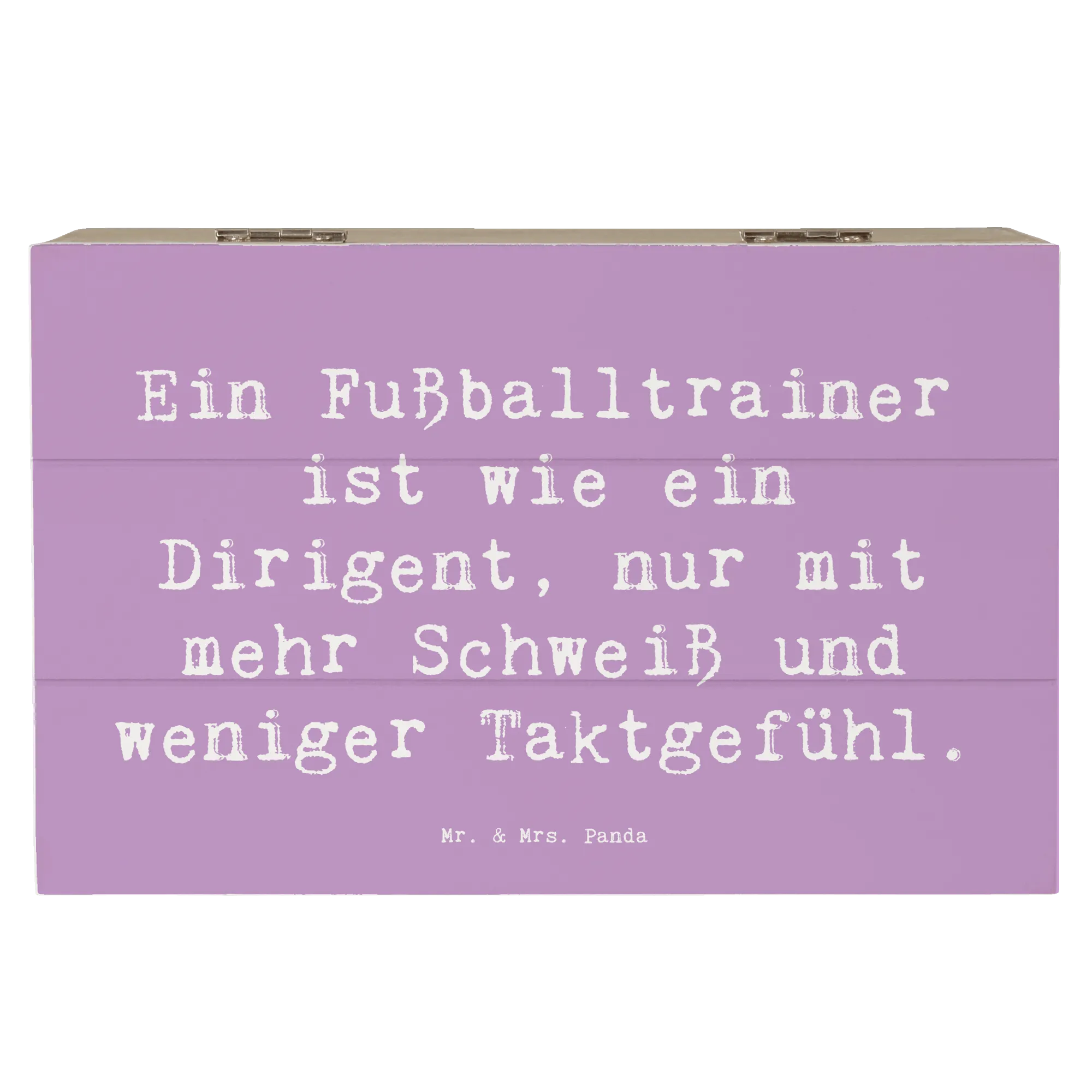 Suchst du nach dem perfekten Geschenk für einen leidenschaftlichen Fußballtrainer? Dann ist unsere wunderschöne Holzkiste von Mr. & Mrs. Panda genau das Richtige! Diese besondere Kiste ist nicht nur eine praktische Aufbewahrungsbox für all die tollen Erinnerungen, sondern auch ein tolles Accessoire, das die professionelle Leidenschaft eines Fußballtrainers zelebriert. Mit dem humorvollen Spruch Ein Fußballtrainer ist wie ein Dirigent, nur mit mehr Schweiß und weniger Taktgefühl auf der Vorderseite wird jeder Trainer schmunzeln. Egal ob zur Geburtstagsfeier, zum Jubiläum oder einfach nur als liebevolle Geste zwischendurch – diese Holzkiste ist vielseitig einsetzbar und kommt immer gut an.