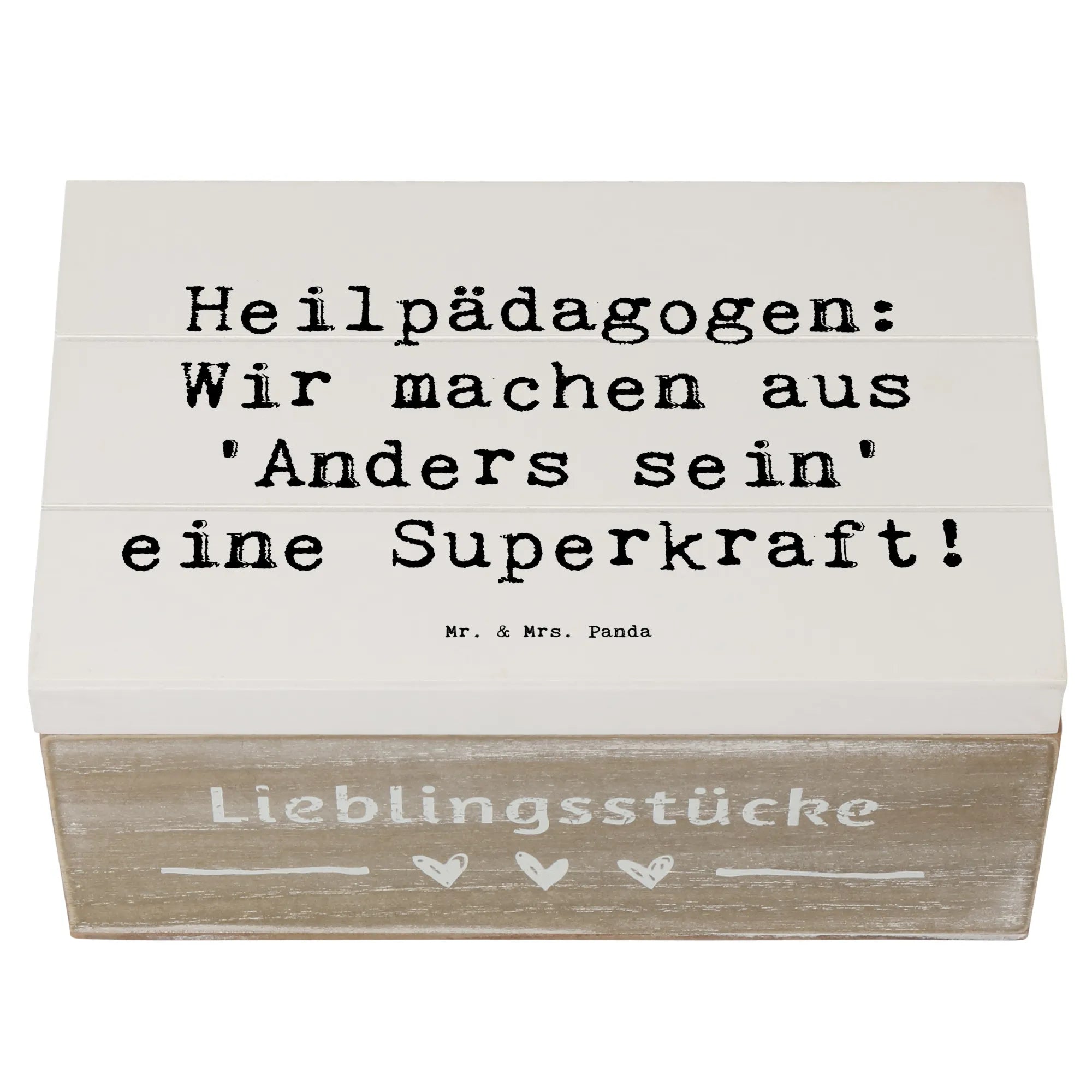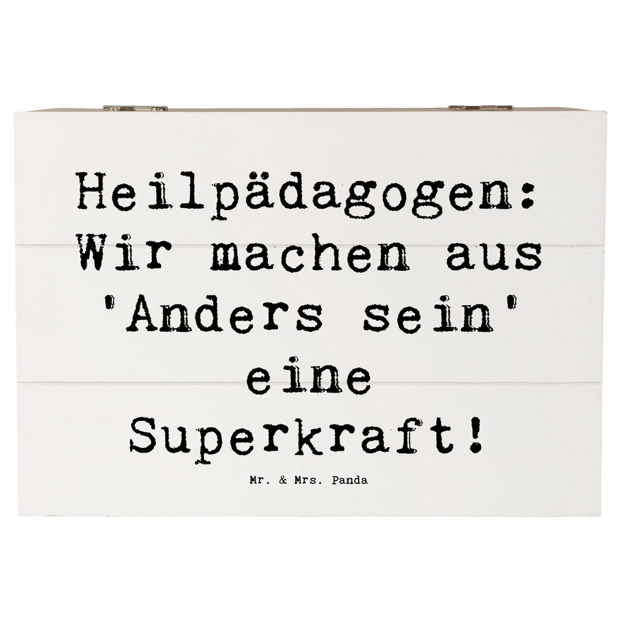 Die wunderschöne Holzkiste für Heilpädagoginnen von Mr. & Mrs. Panda ist das perfekte Geschenk für jede Gelegenheit! Diese liebevoll gestaltete Schatzkiste zeigt nicht nur das einladende Motiv einer Heilpädagogin, sondern trägt auch den motivierenden Slogan: "Heilpädagogen: Wir machen aus 'Anders sein' eine Superkraft!"