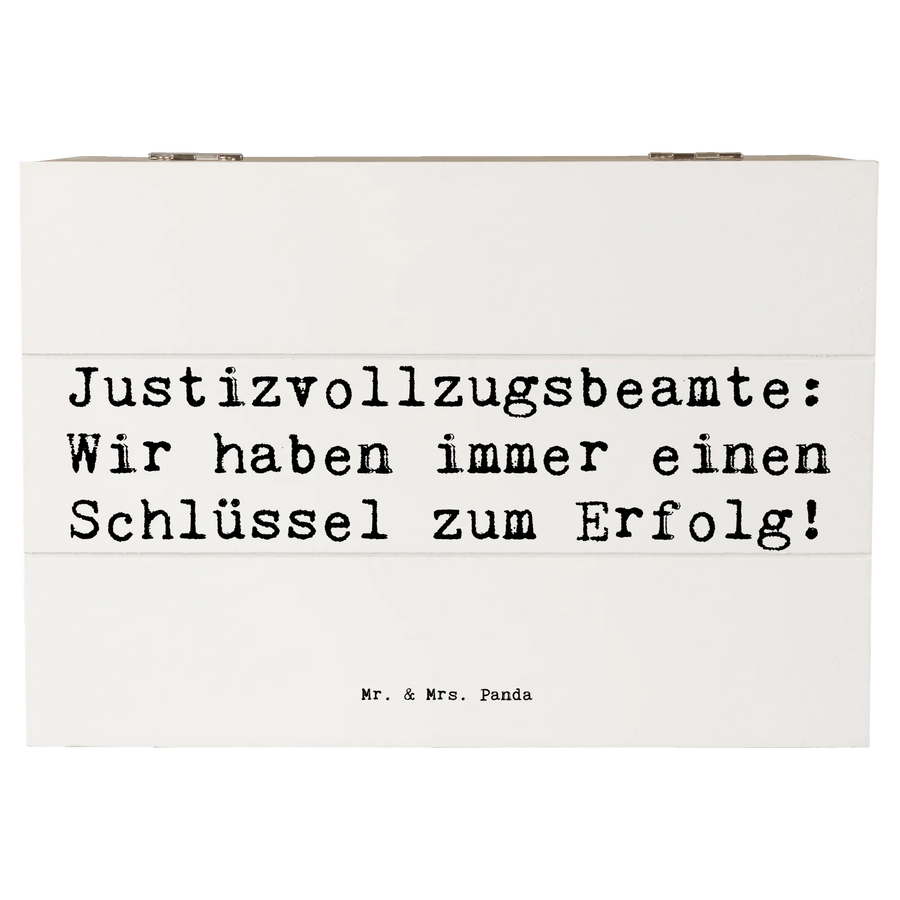 Du suchst das perfekte Geschenk für einen Justizvollzugsbeamten oder möchtest jemandem eine Freude machen, der in diesem wichtigen Beruf tätig ist? Dann ist unsere wunderschöne Holzkiste von Mr. & Mrs. Panda genau das Richtige für dich! Mit dem liebevollen Spruch 'Justizvollzugsbeamte: Wir haben immer einen Schlüssel zum Erfolg!' wird diese exquisite Kiste zu einem echten Blickfang. Die Kiste ist nicht nur optisch ansprechend, sondern auch äußerst praktisch.