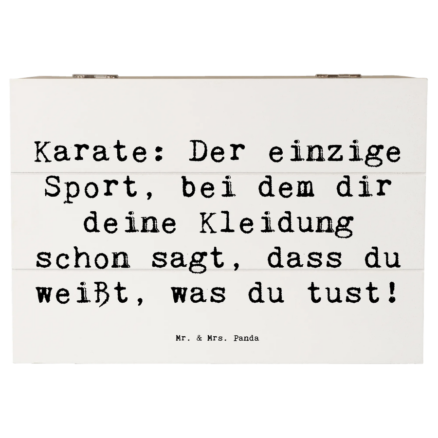 Die wunderschöne Holzkiste von Mr. & Mrs. Panda ist das perfekte Geschenk für alle Karate-Liebhaber! Mit dem liebevoll gestalteten Motiv "Karate: Der einzige Sport, bei dem dir deine Kleidung schon sagt, dass du weißt, was du tust!" ist diese Kiste nicht nur ein praktischer Aufbewahrungsort, sondern auch ein echter Blickfang.