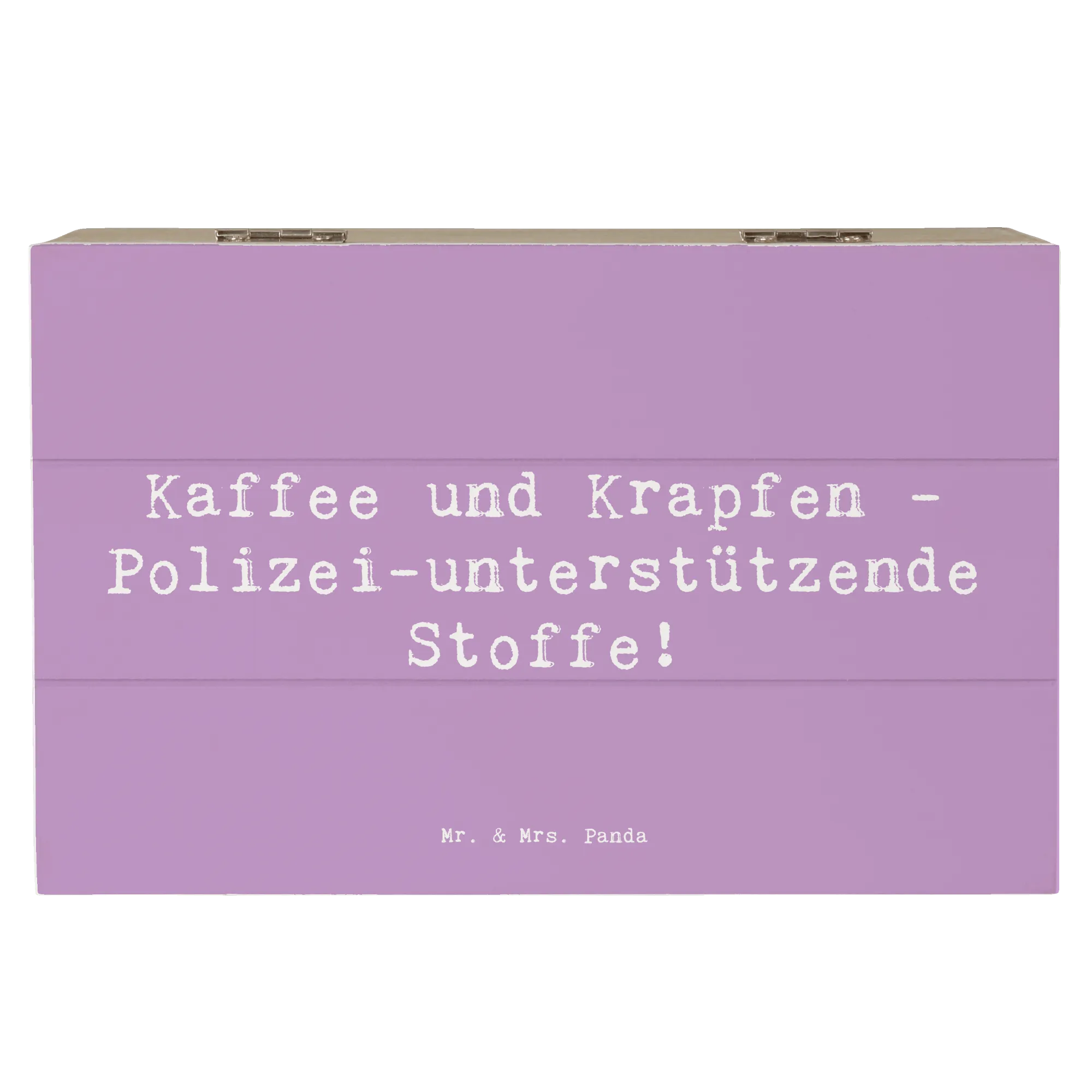 Die wunderschöne Holzkiste mit dem Polizisten-Motiv von Mr. & Mrs. Panda ist das perfekte Geschenk für alle, die den Beruf des Polizisten würdigen oder lieben. Mit einem charmanten Spruch "Kaffee und Krapfen - Polizei-unterstützende Stoffe!" bringt diese Kiste Freude in jedes Zuhause.