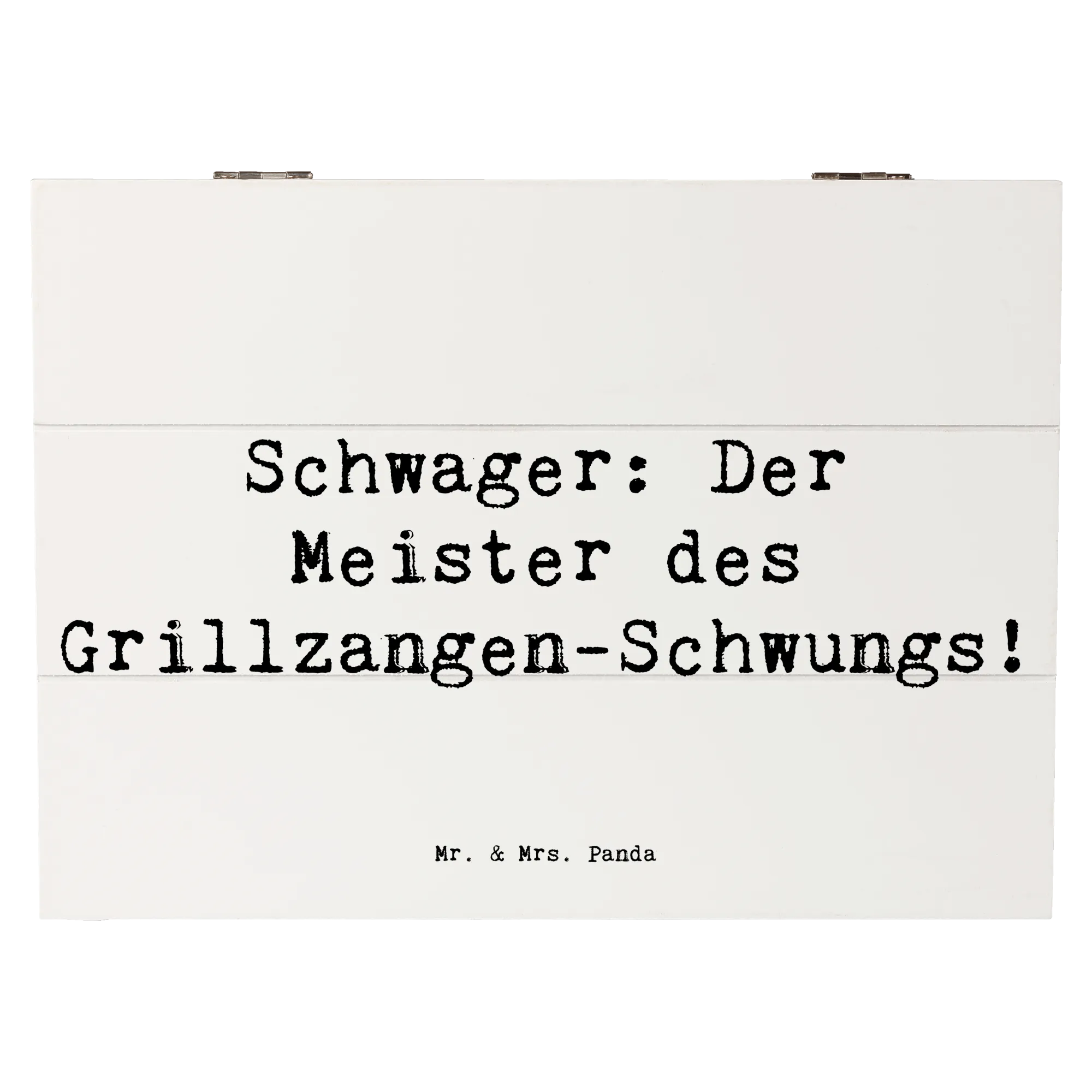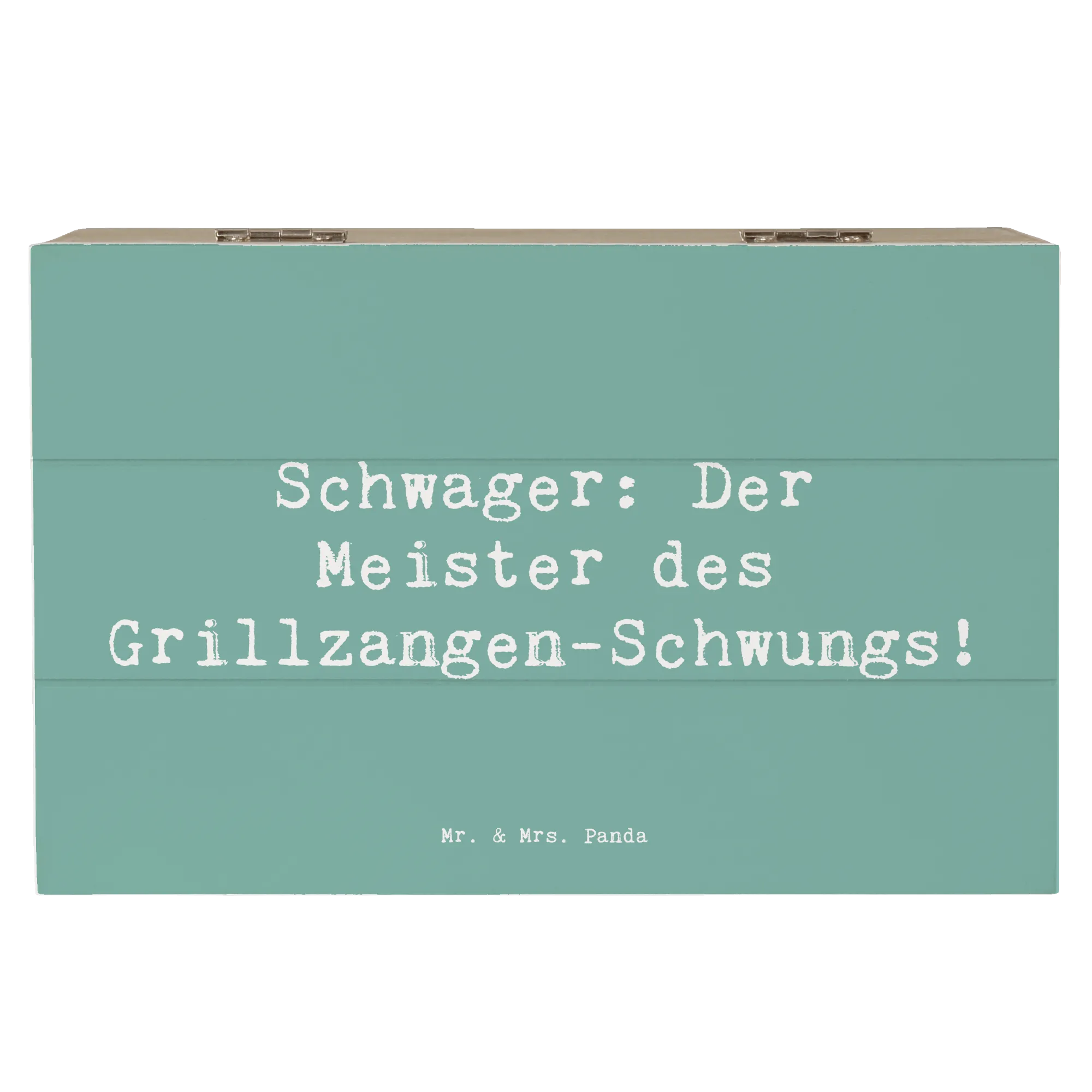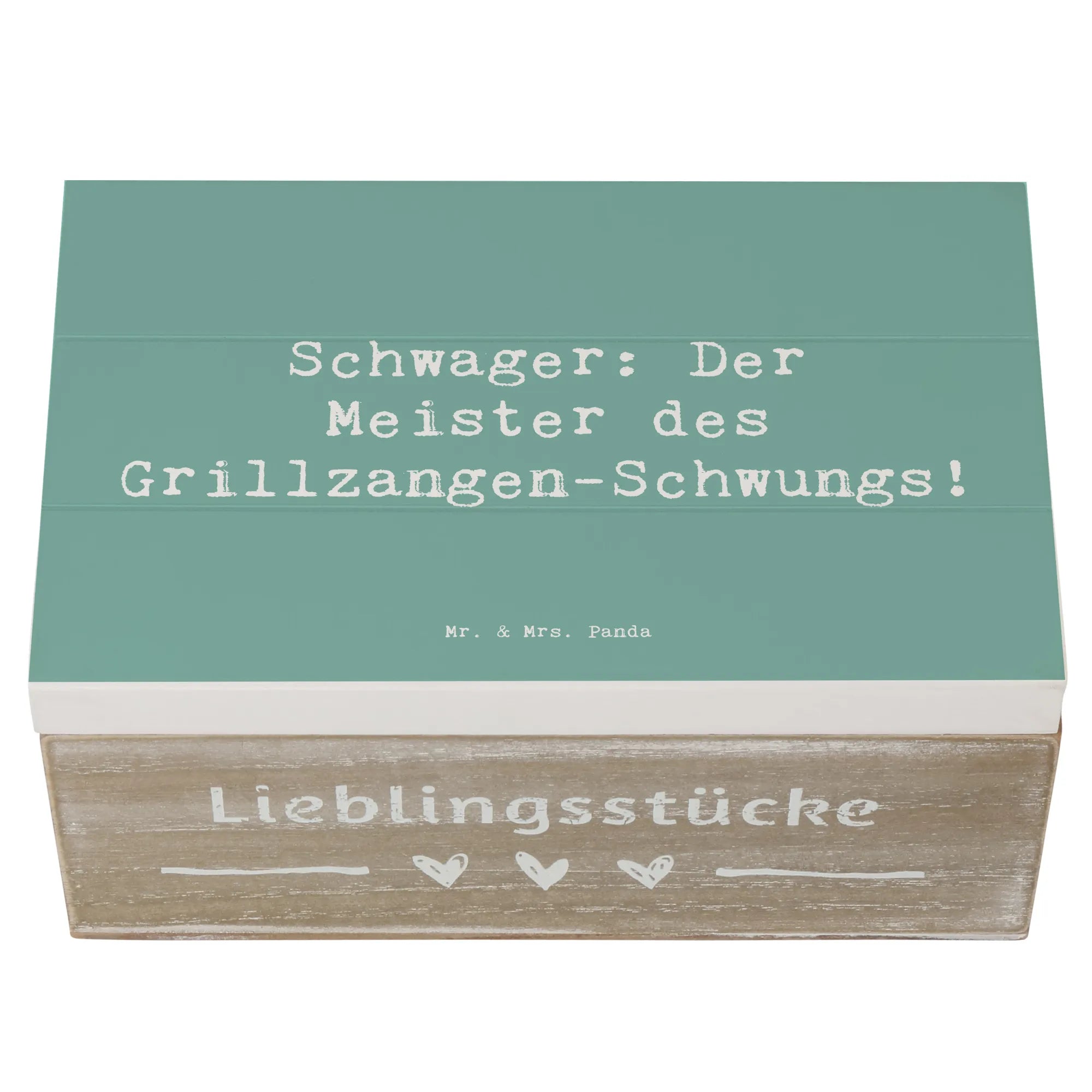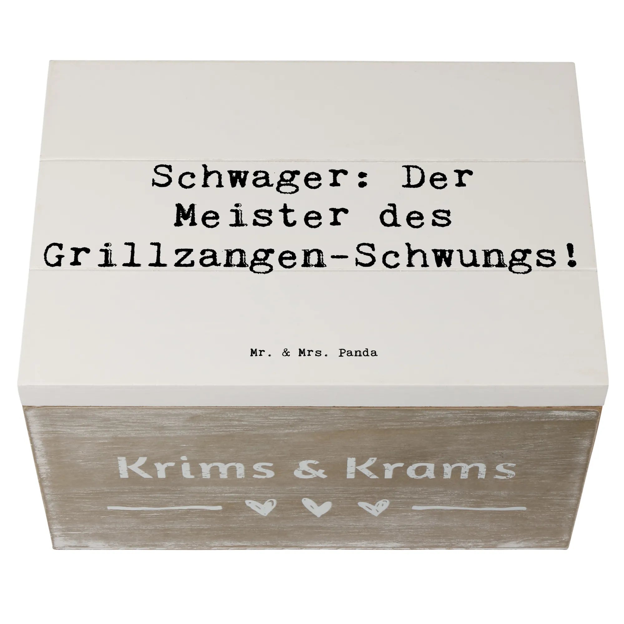 Die Holzkiste von Mr. & Mrs. Panda ist das perfekte Geschenk für Deinen Schwager! Mit dem lustigen Spruch 'Schwager: Der Meister des Grillzangen-Schwungs!' wird diese Kiste zu einem ganz besonderen Erinnerungsstück, das in jedem Zuhause einen schönen Platz findet.