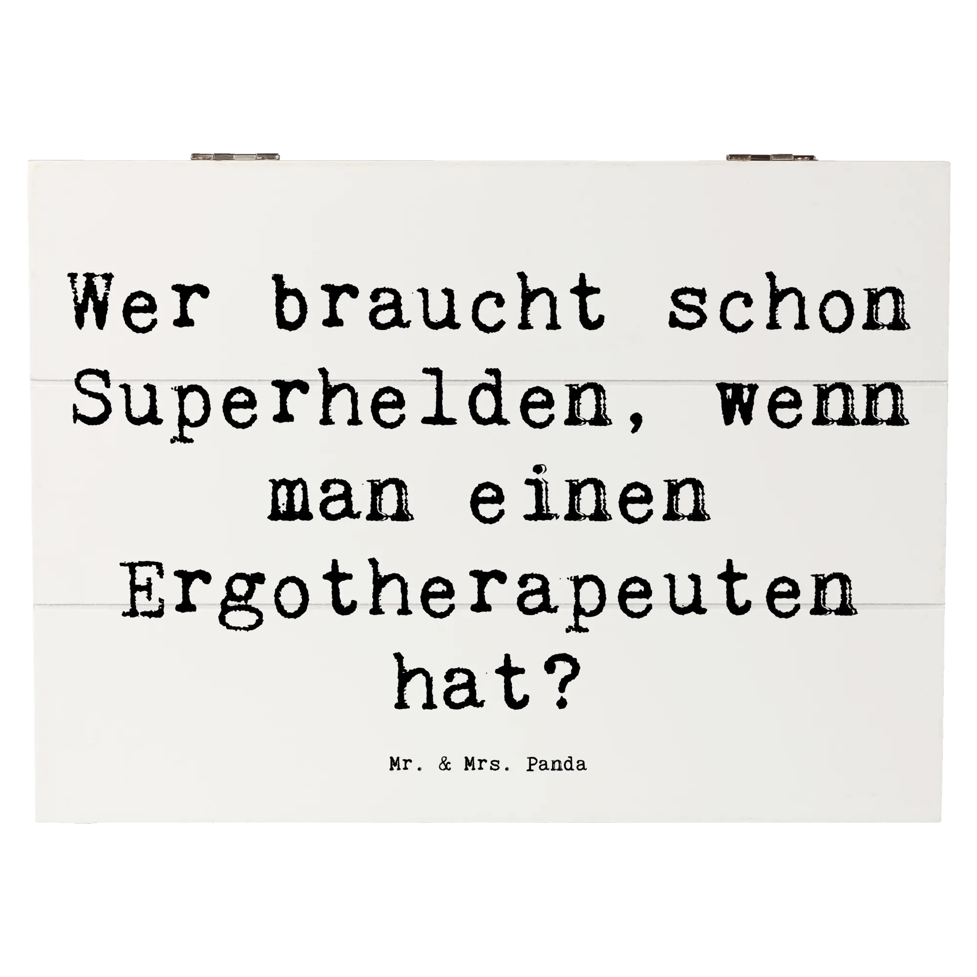 Die perfekte Holzkiste für Ergotherapeuten – ein echtes Highlight! Diese wunderschöne Holzkiste von Mr. & Mrs. Panda ist nicht nur ein echter Blickfang, sondern auch ein praktischer Aufbewahrungsort für all deine wertvollen Schätze. Mit dem liebevollen Design, das den Spruch "Wer braucht schon Superhelden, wenn man einen Ergotherapeuten hat?" trägt, begeisterst du damit nicht nur dich selbst, sondern auch deine Freunde und Kollegen.